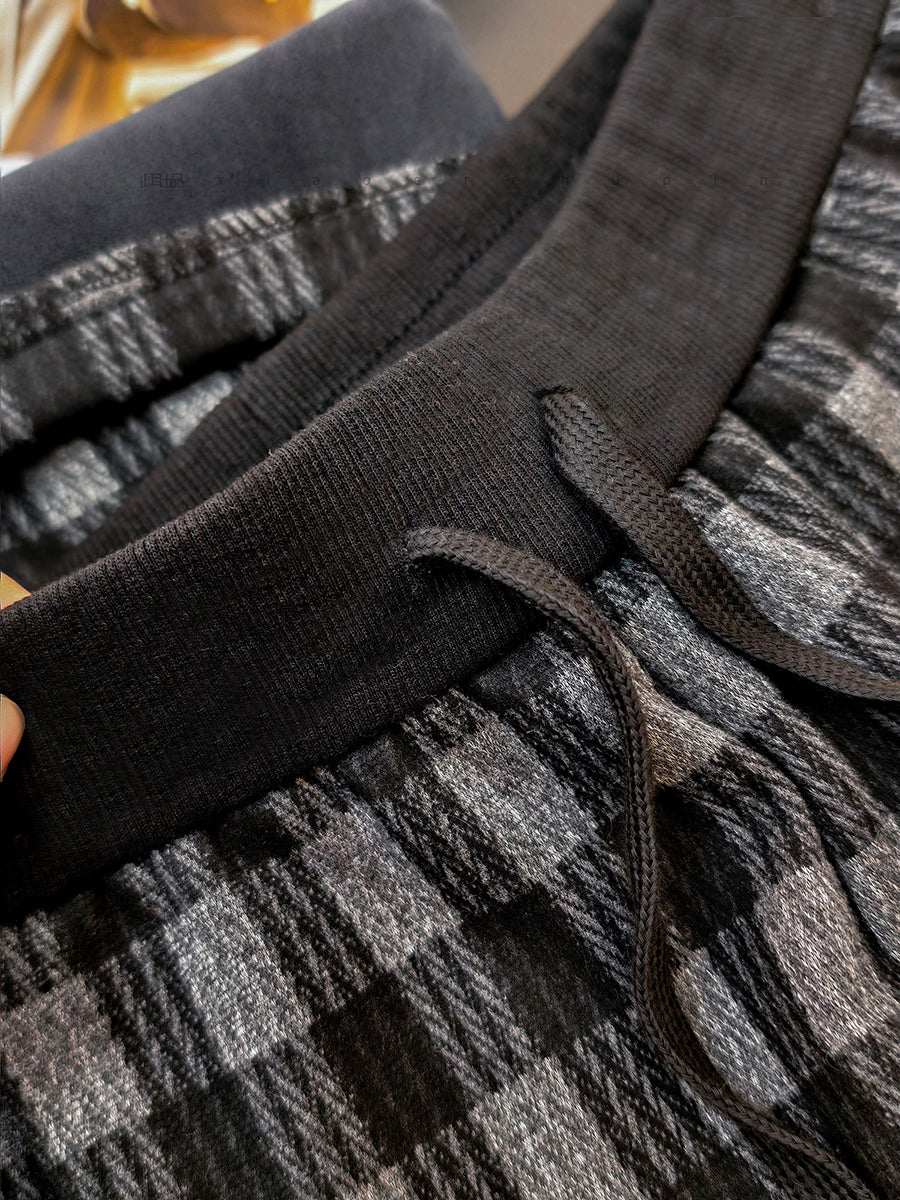 Women Winter Plaid Fleece-lined Wide-leg Pants