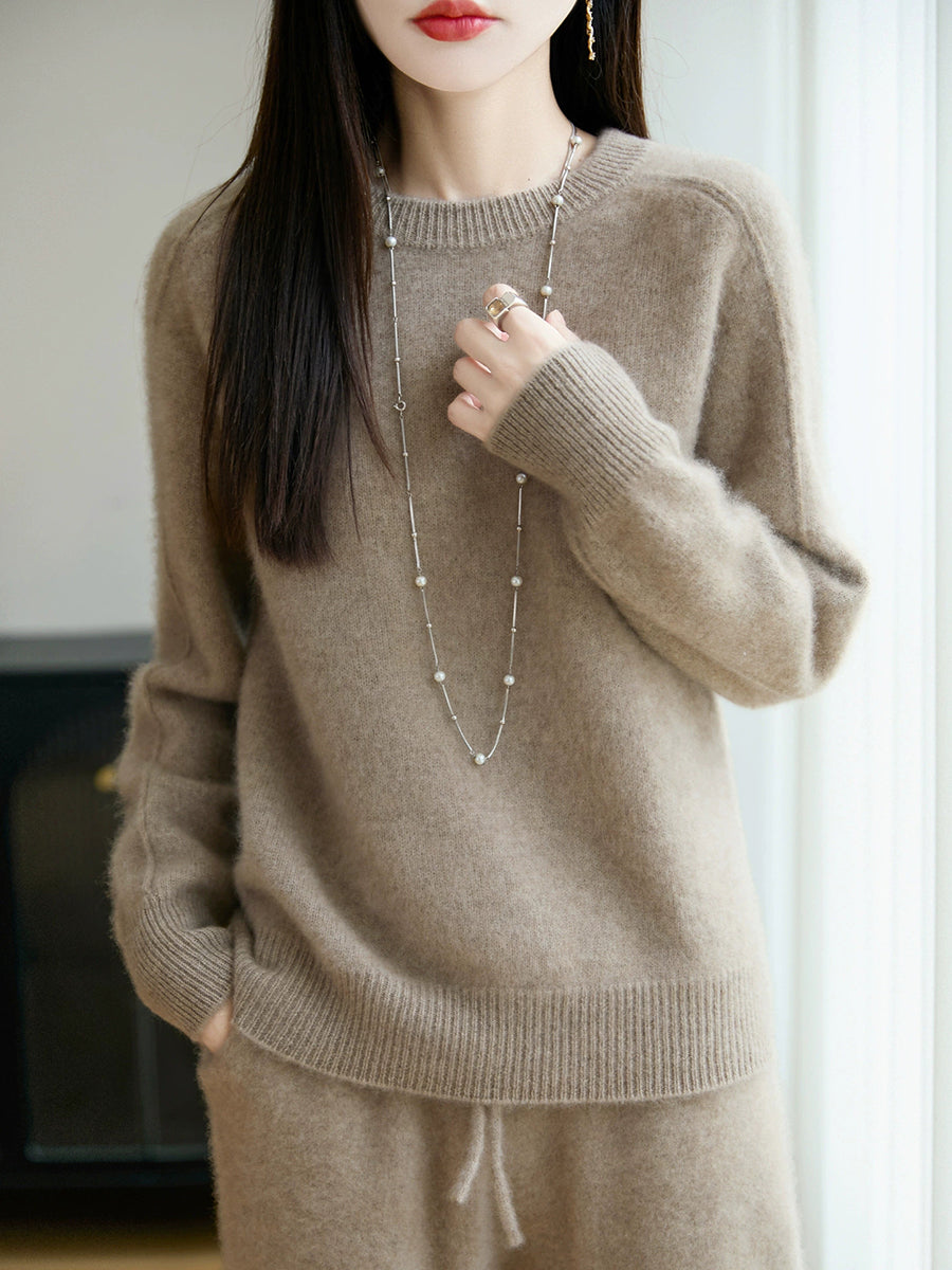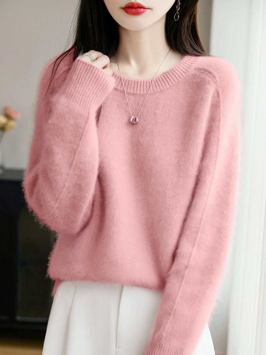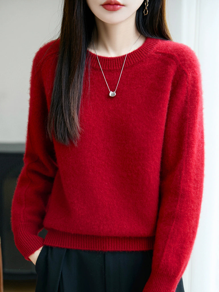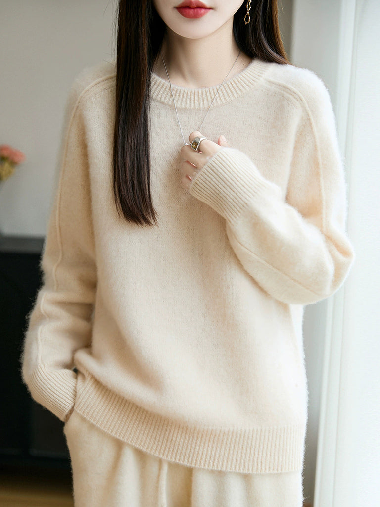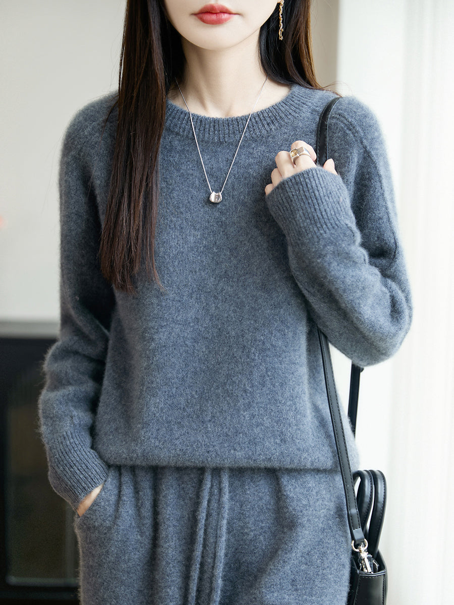 Women Autumn Artsy Pure Color O-Neck Sweater