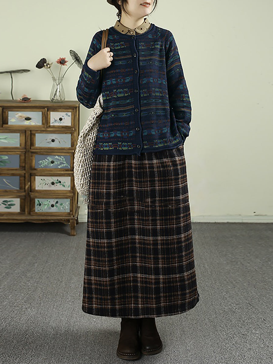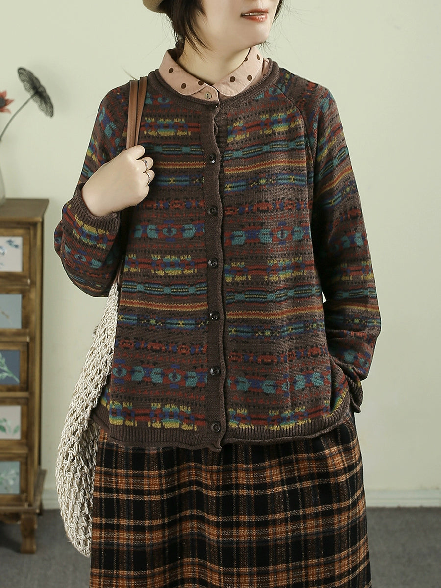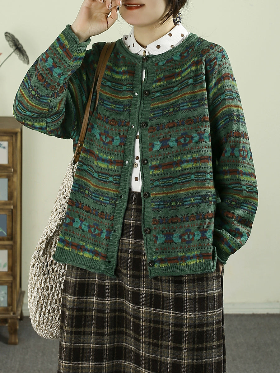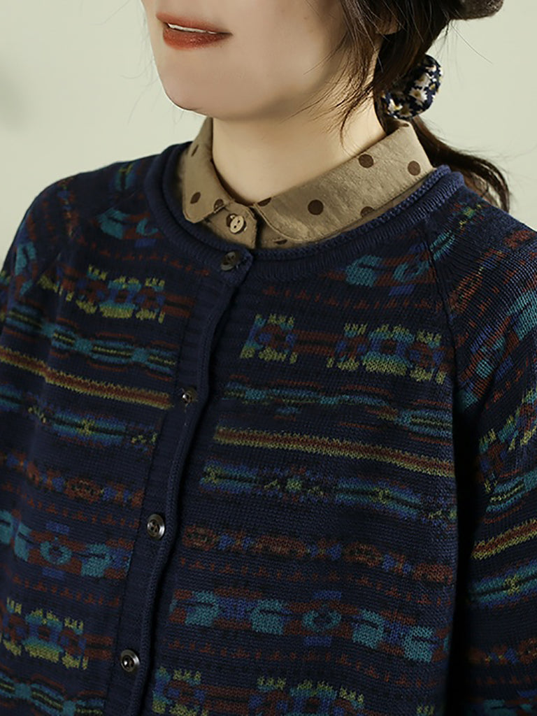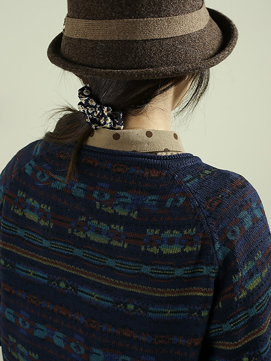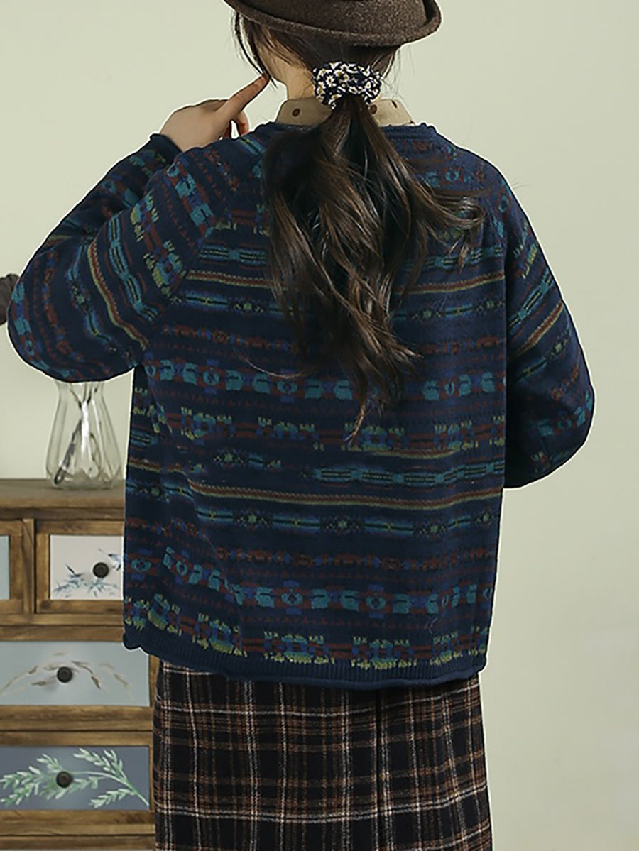 Women Autumn Artsy Stripe Knitted O-Neck Sweater