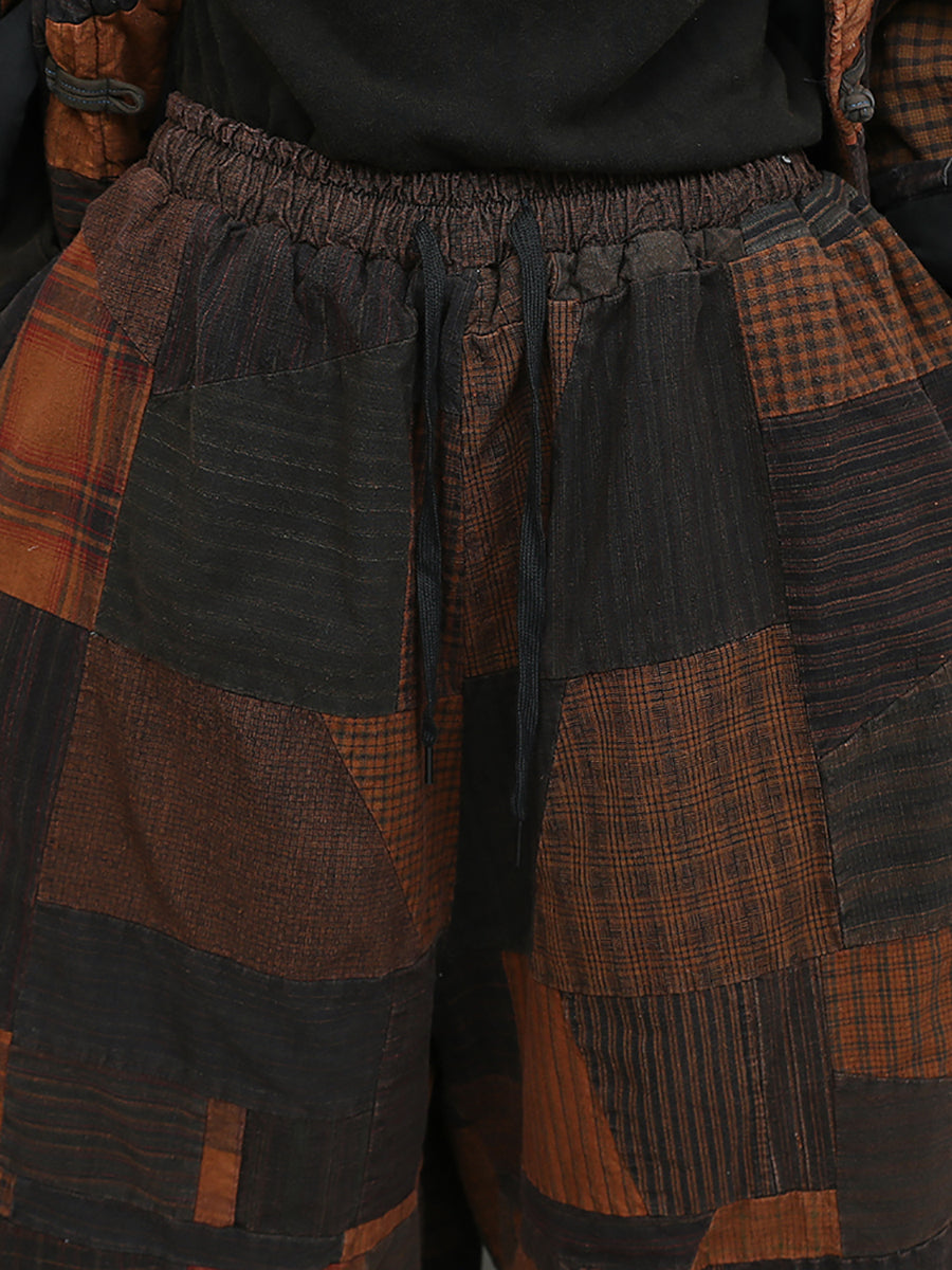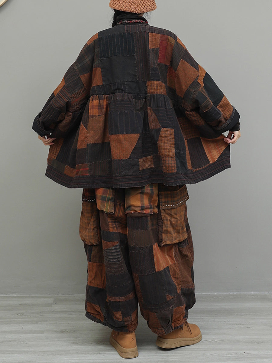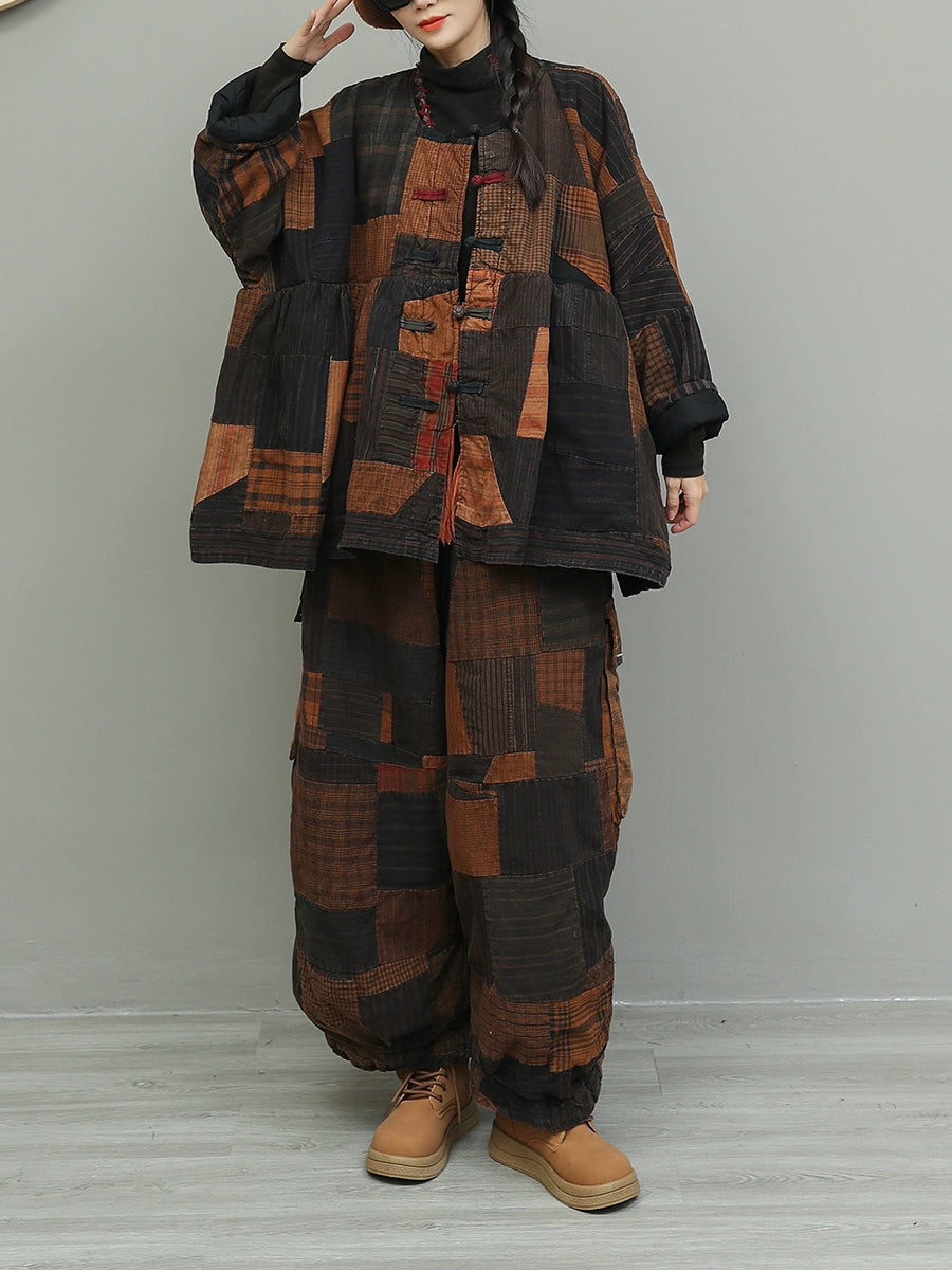 Women Winter Retro Patchwork O-Neck Padded Suits