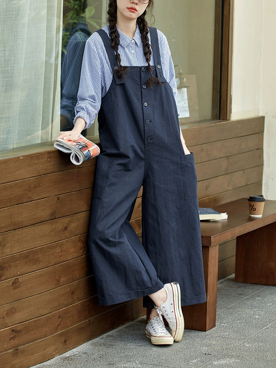 Women Casual Spring Pure Color Cotton Jumpsuits