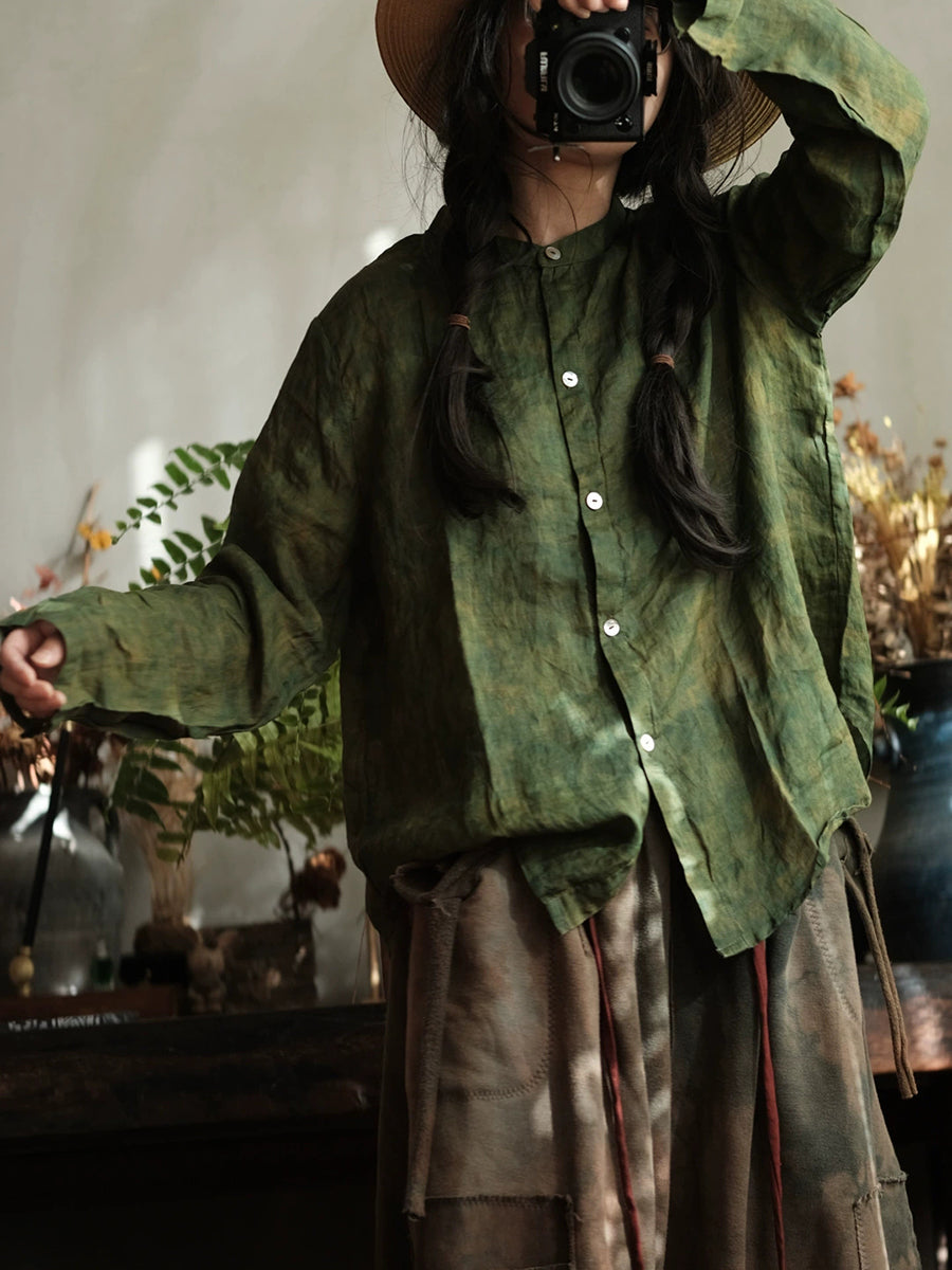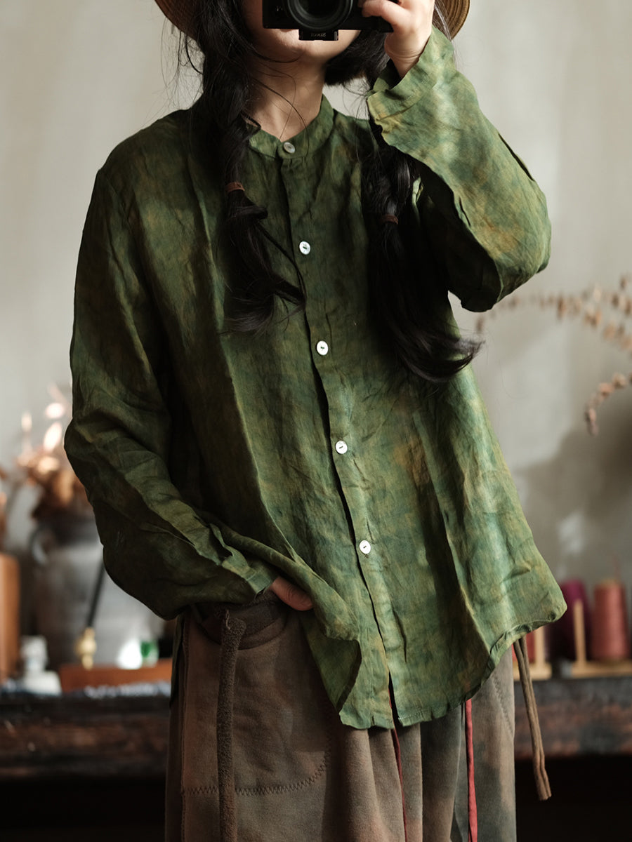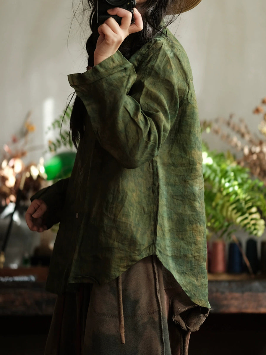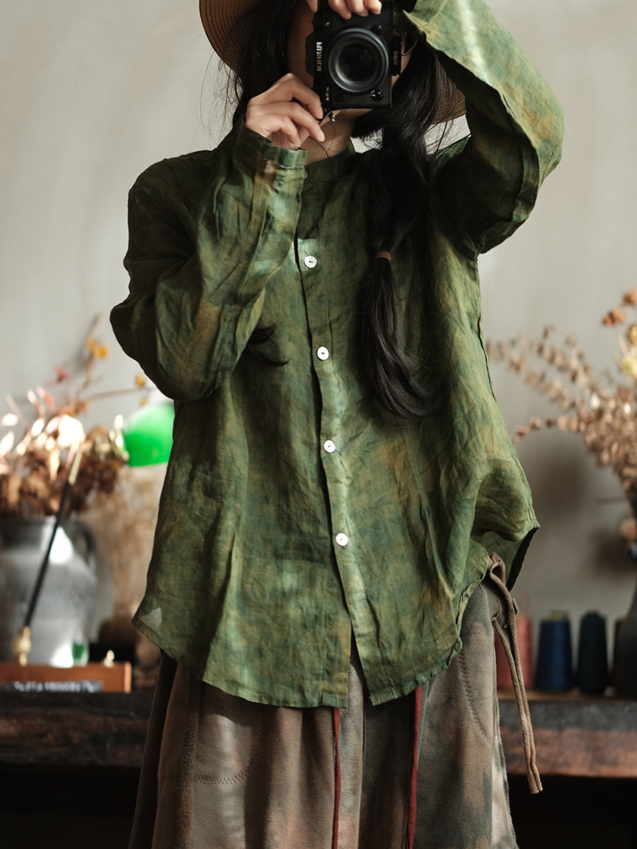 Women Retro Spring Tie-dye Ramie Shirt