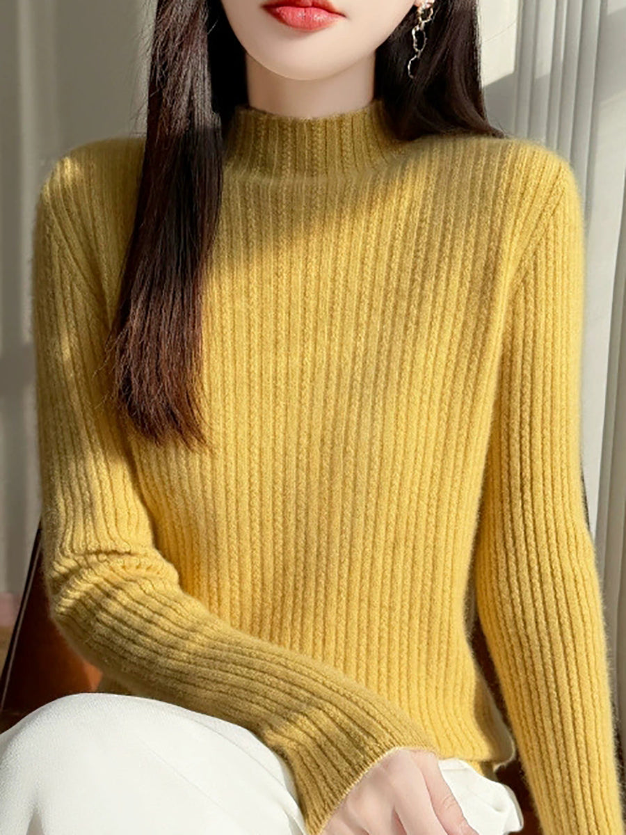 Women Winter Artsy Pure Color Wool Half-Turtleneck Sweater