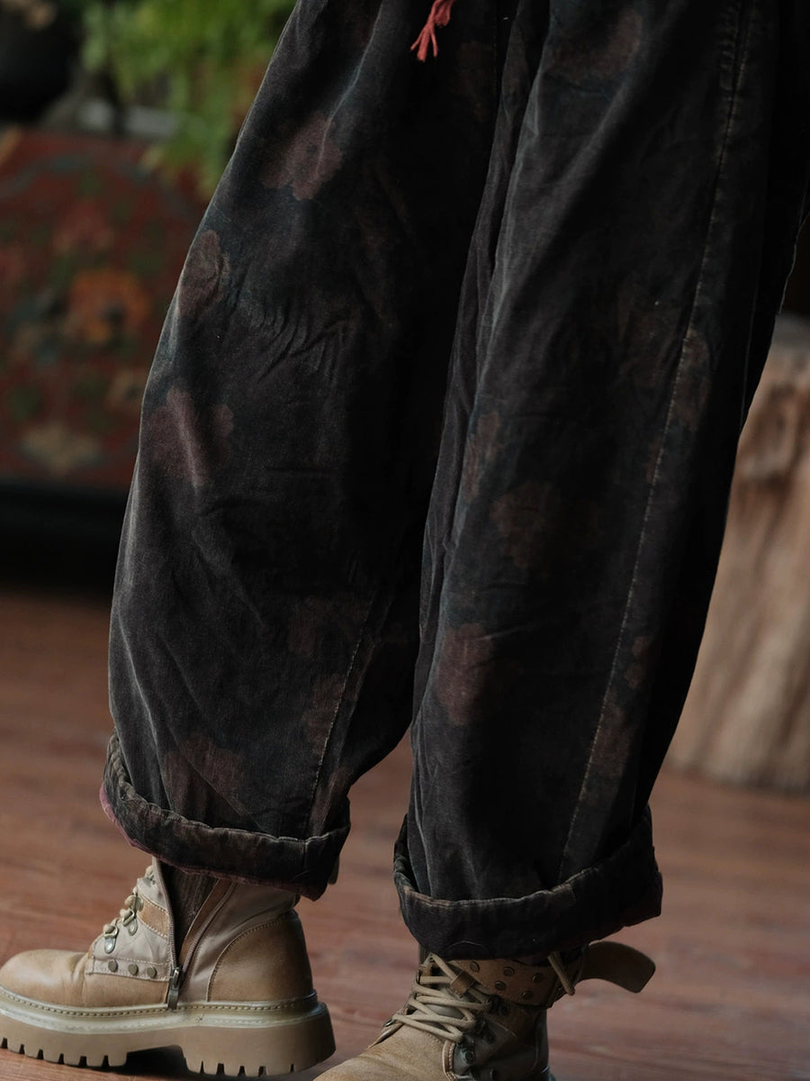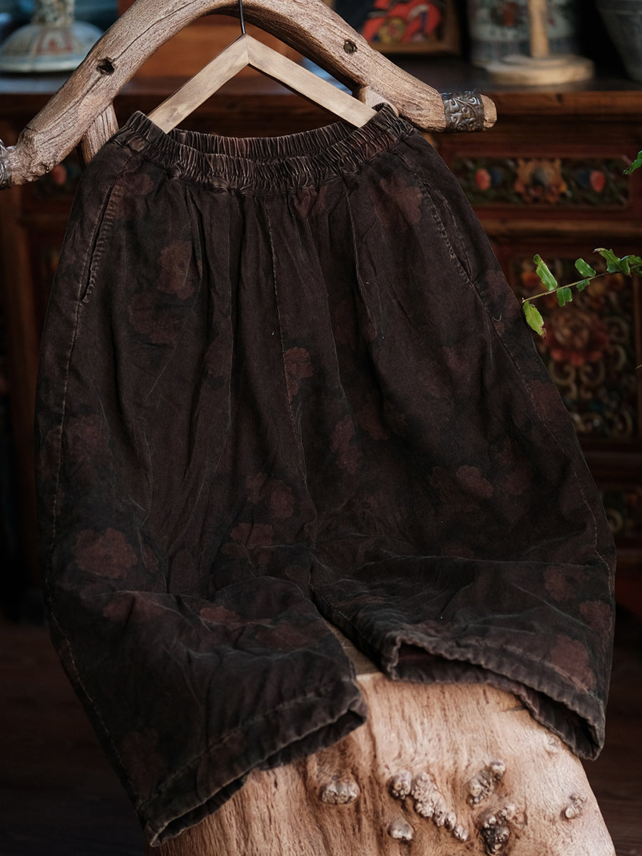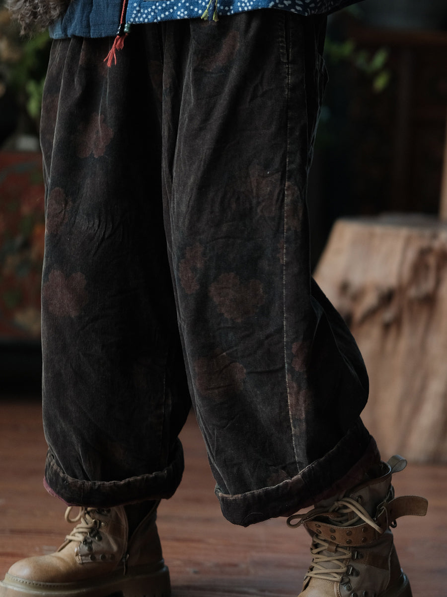Women Winter Flower Padded Cotton Wide-leg Pants