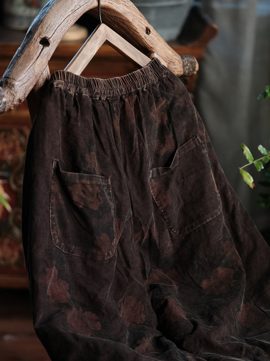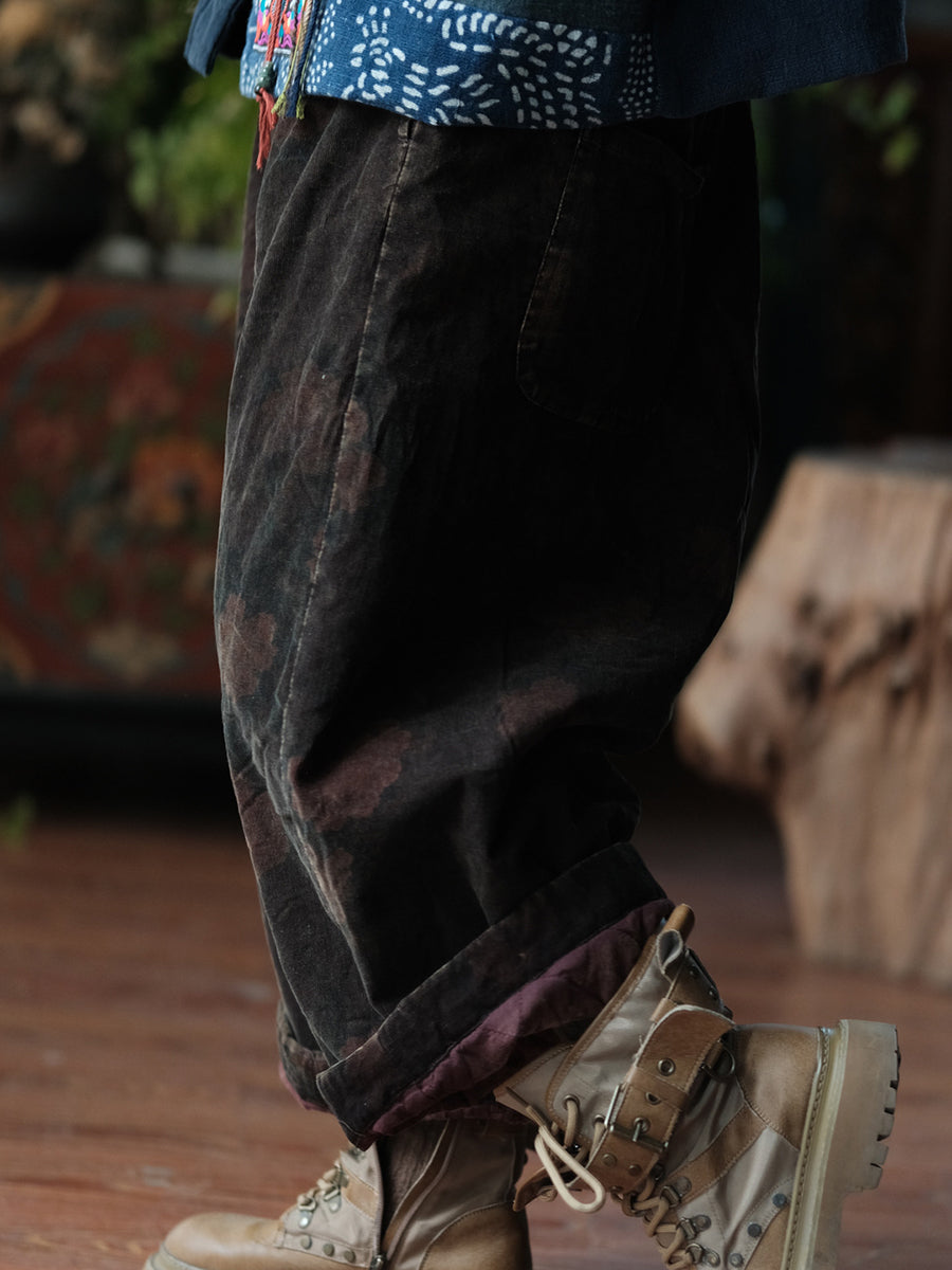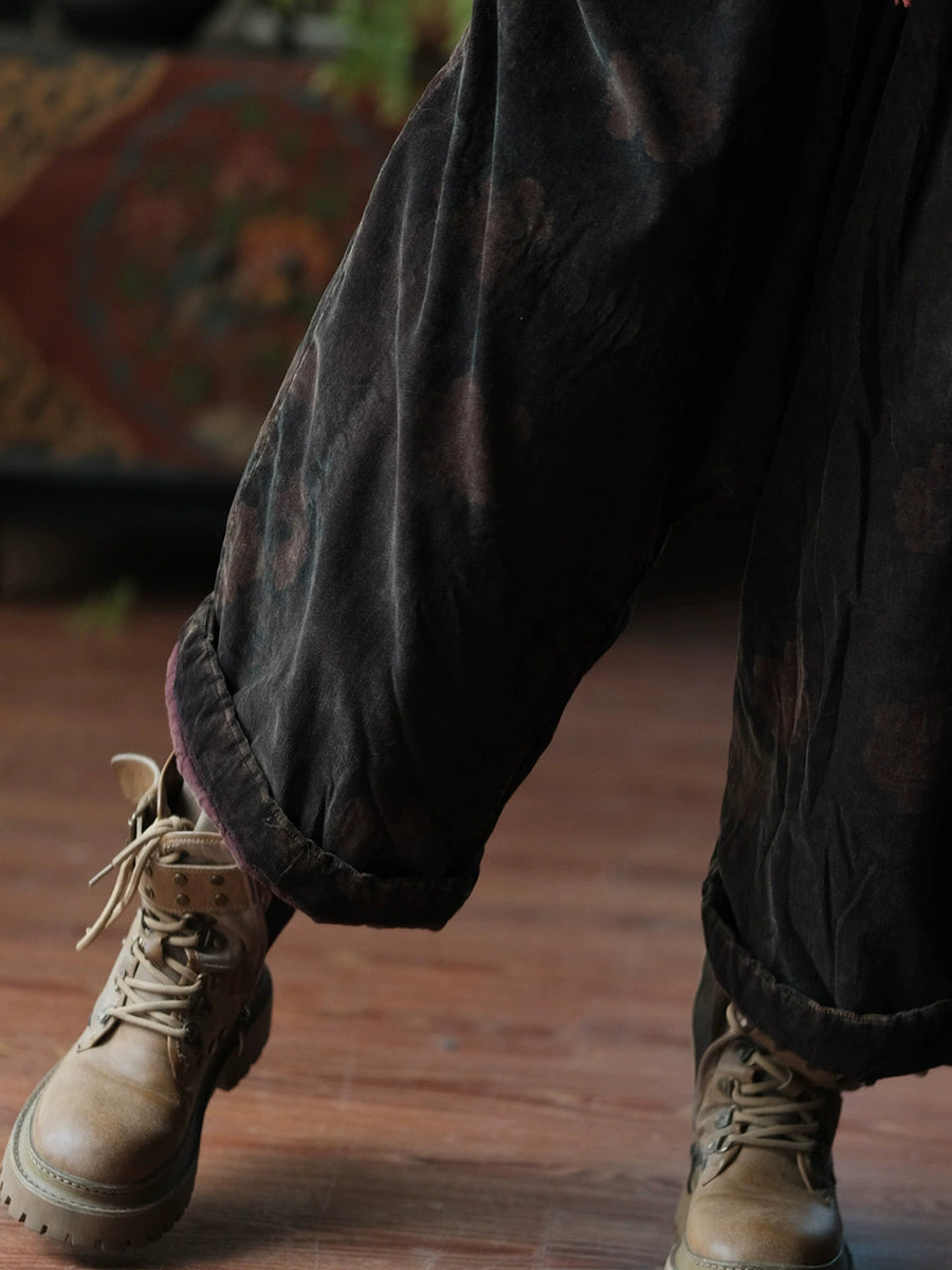 Women Winter Flower Padded Cotton Wide-leg Pants