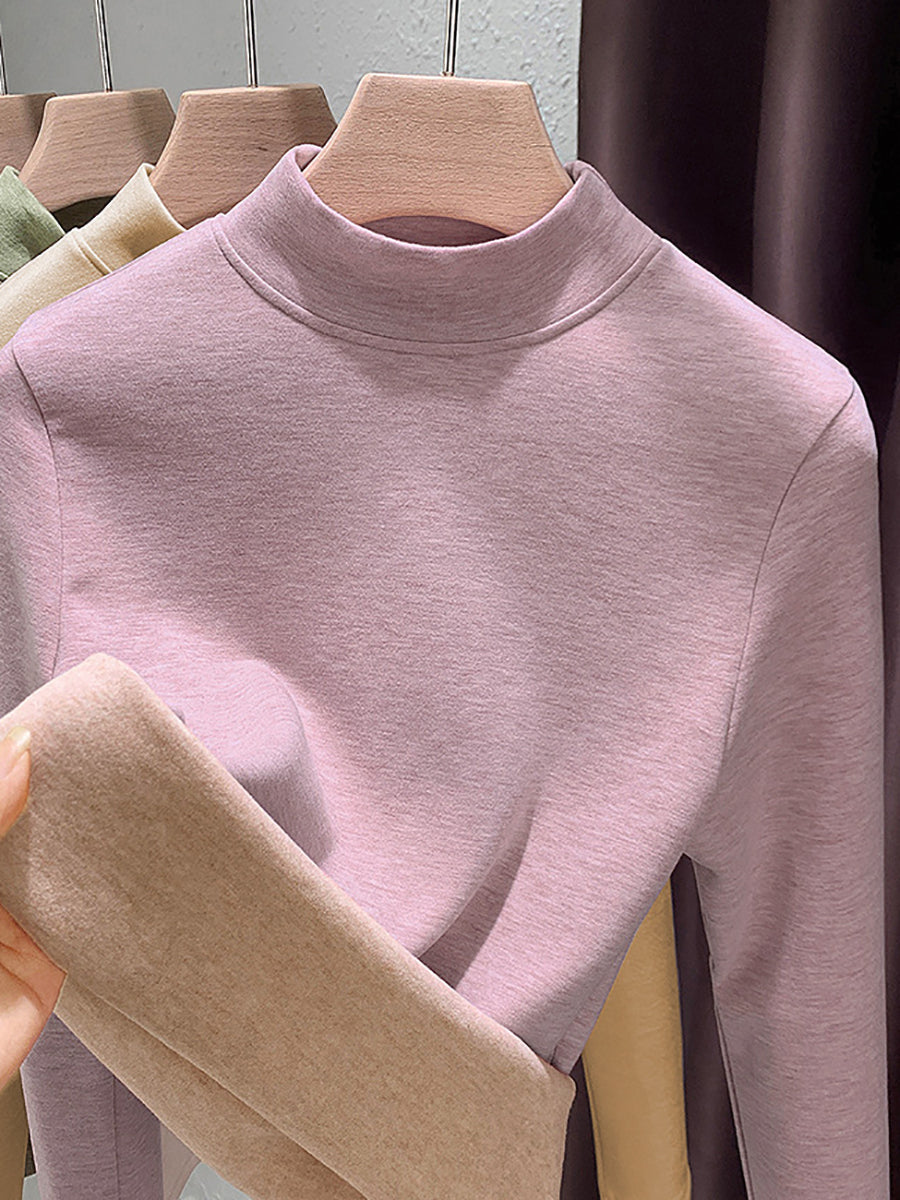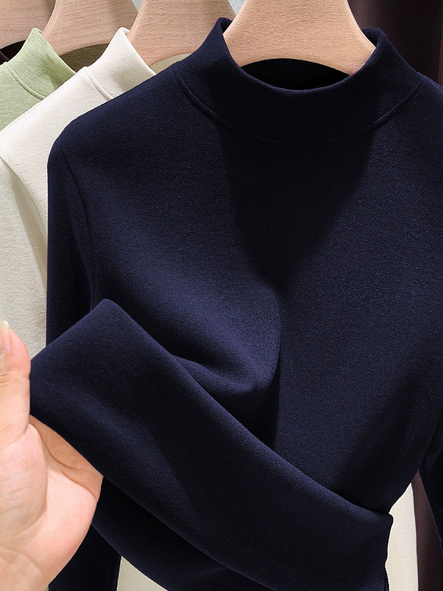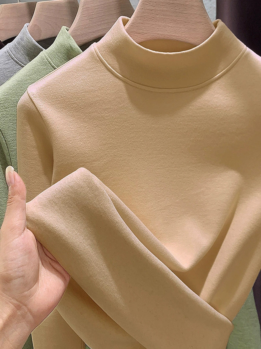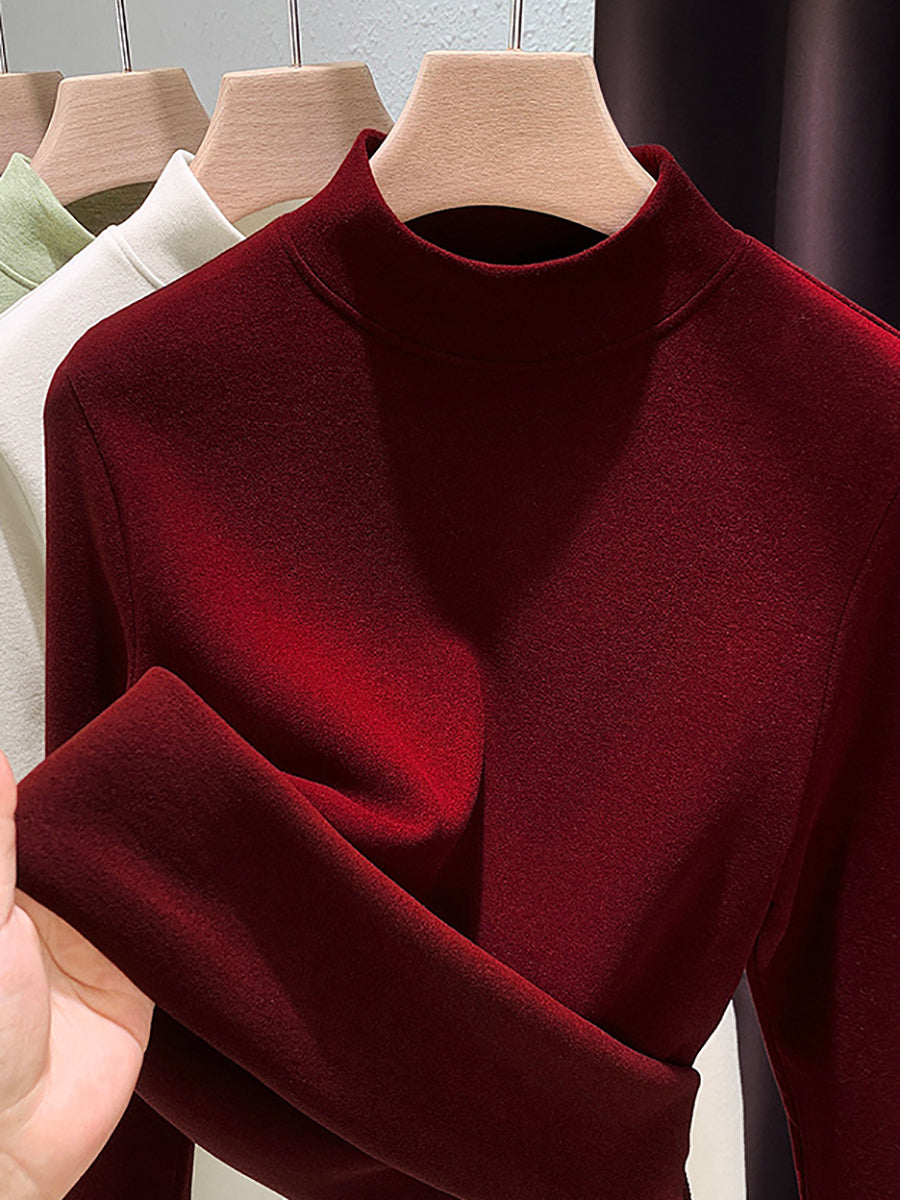 Women Autumn Casual Pure Color Half-Turtltneck Blouse