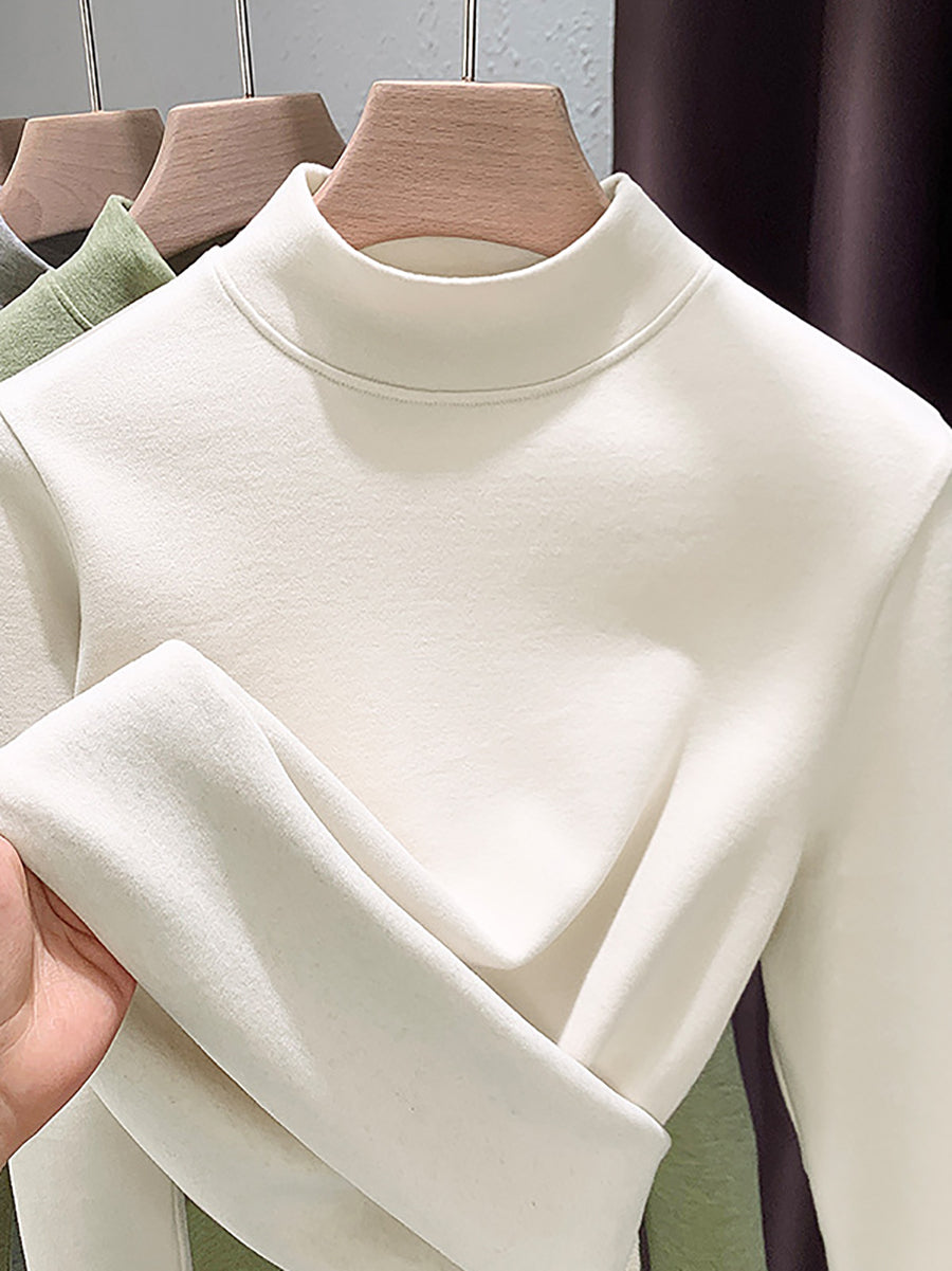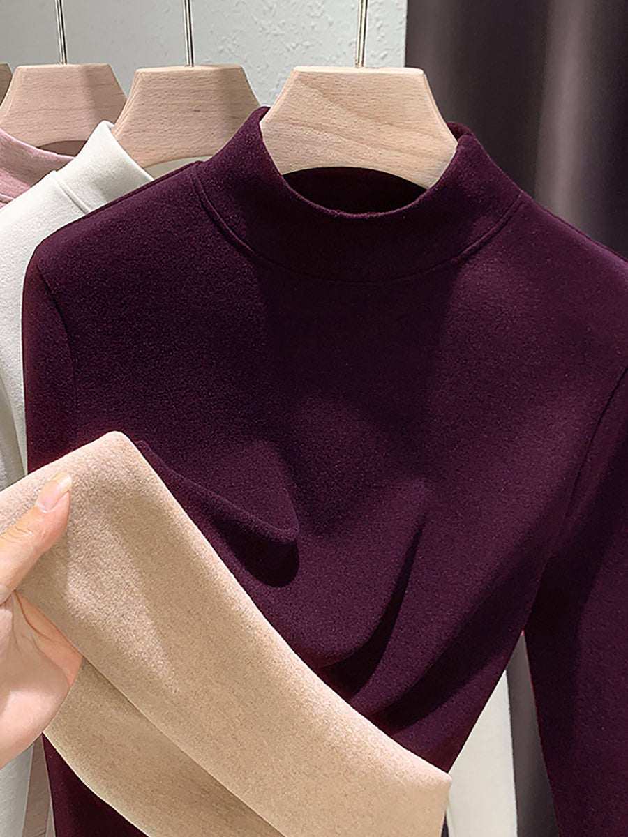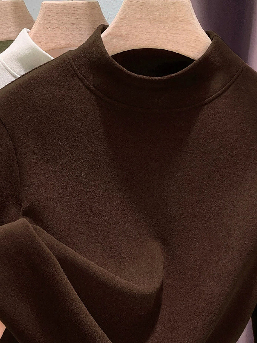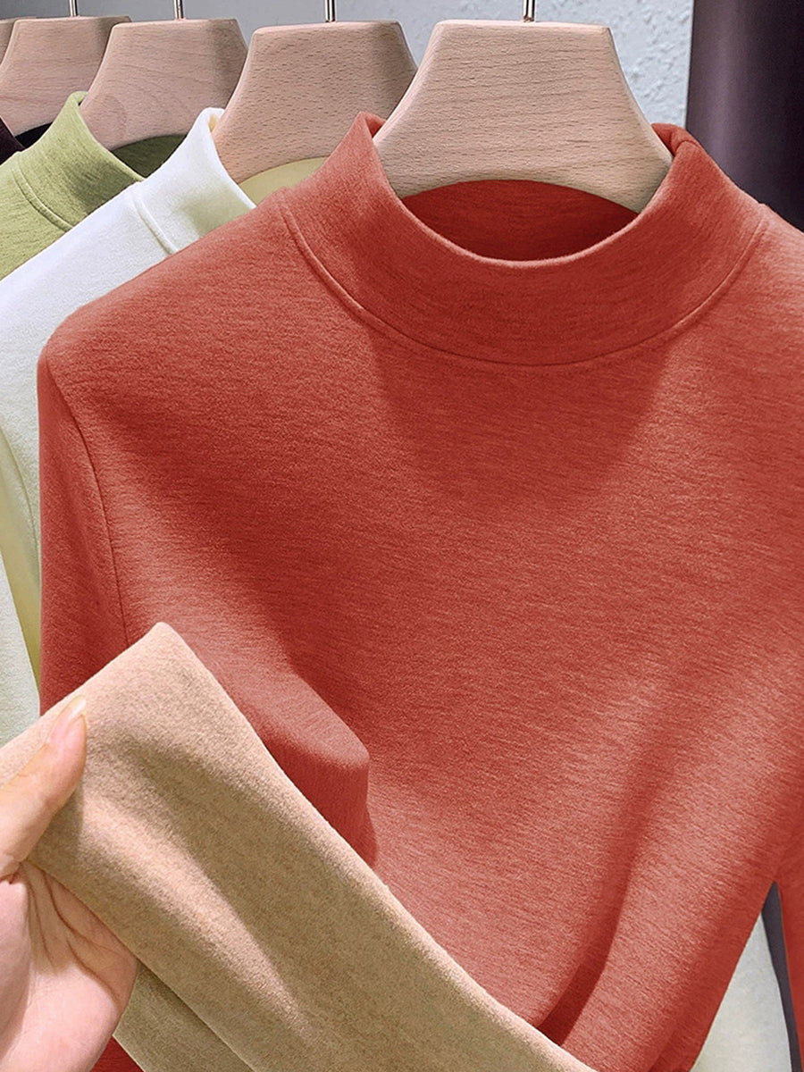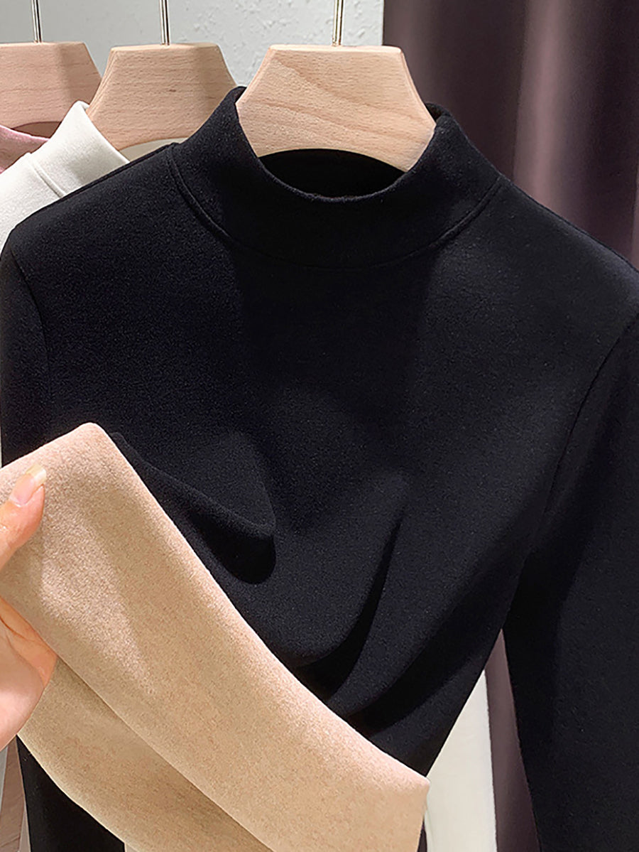 Women Autumn Casual Pure Color Half-Turtltneck Blouse