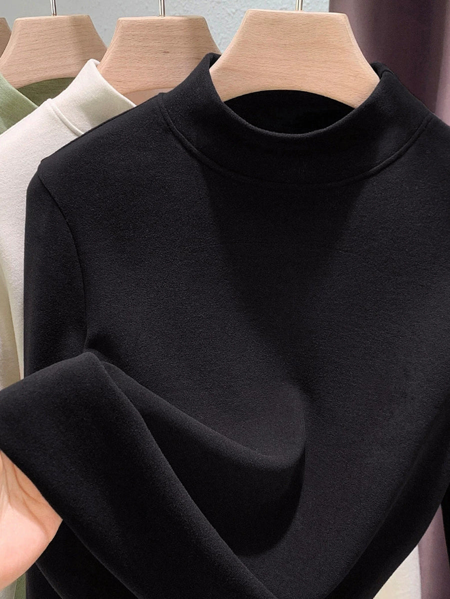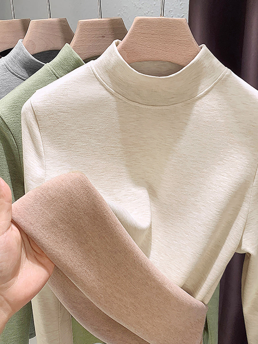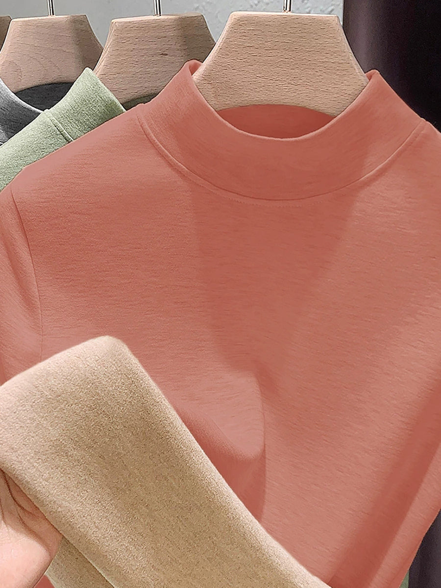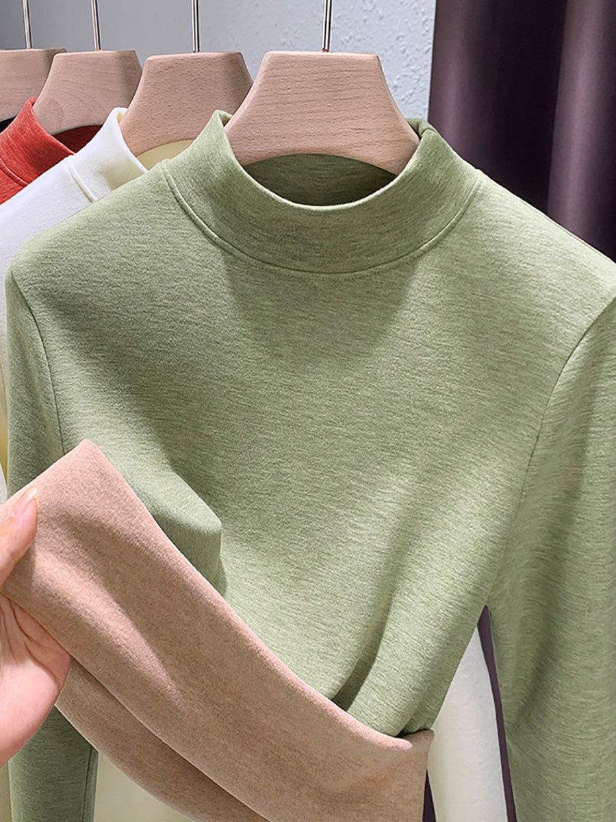 Women Autumn Casual Pure Color Half-Turtltneck Blouse