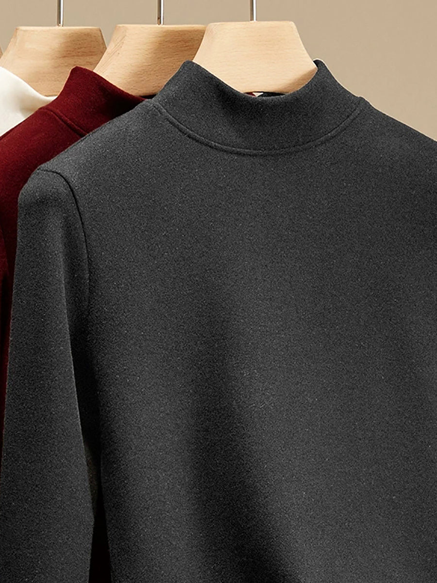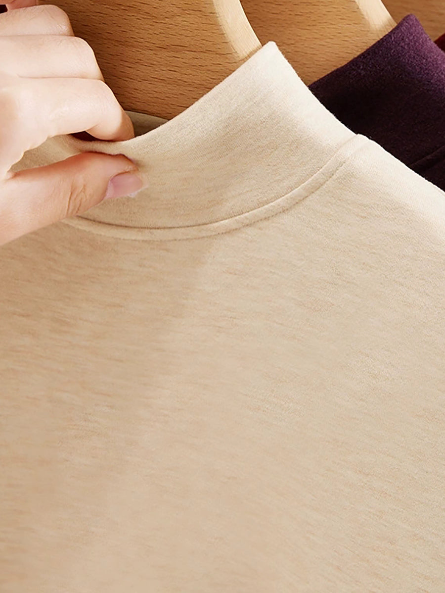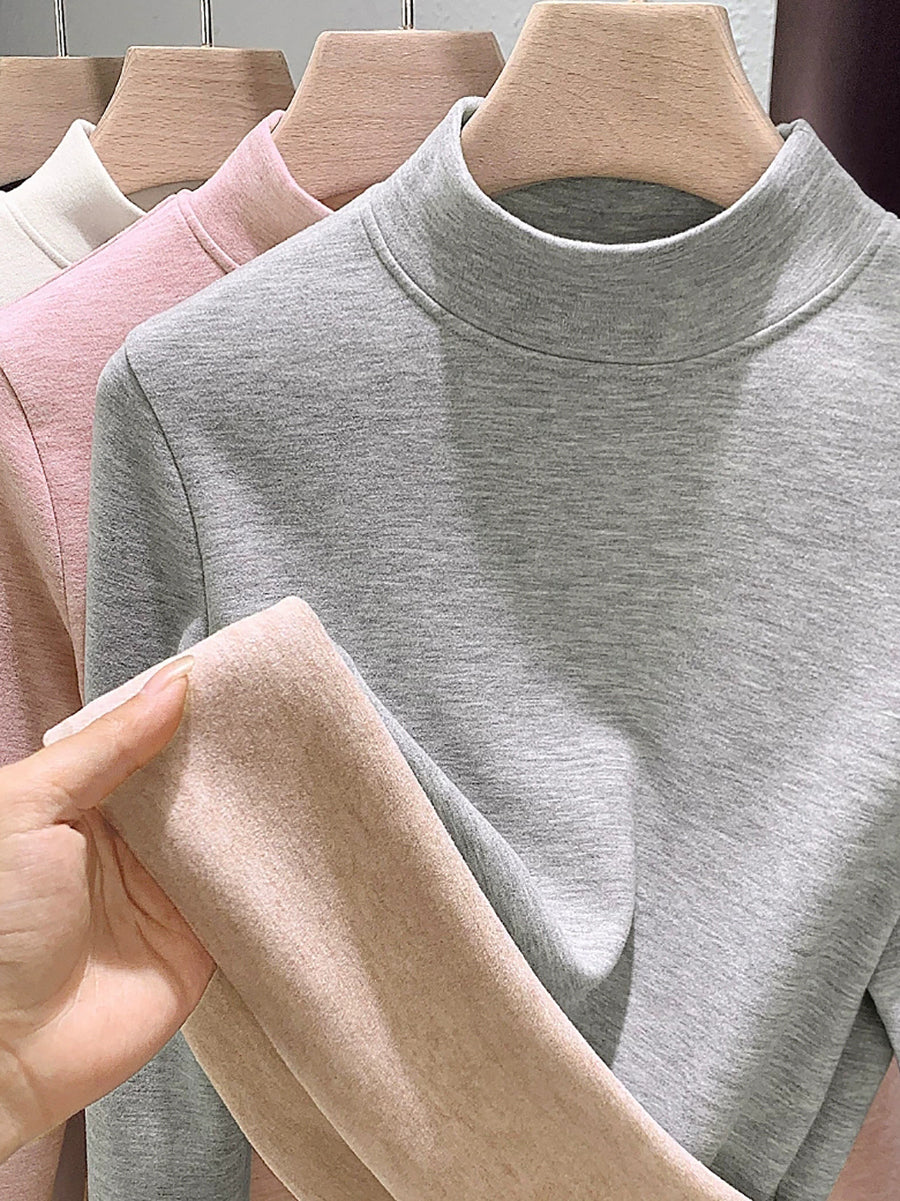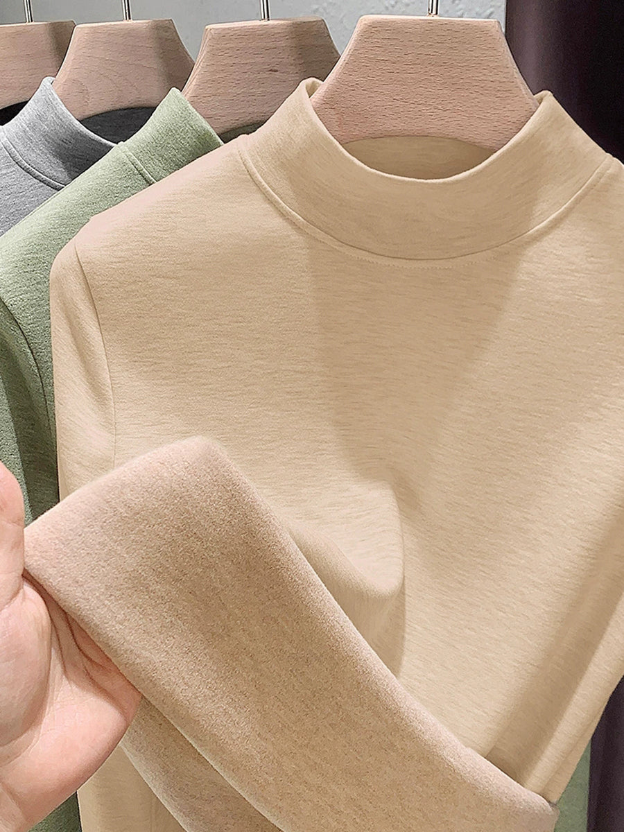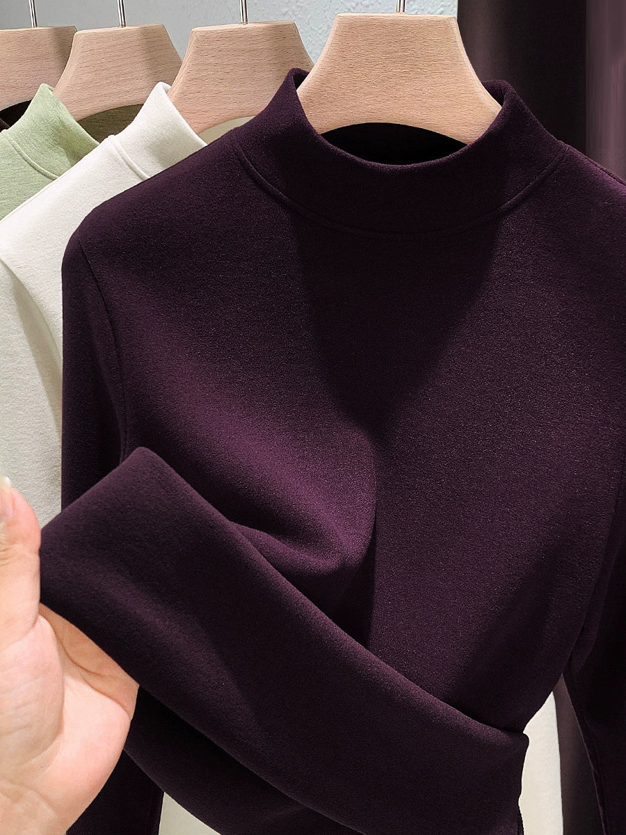 Women Autumn Casual Pure Color Half-Turtltneck Blouse