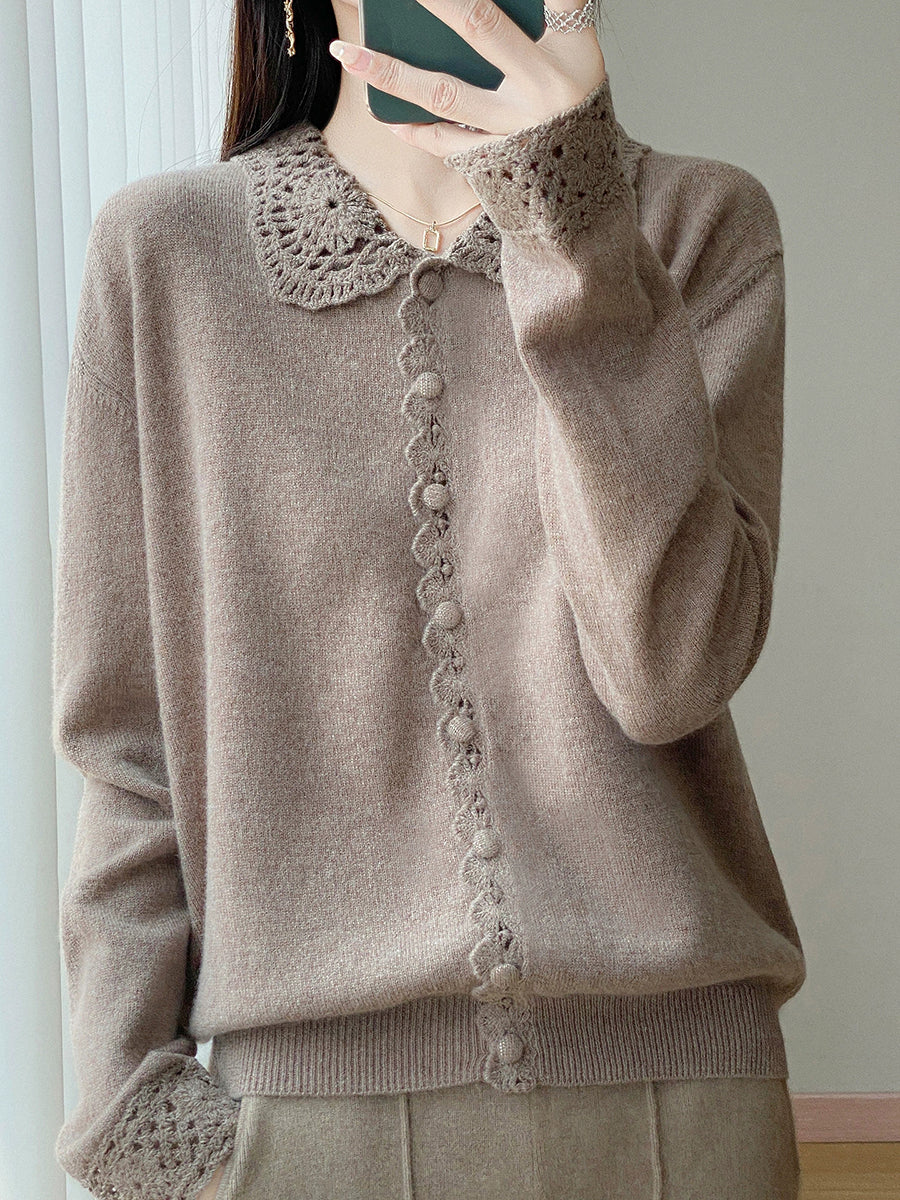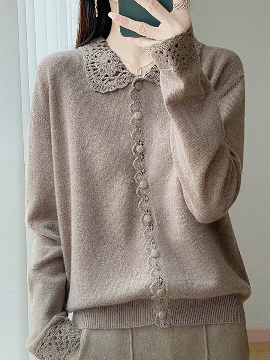 Women Winter Artsy Pure Color Knitted Sweater