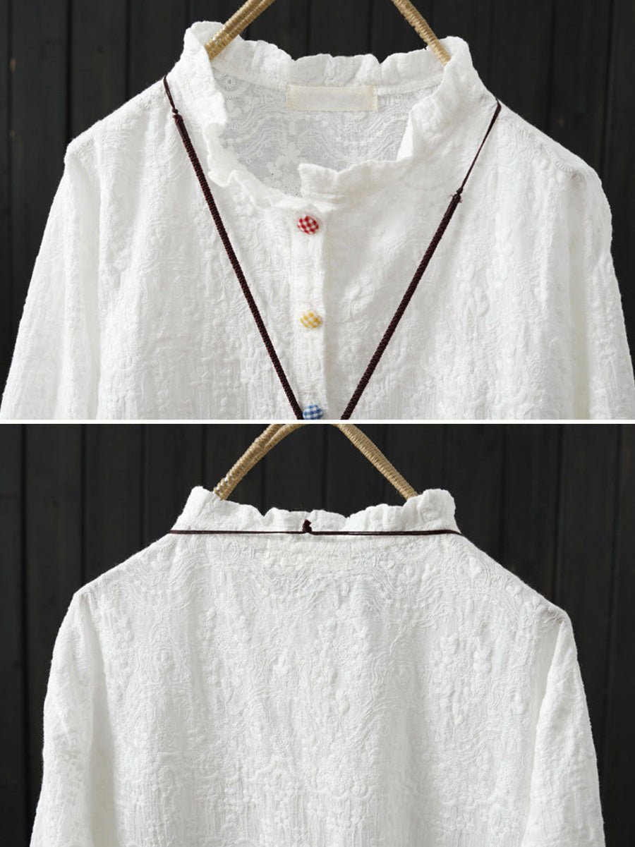 Women Artsy Spring Embroidery 100%Cotton Shirt