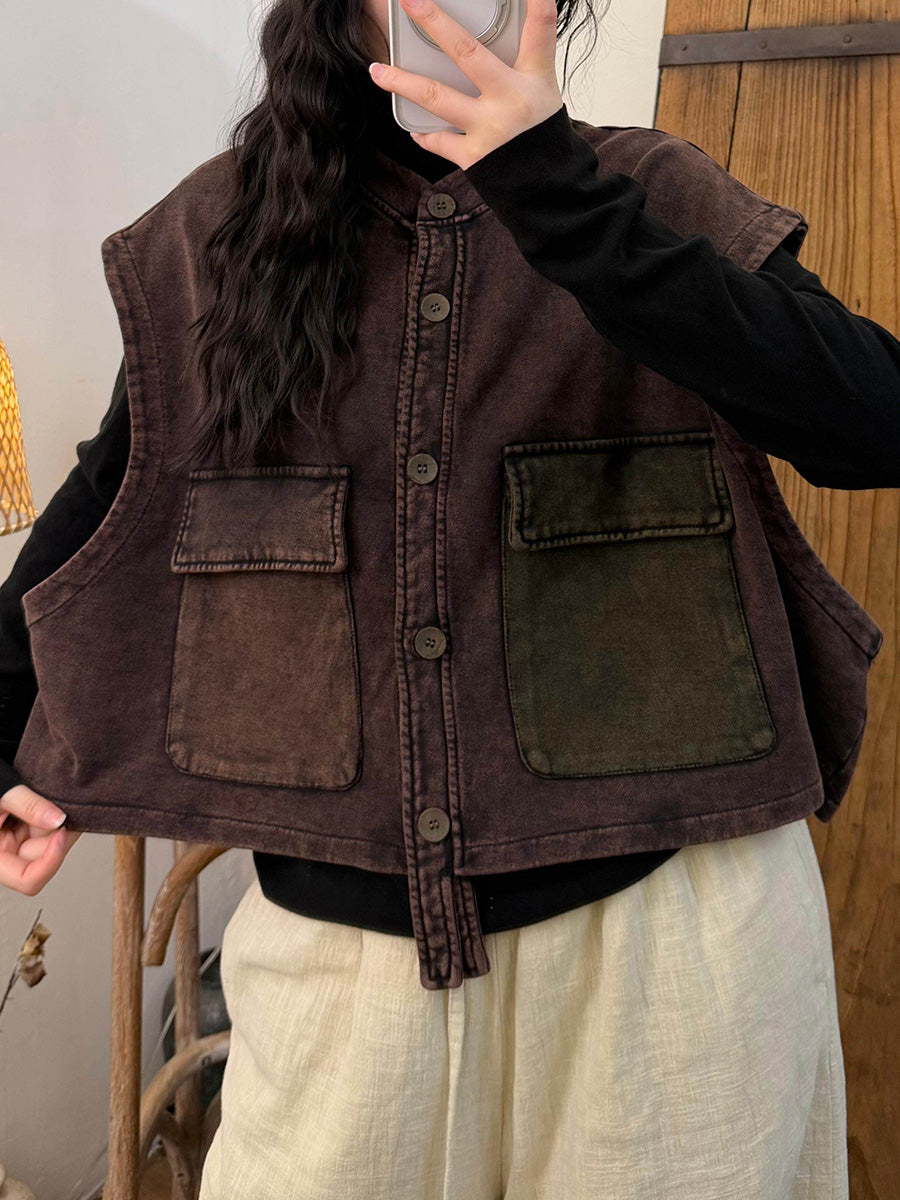 Crafted from premium cotton, this winter vest showcases a striking colorblock pattern that bridges vintage aesthetics with contemporary style. The structured stand collar provides a polished silhouette, while the retro-inspired design delivers timeless appeal. Versatile across winter and autumn seasons, it layers effortlessly over your favorite pieces for added warmth and visual interest.