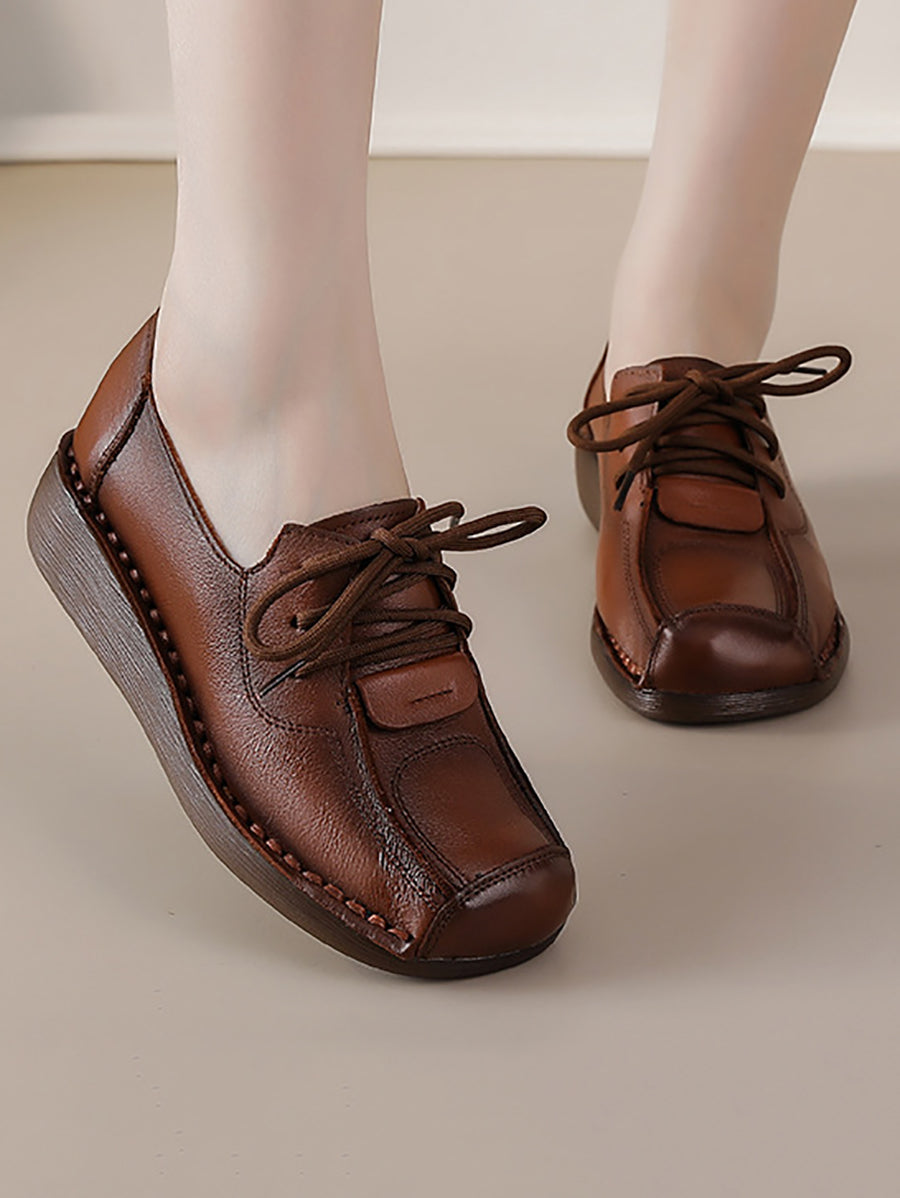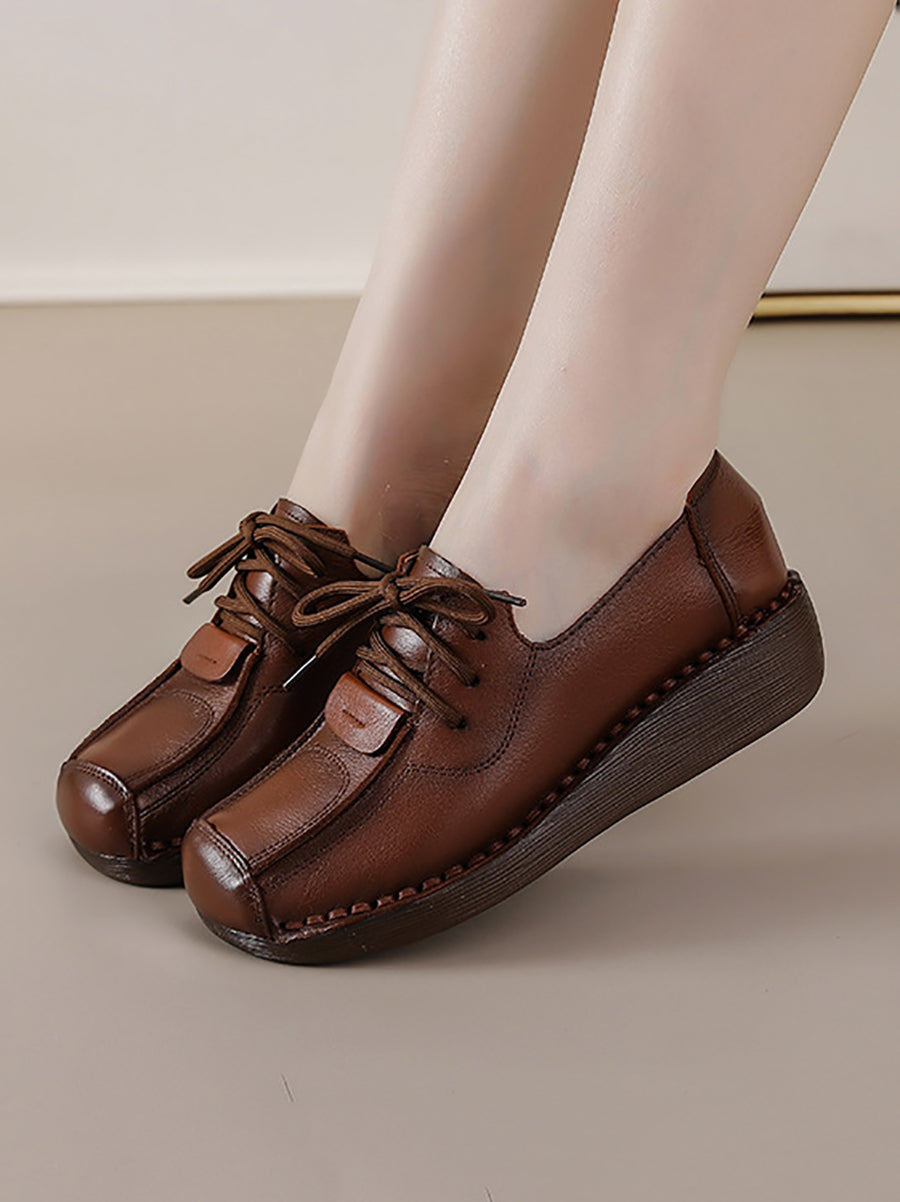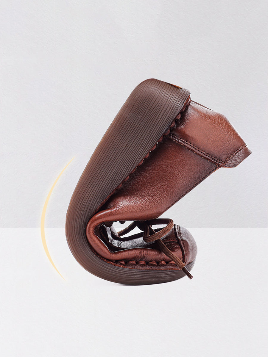 Women Winter Retro Genuine Leather Platform Shoes
