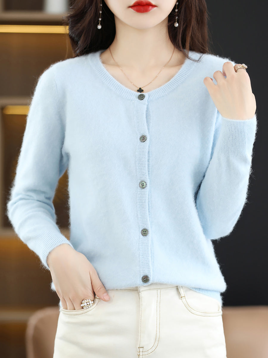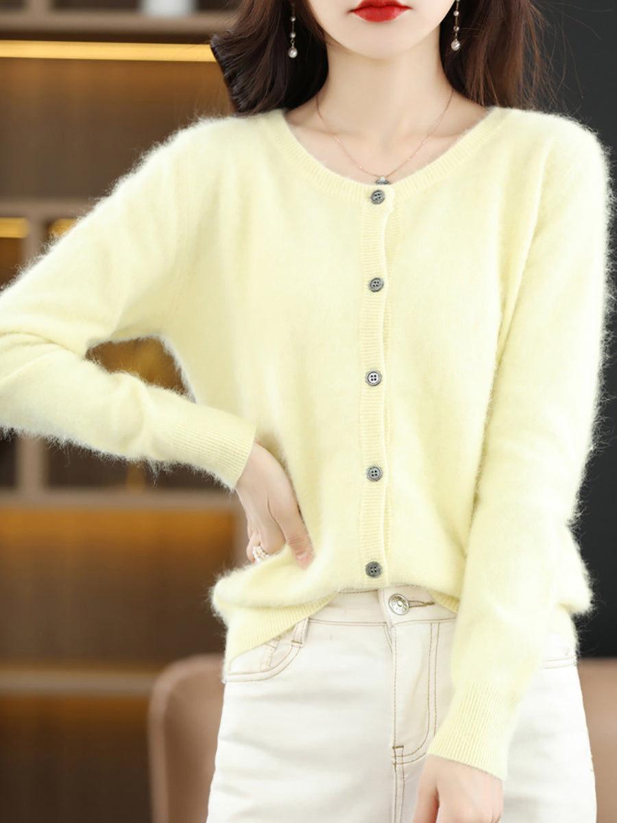 Women Autumn Artsy Pure Color O-Neck Cardigan Sweater