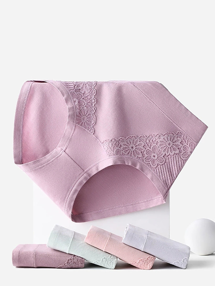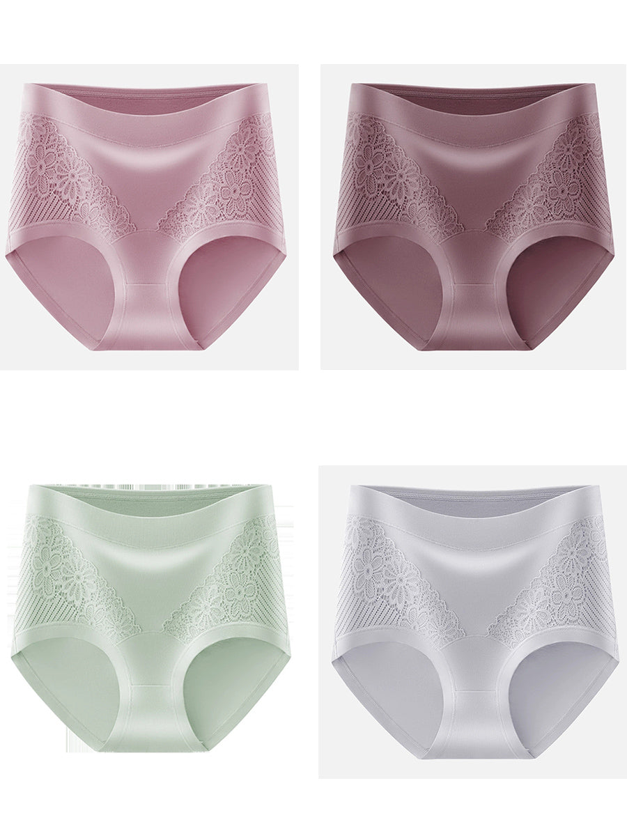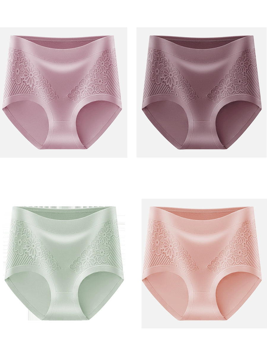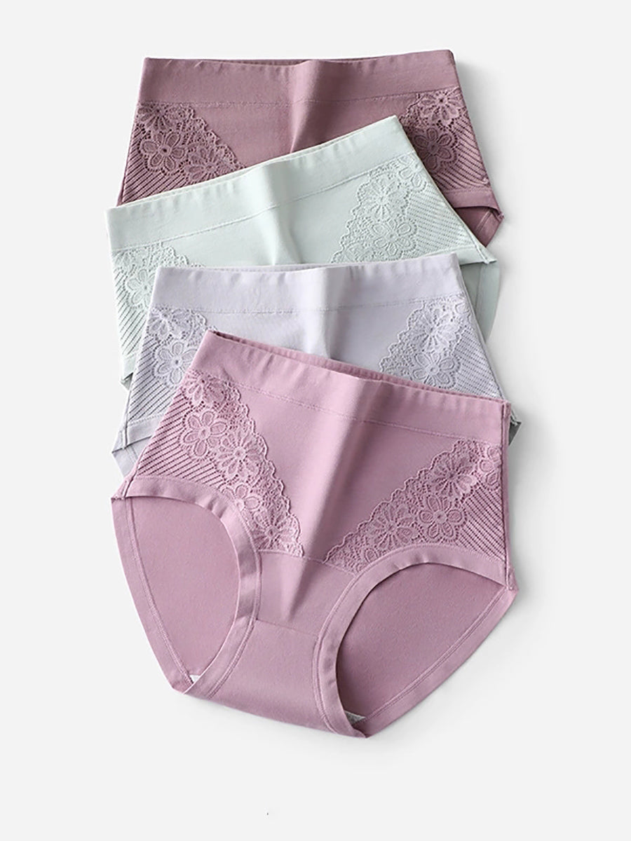 4 Pieces Women Artsy Lace Flower High Waist Underwear