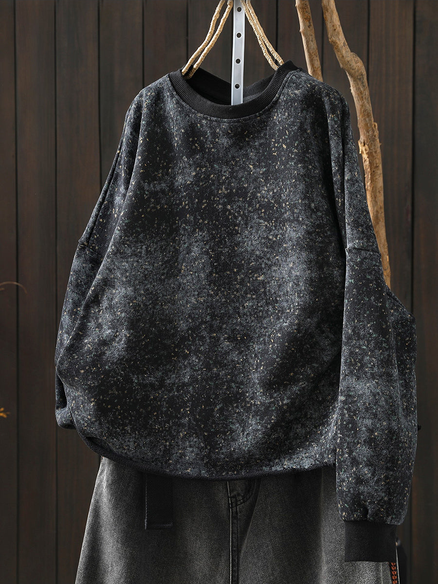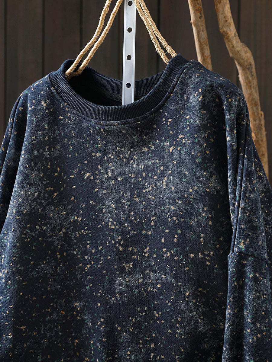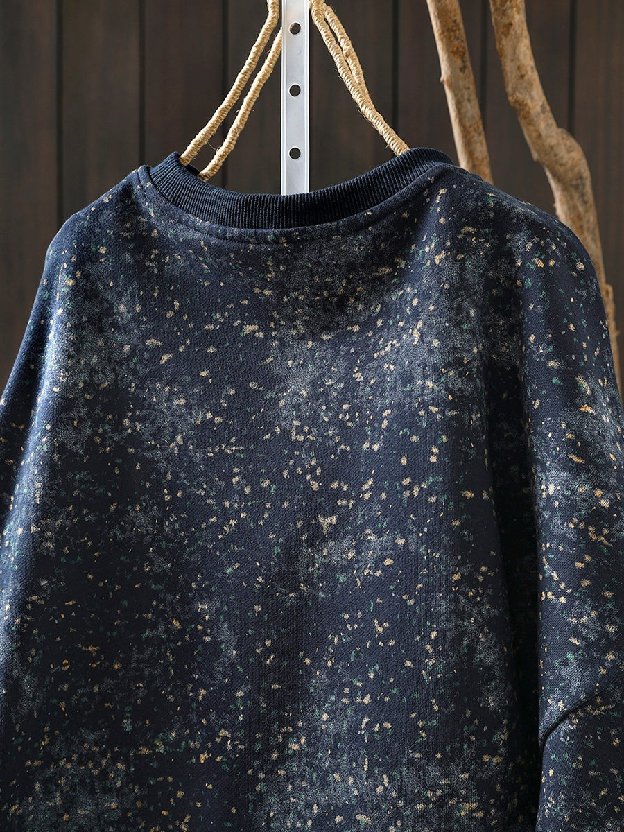 Women Artsy Spring Tie-dye 100%Cotton O-Neck Blouse