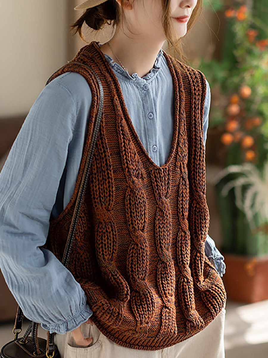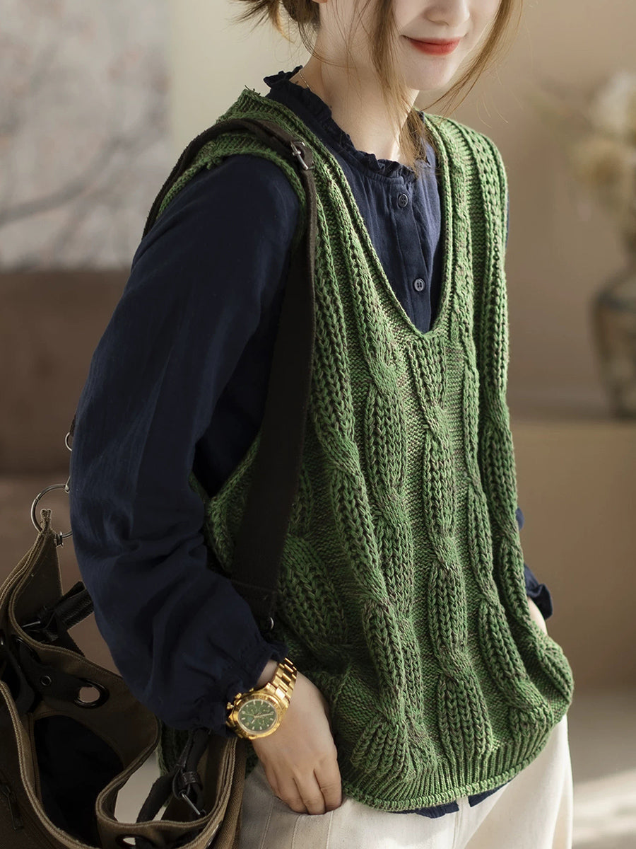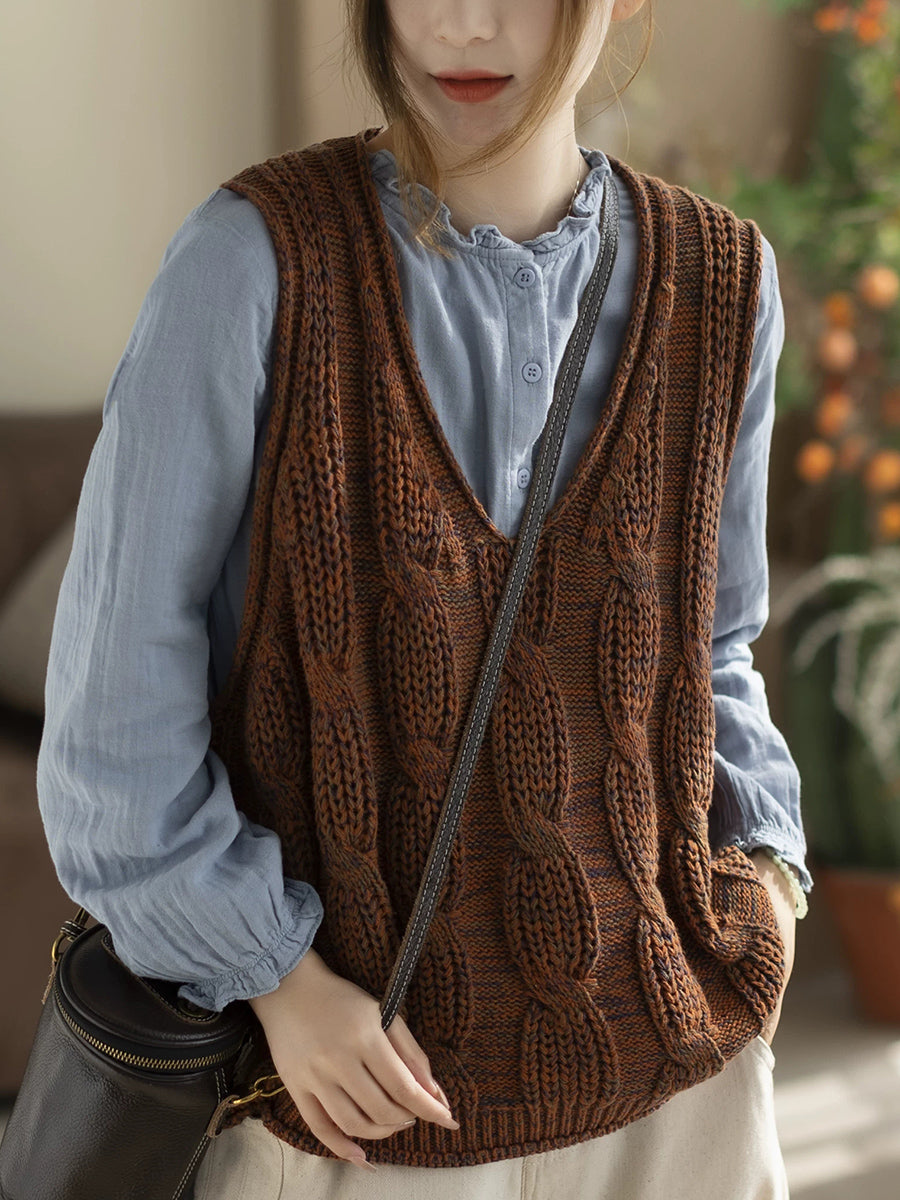 Women Spring Artsy V-Neck Cable Knitted Vest