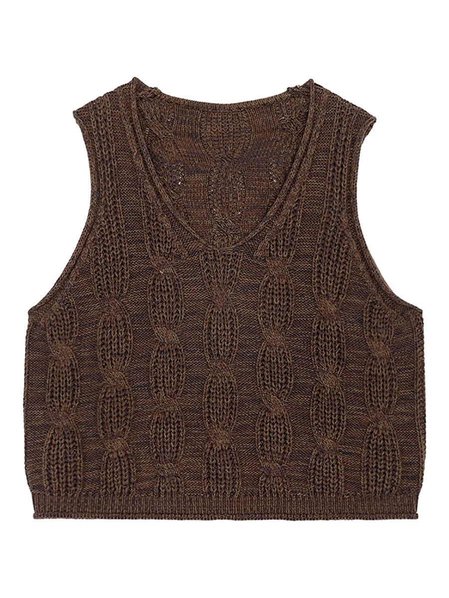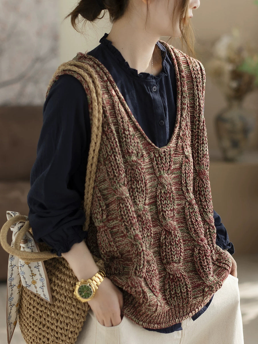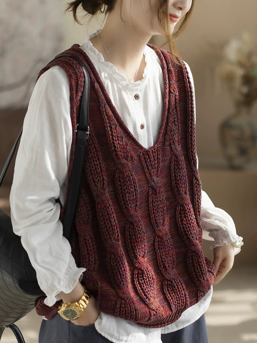 Women Spring Artsy V-Neck Cable Knitted Vest
