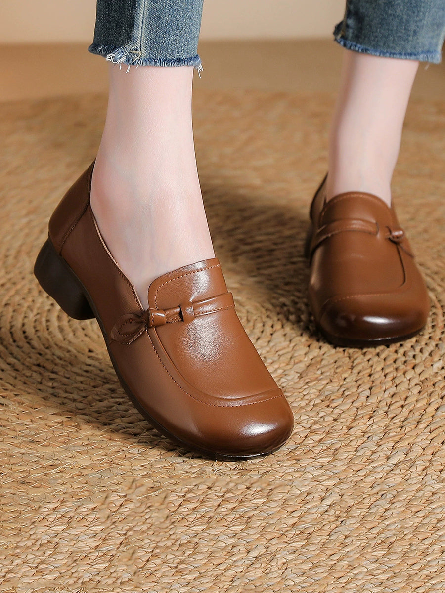 Women Vintage Genuine Leather Mid-Heel Shoes