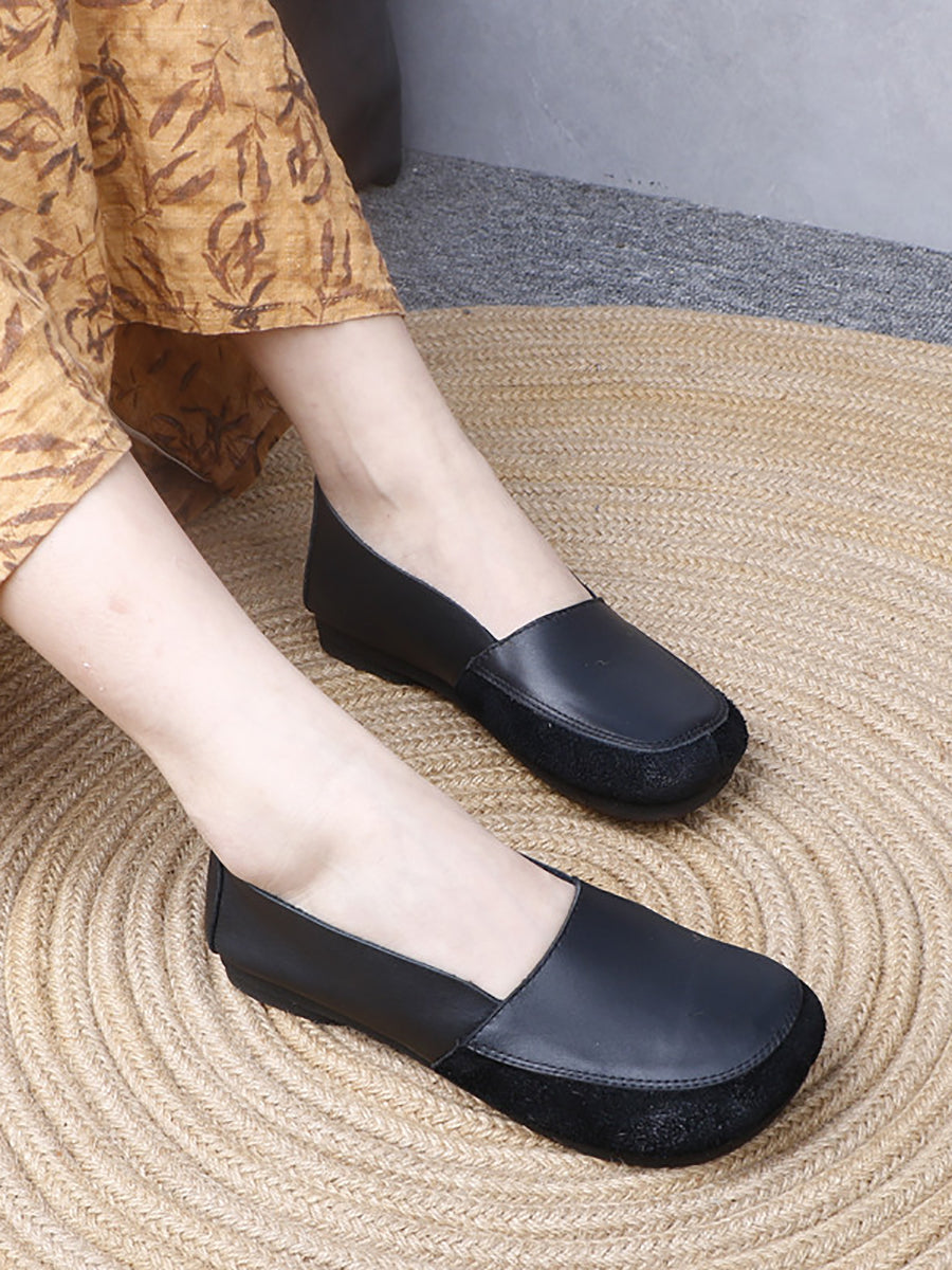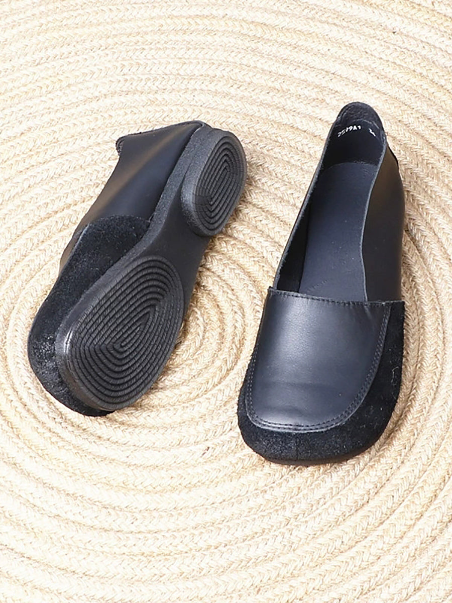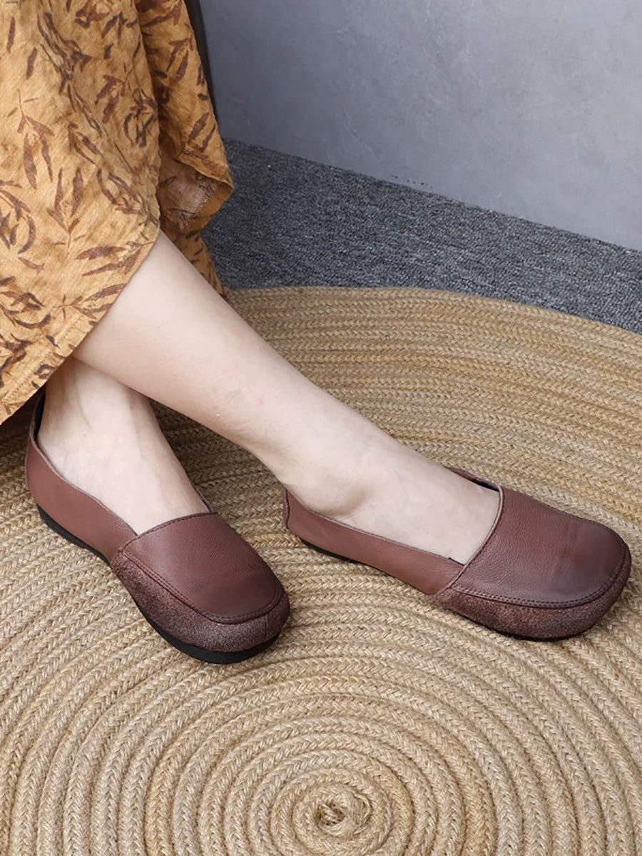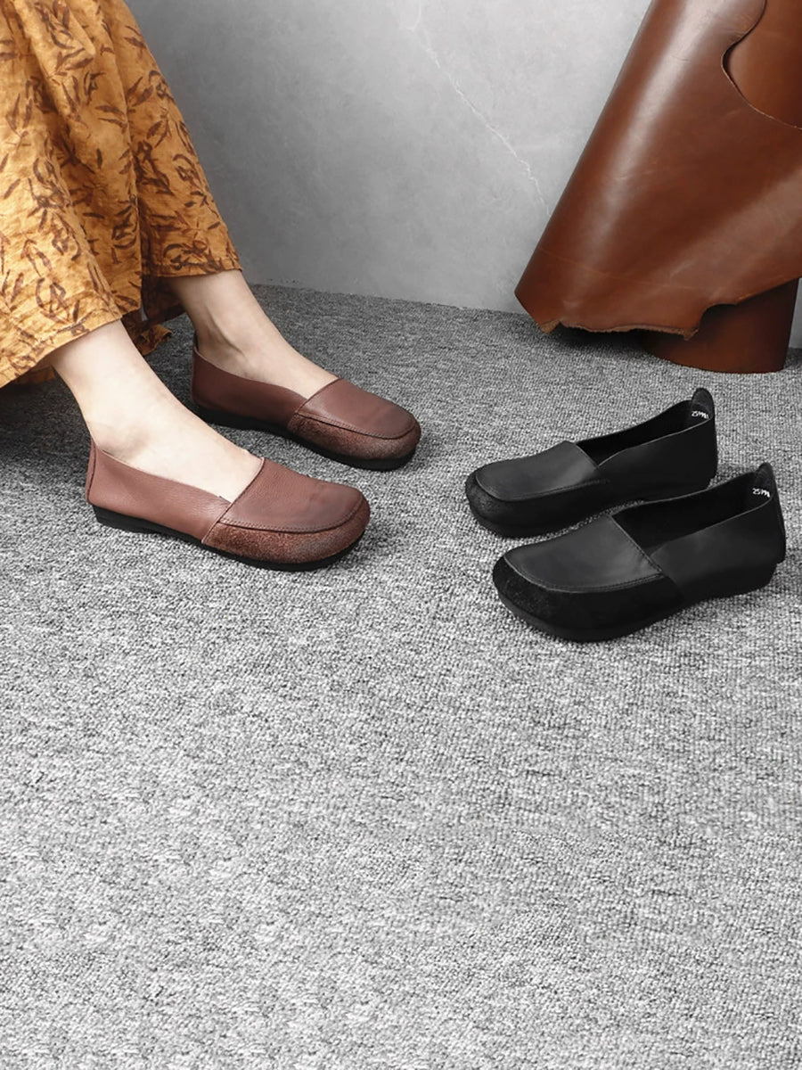 Women Retro Genuine Leather Spliced Low Heel Shoes