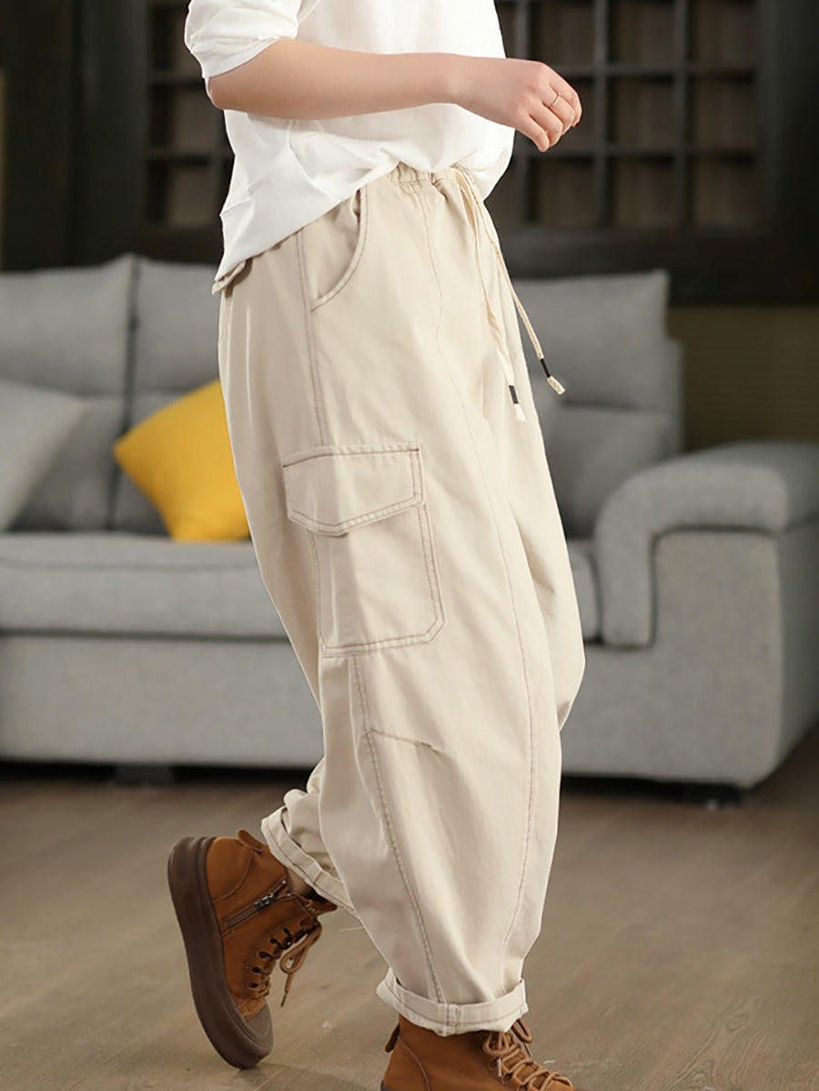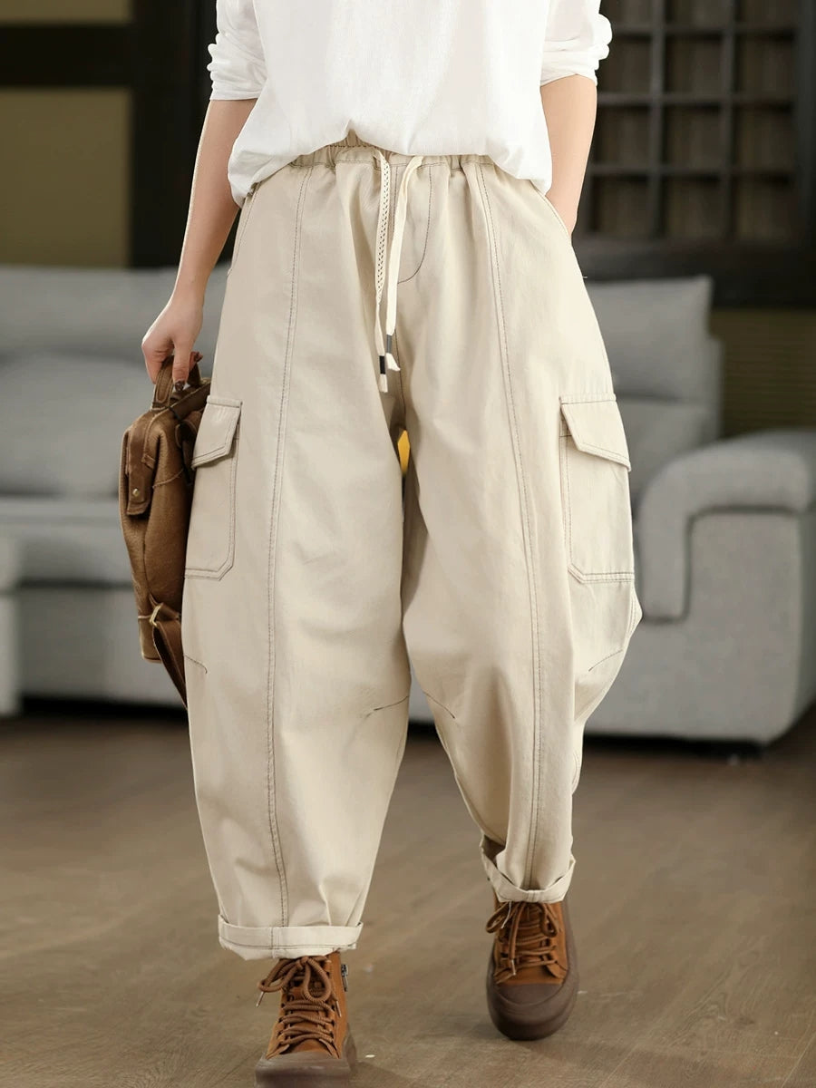 Women Spring Casual Pure Color Cotton Harem Pants