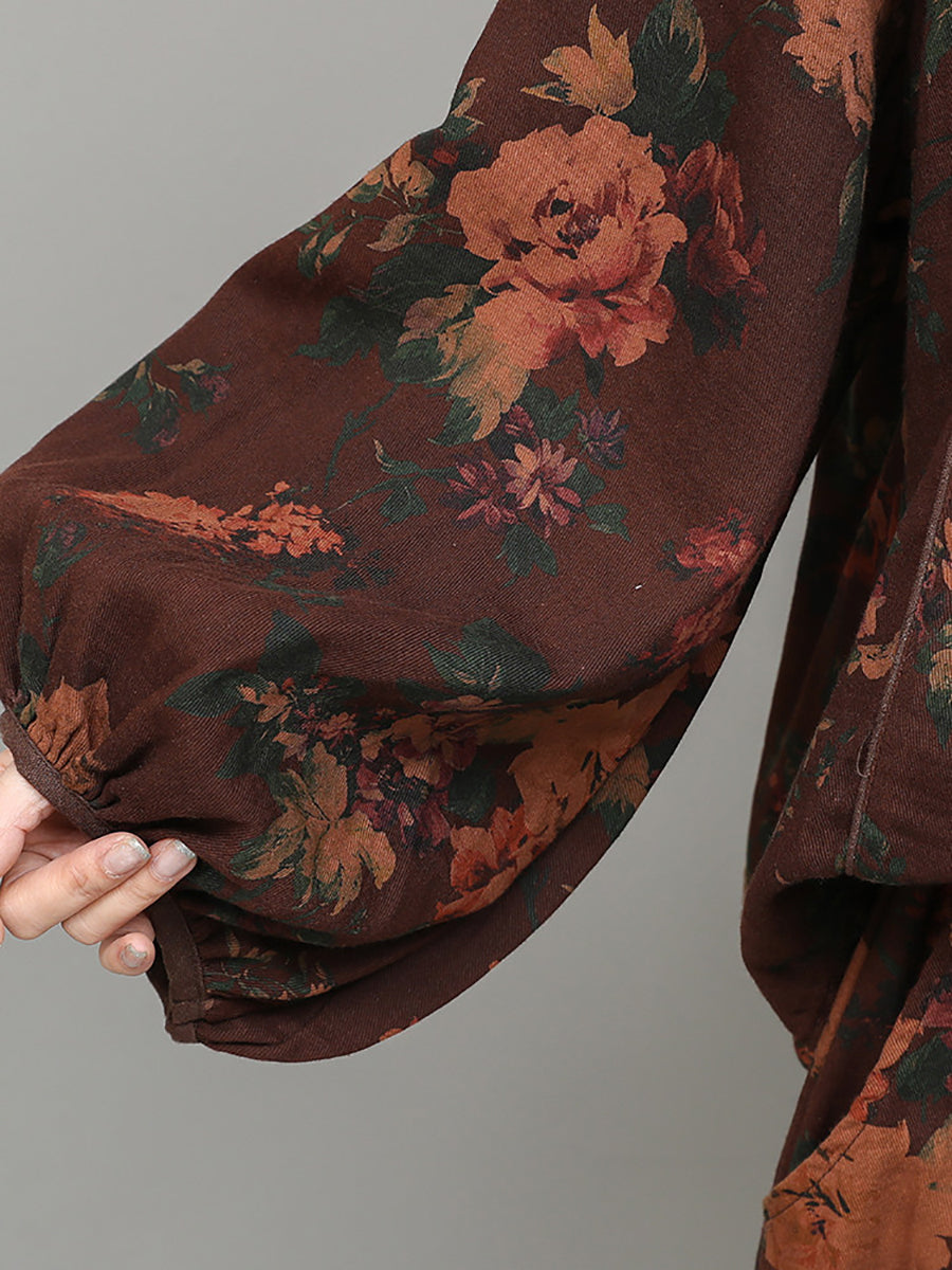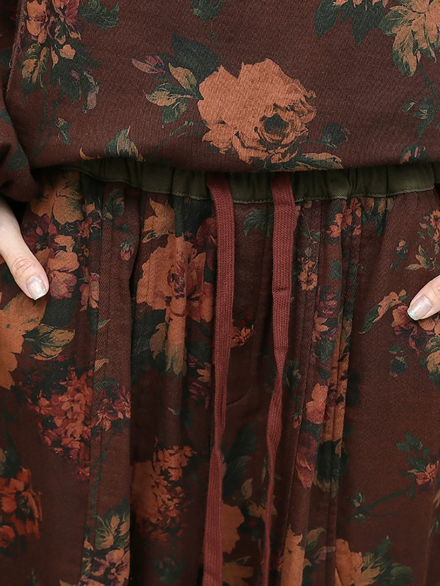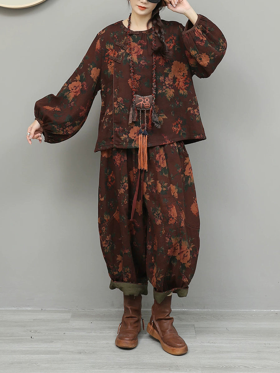 Women Spring Ethnic Flower Spliced O-Neck Suits