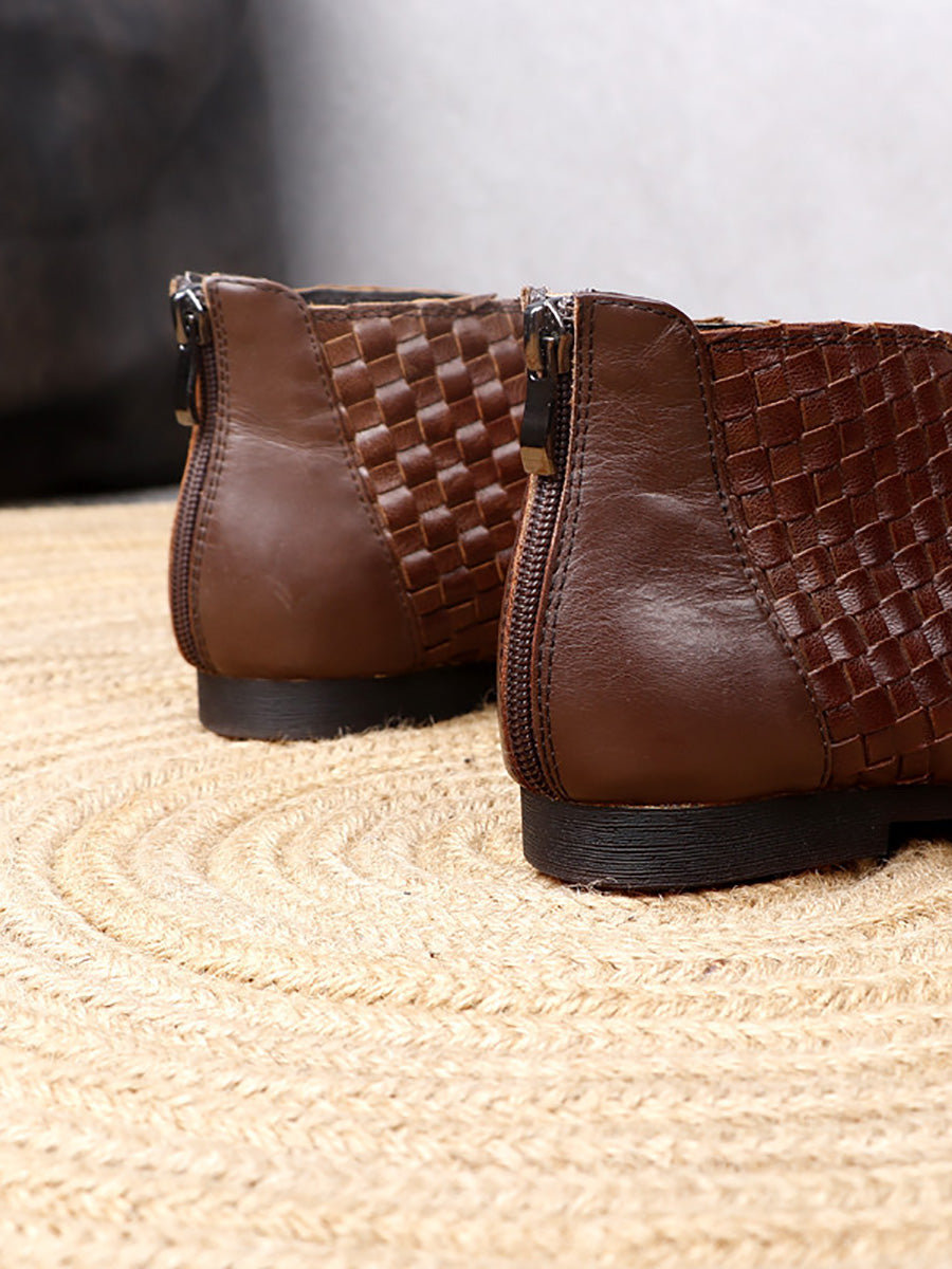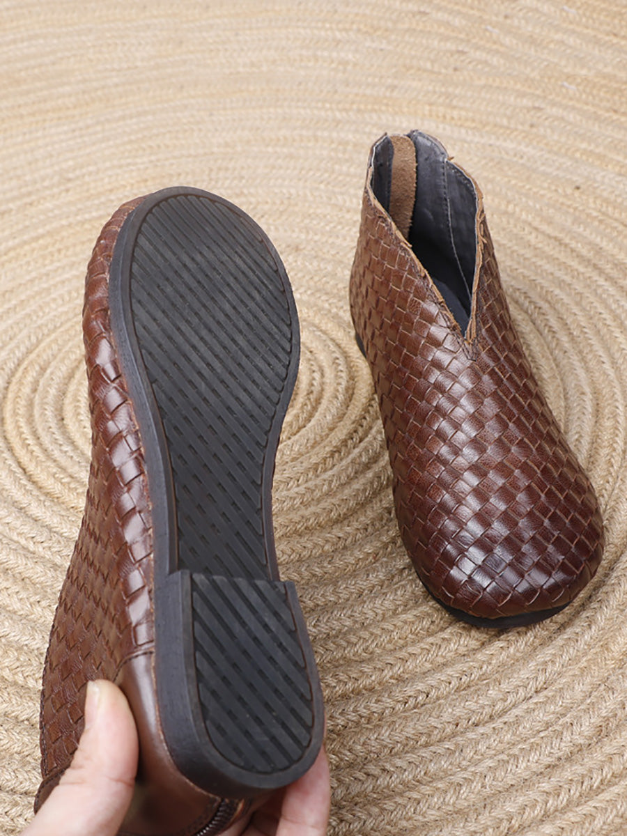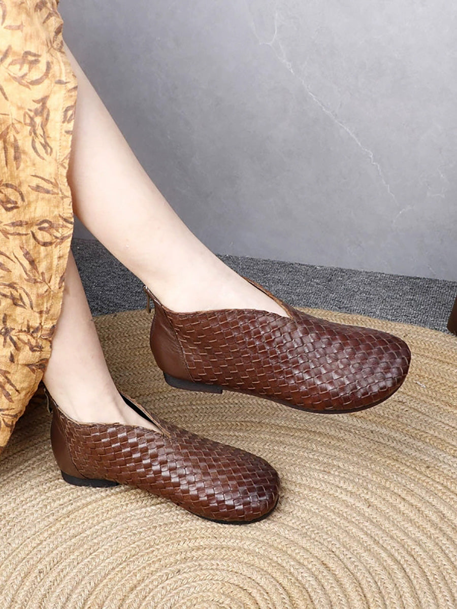 Women Vintage Genuine Leather Weave Flat Shoes