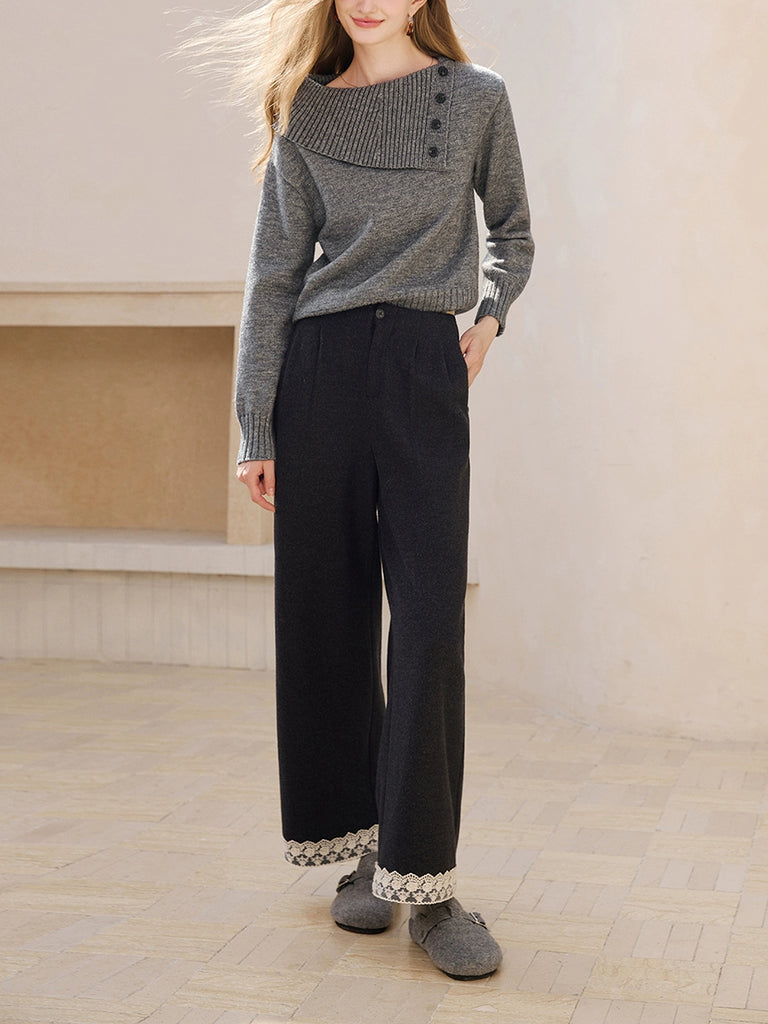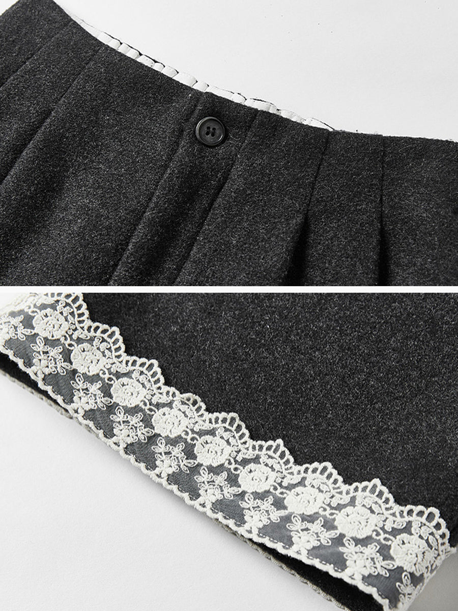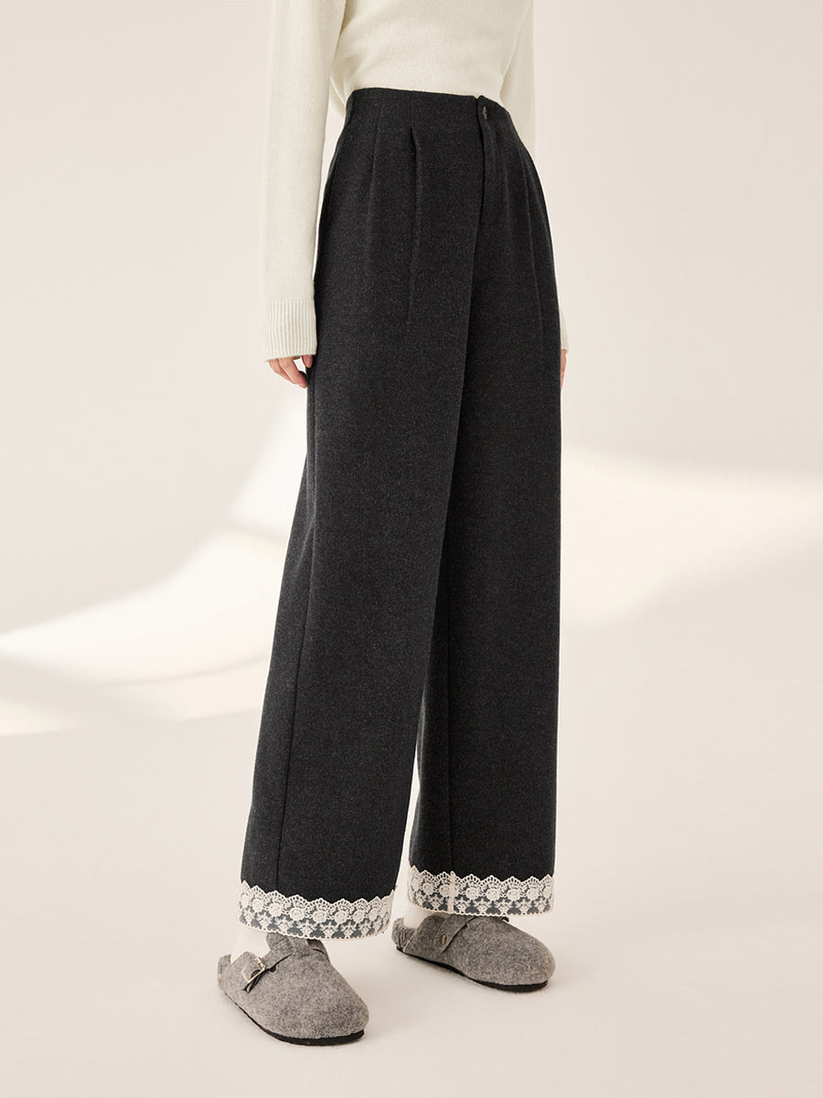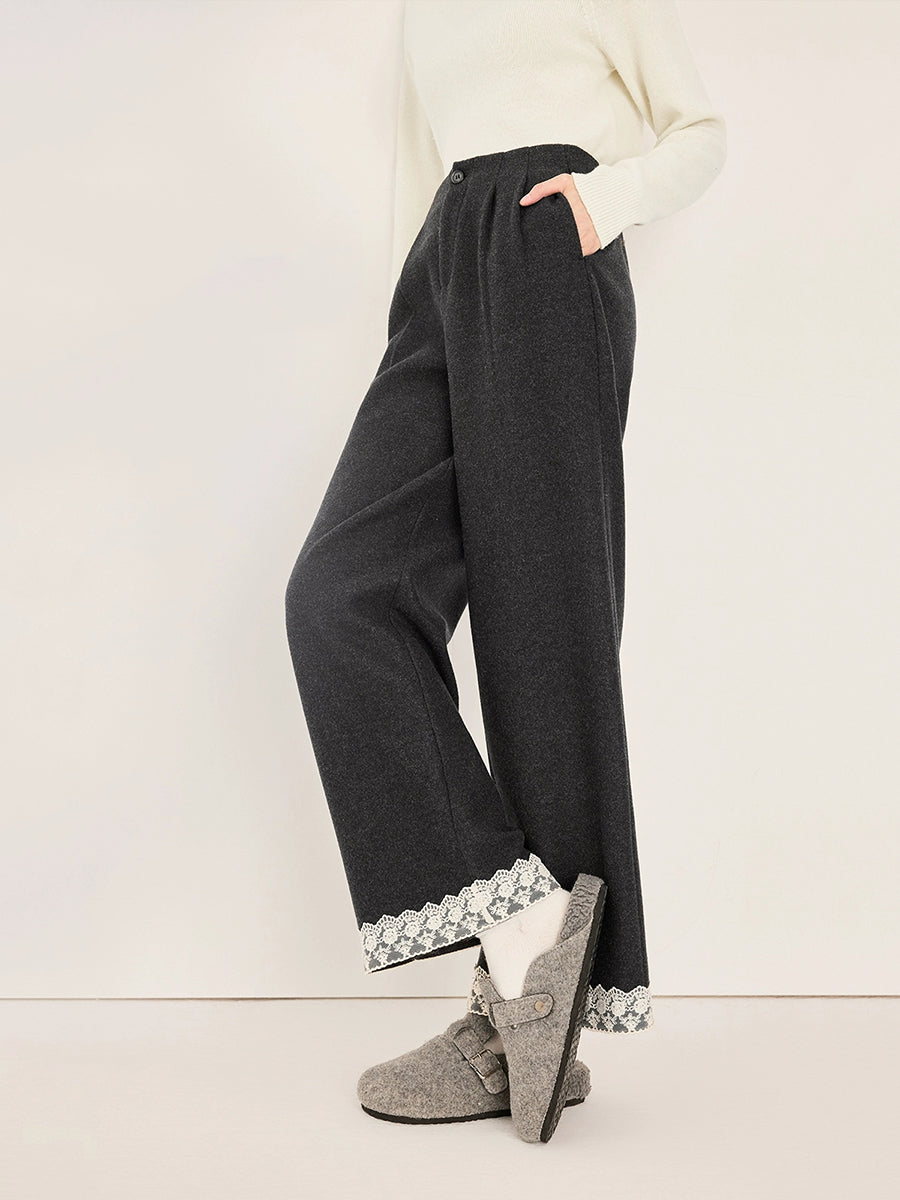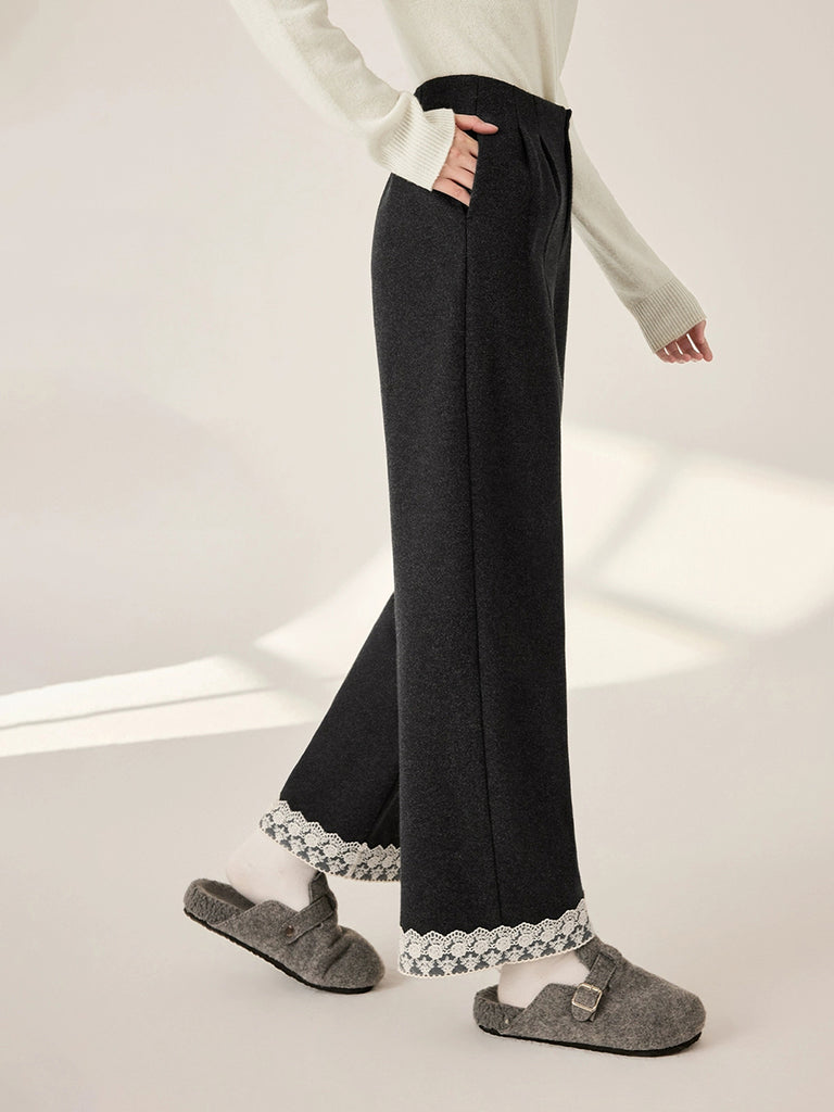 Women Autumn Artsy Lace Spliced Straight Pants