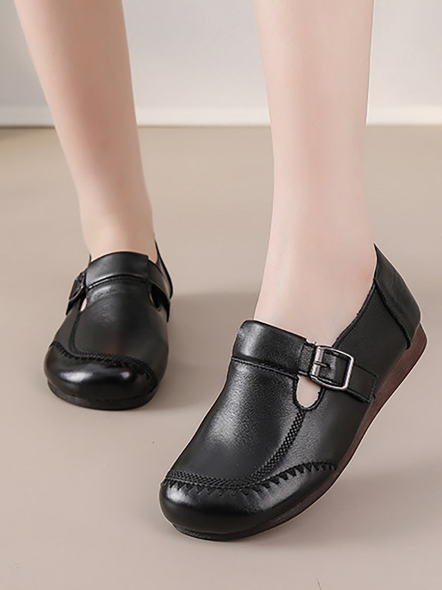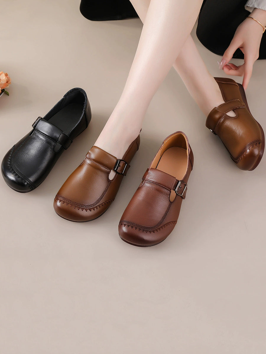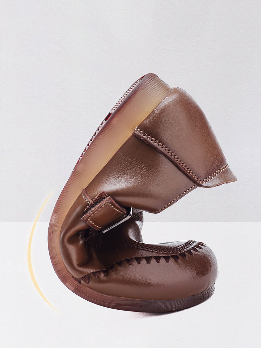 Women Casual Pure Color Genuine Leather Flat Shoes