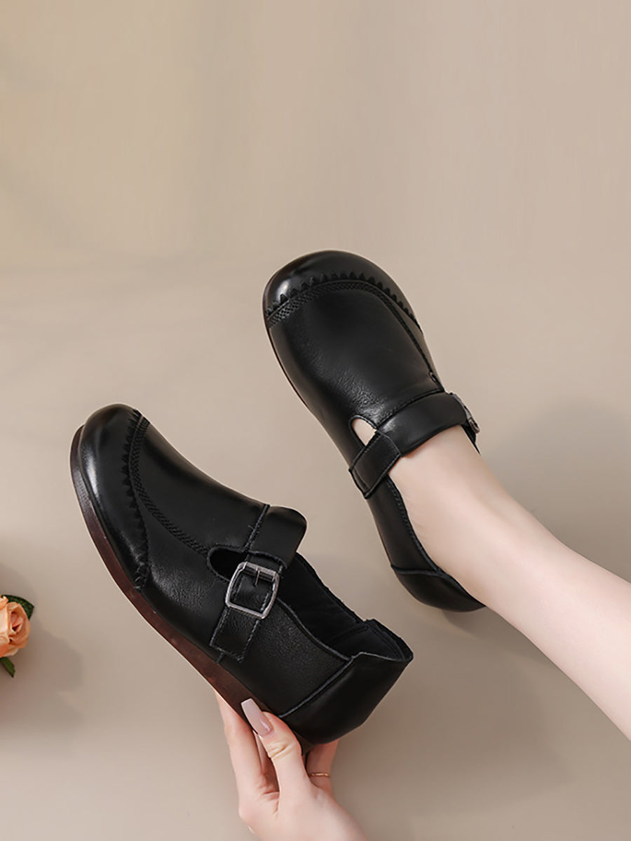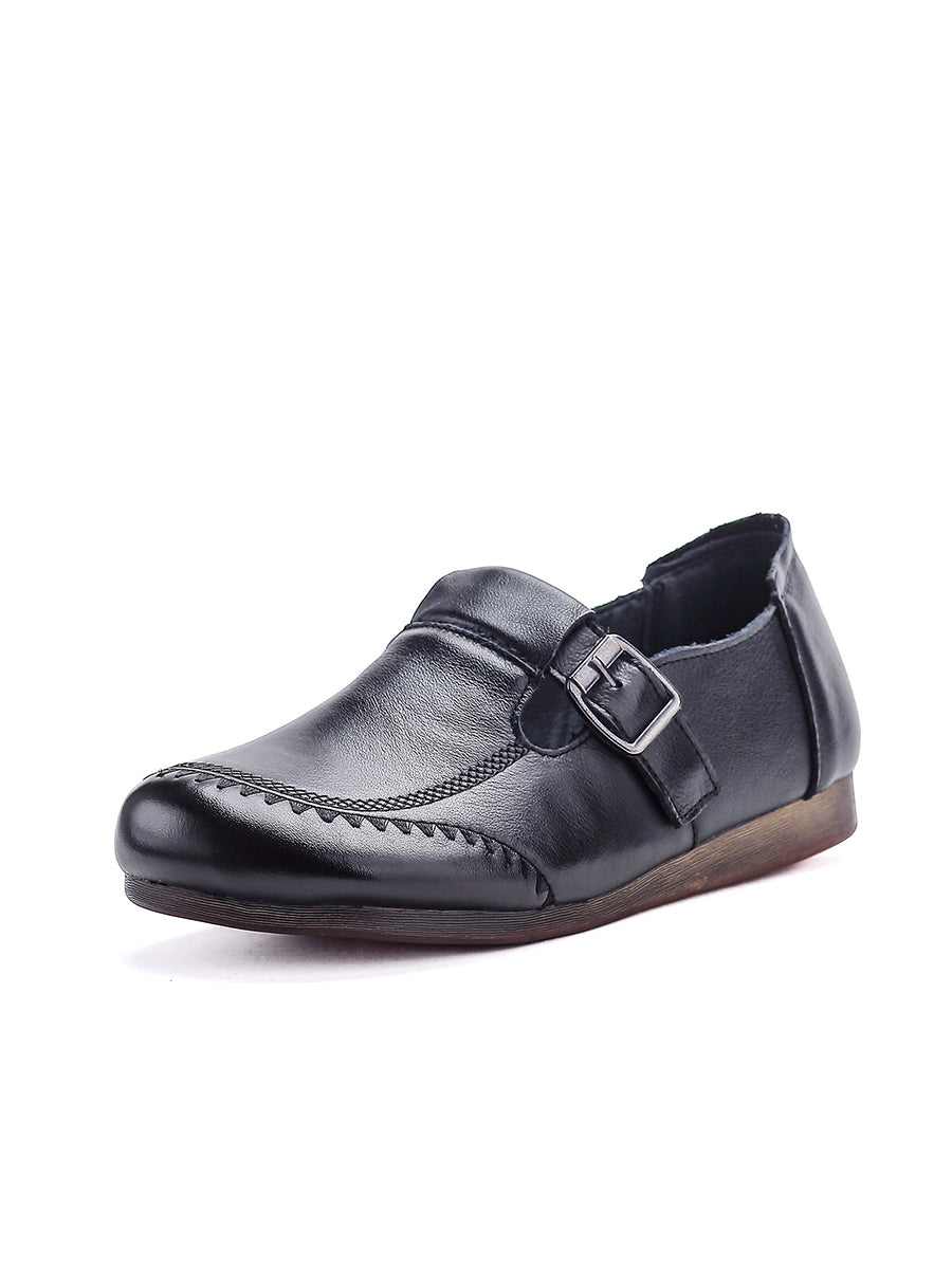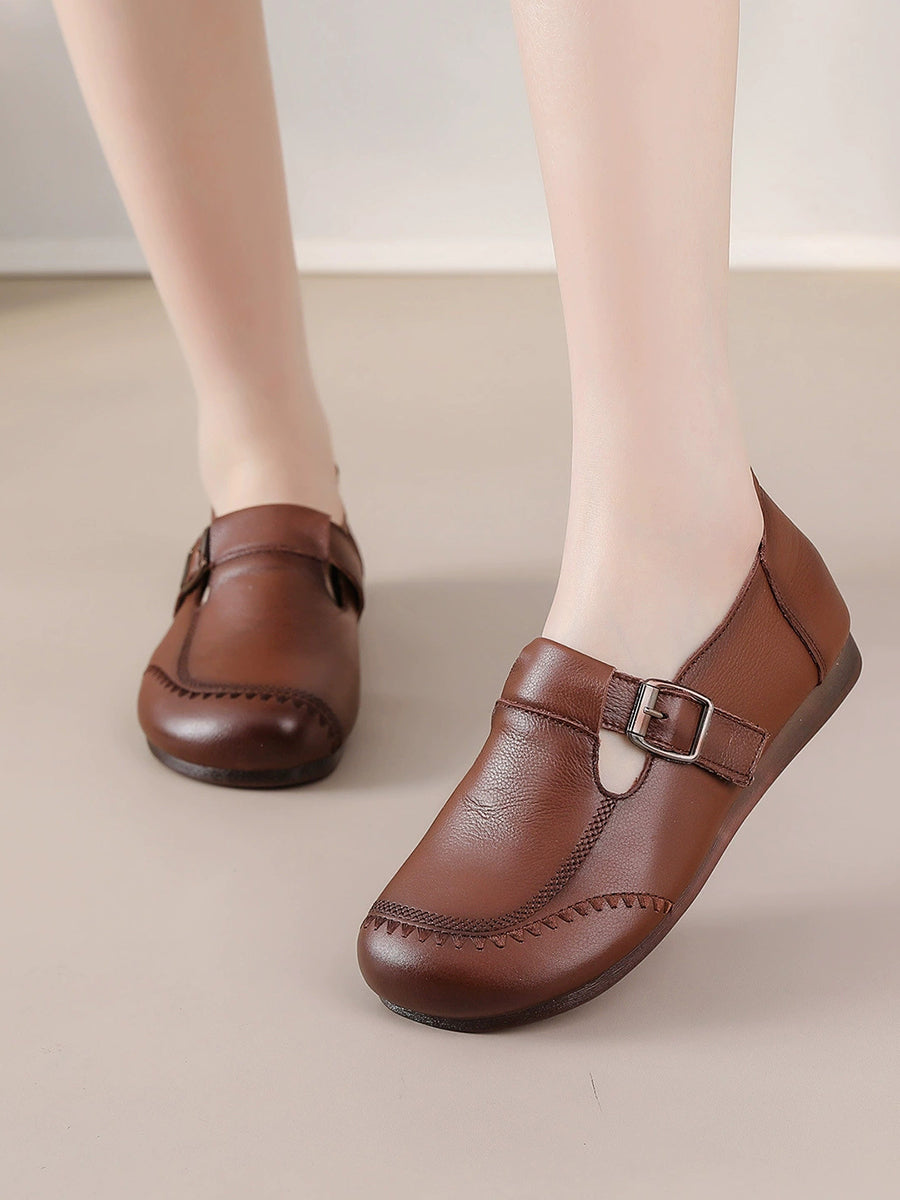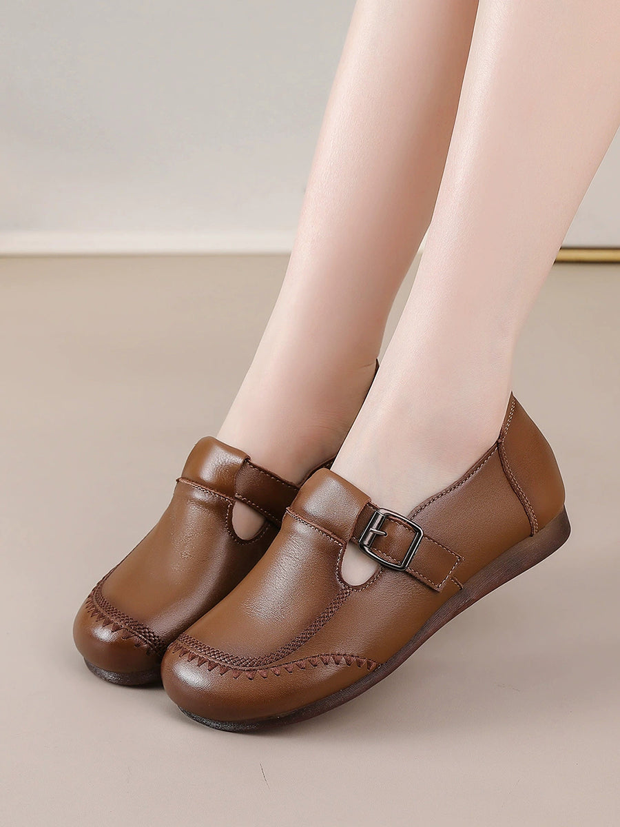 Women Casual Pure Color Genuine Leather Flat Shoes