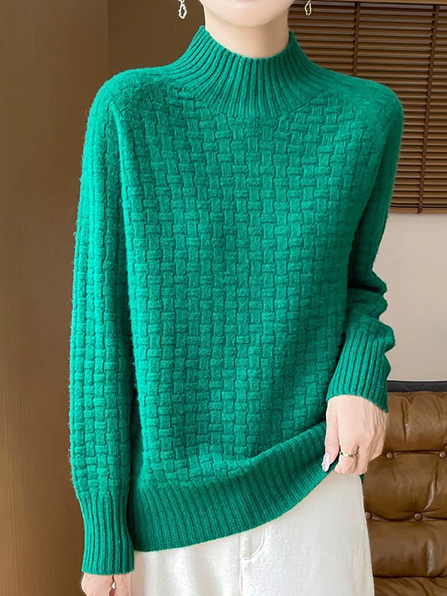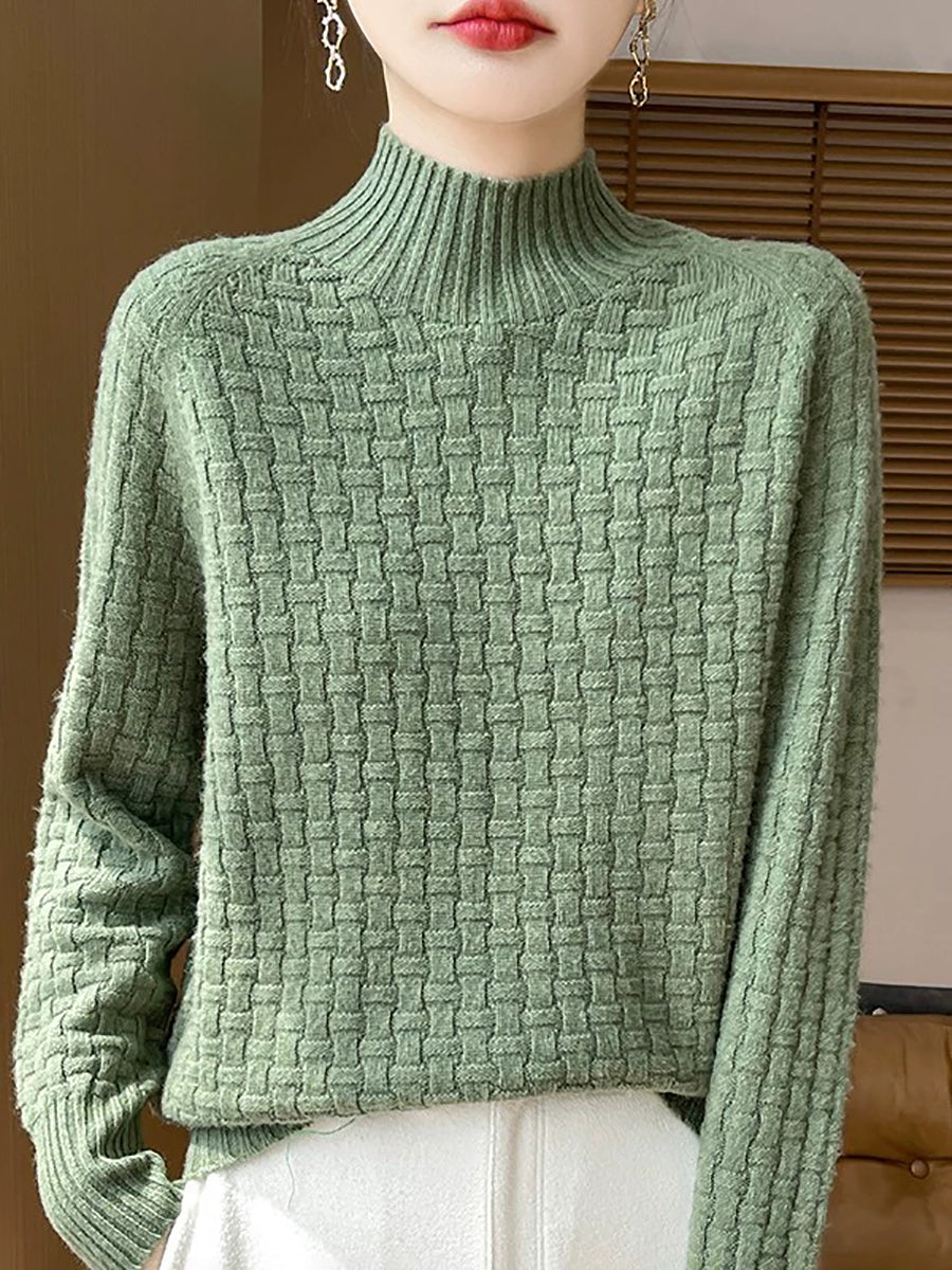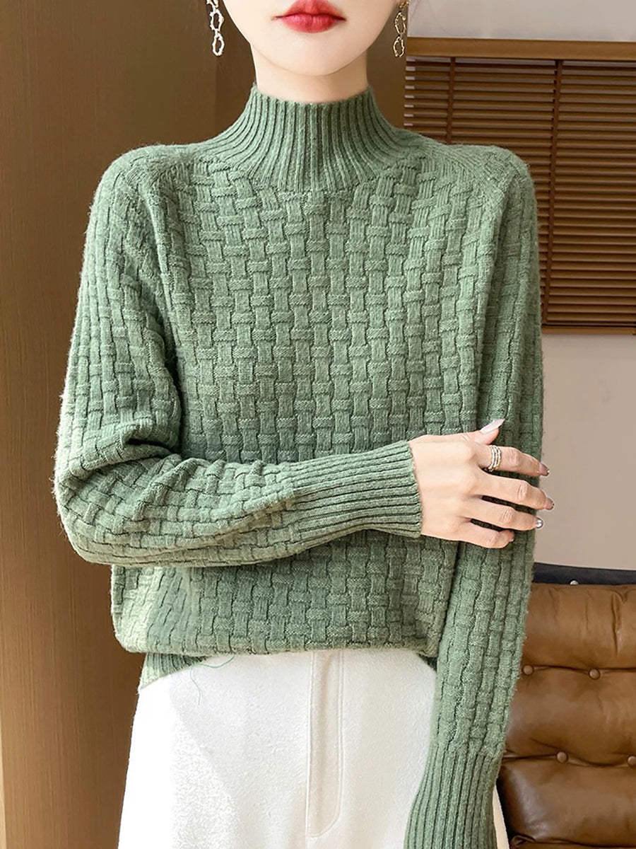 Women Casual Spring Pure Color Half-turtleneck Sweater