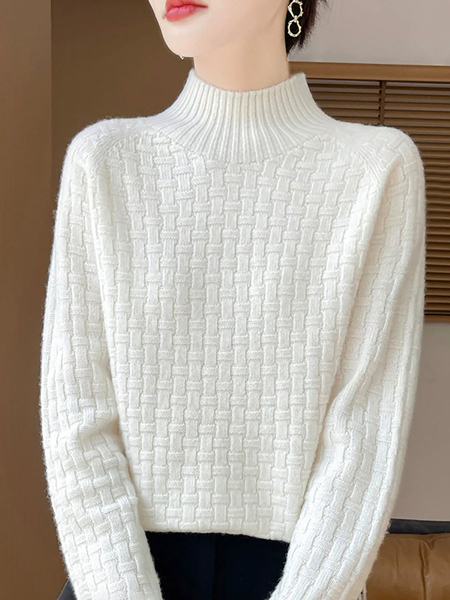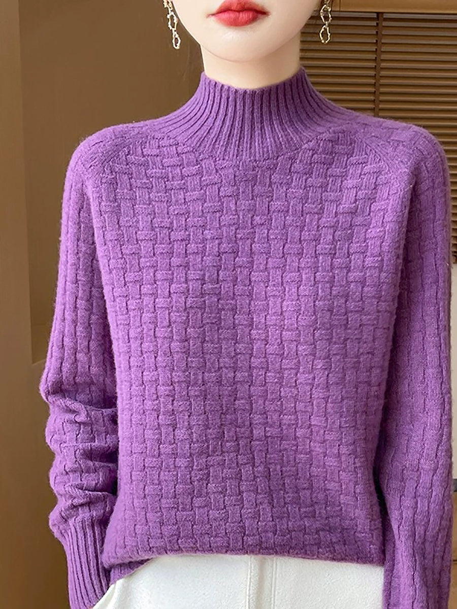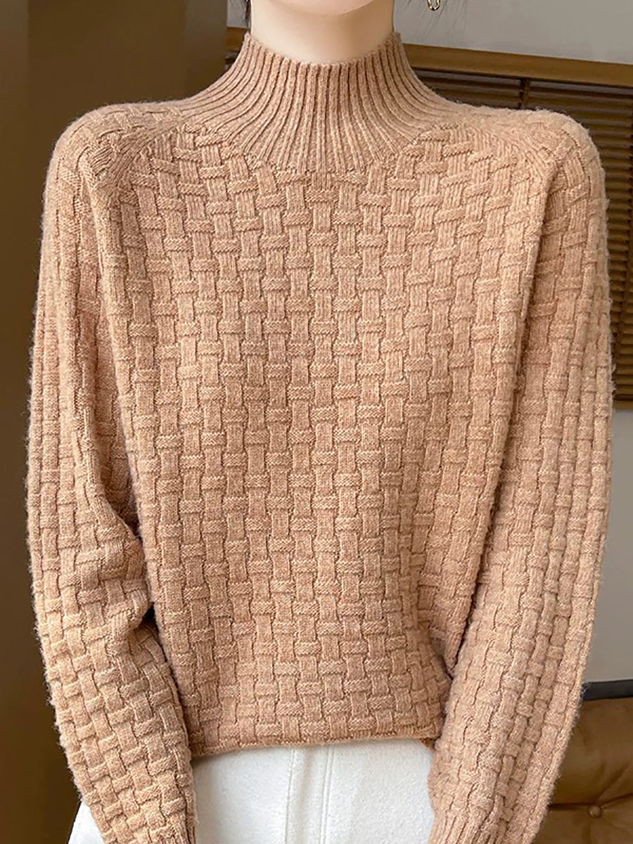 Women Casual Spring Pure Color Half-turtleneck Sweater