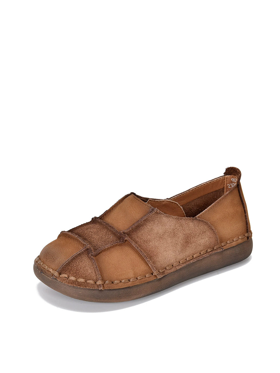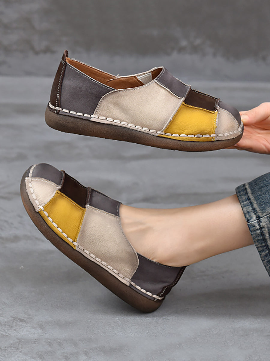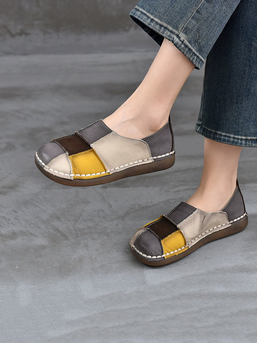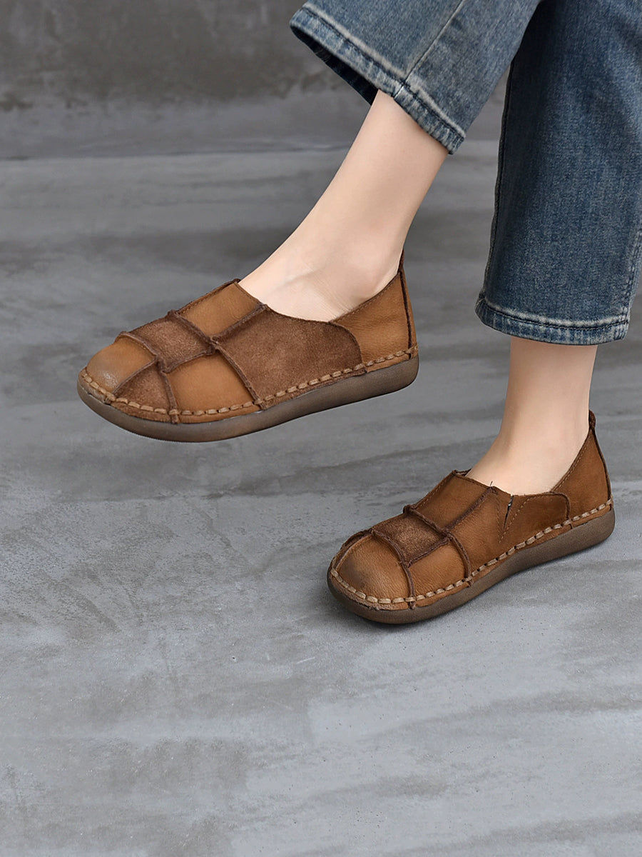 Women Spring Genuine Leather Spliced Flat Shoes
