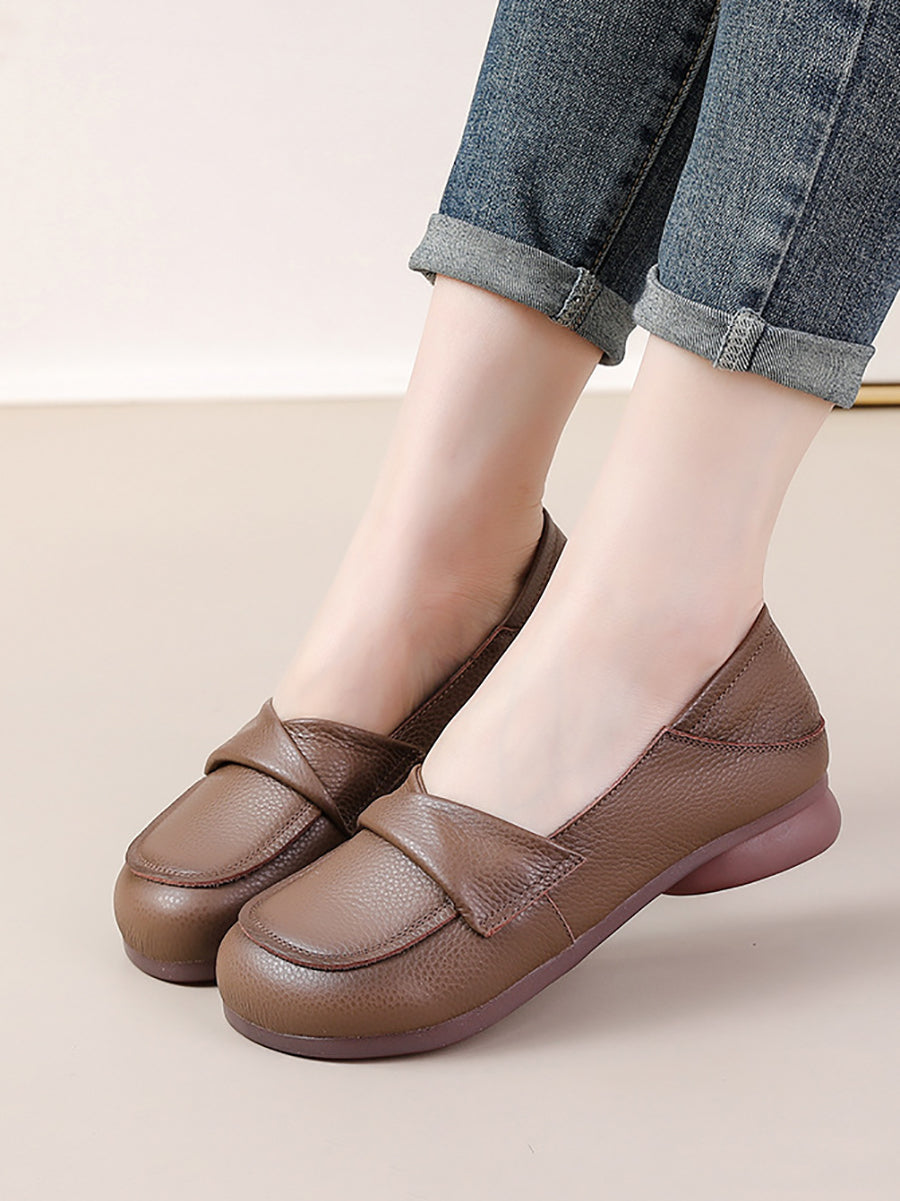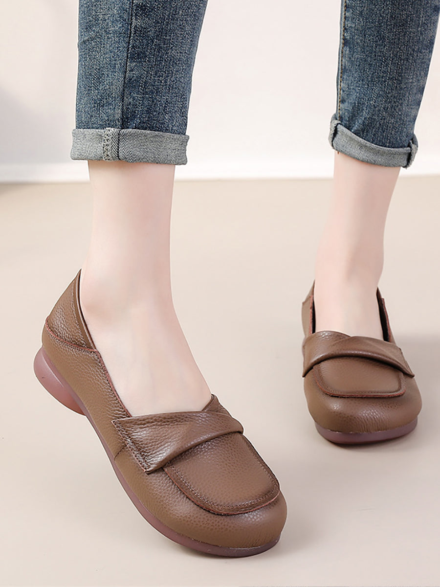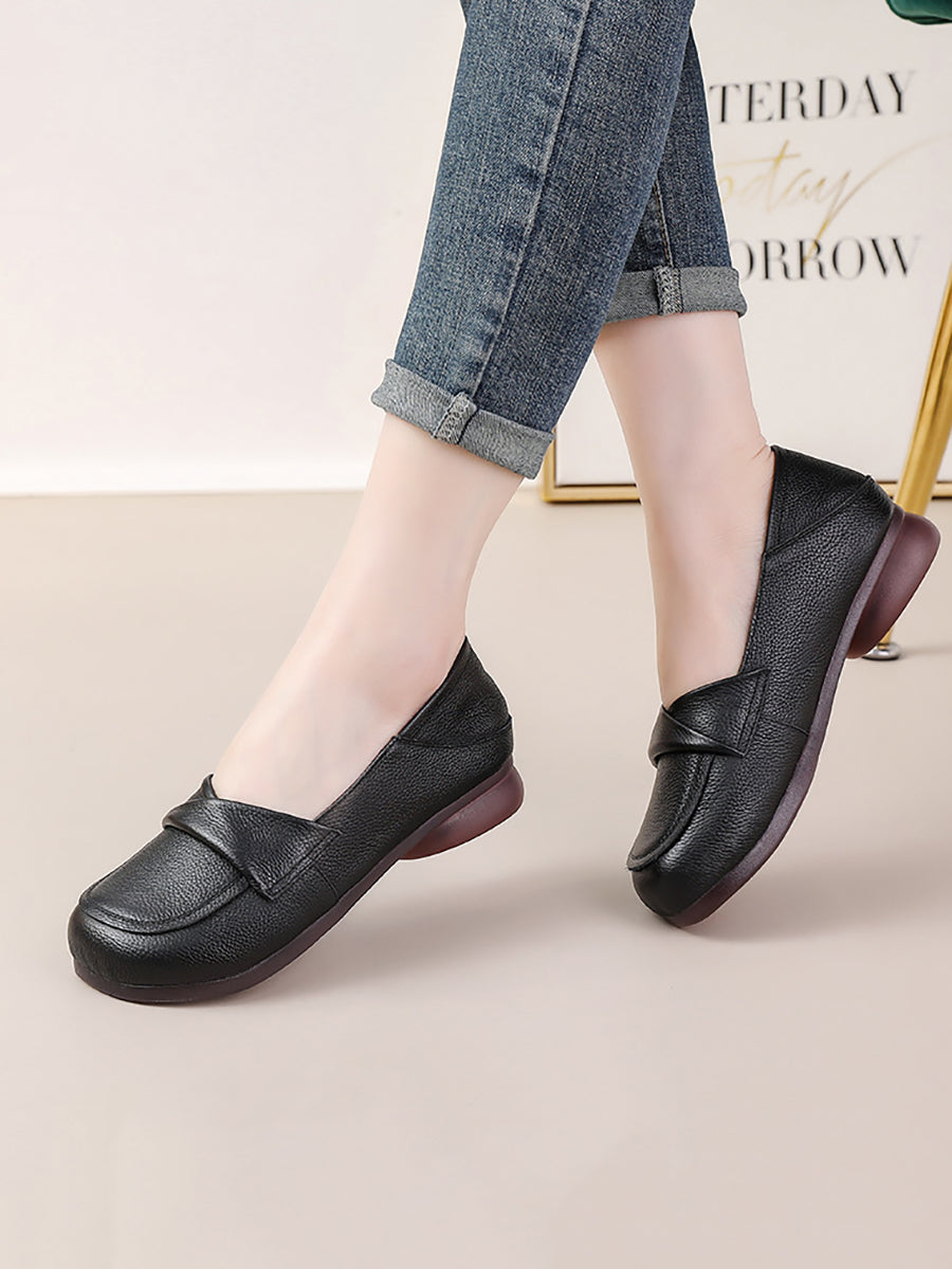 Women Spring Genuine Leather Spliced Low Heel Shoes
