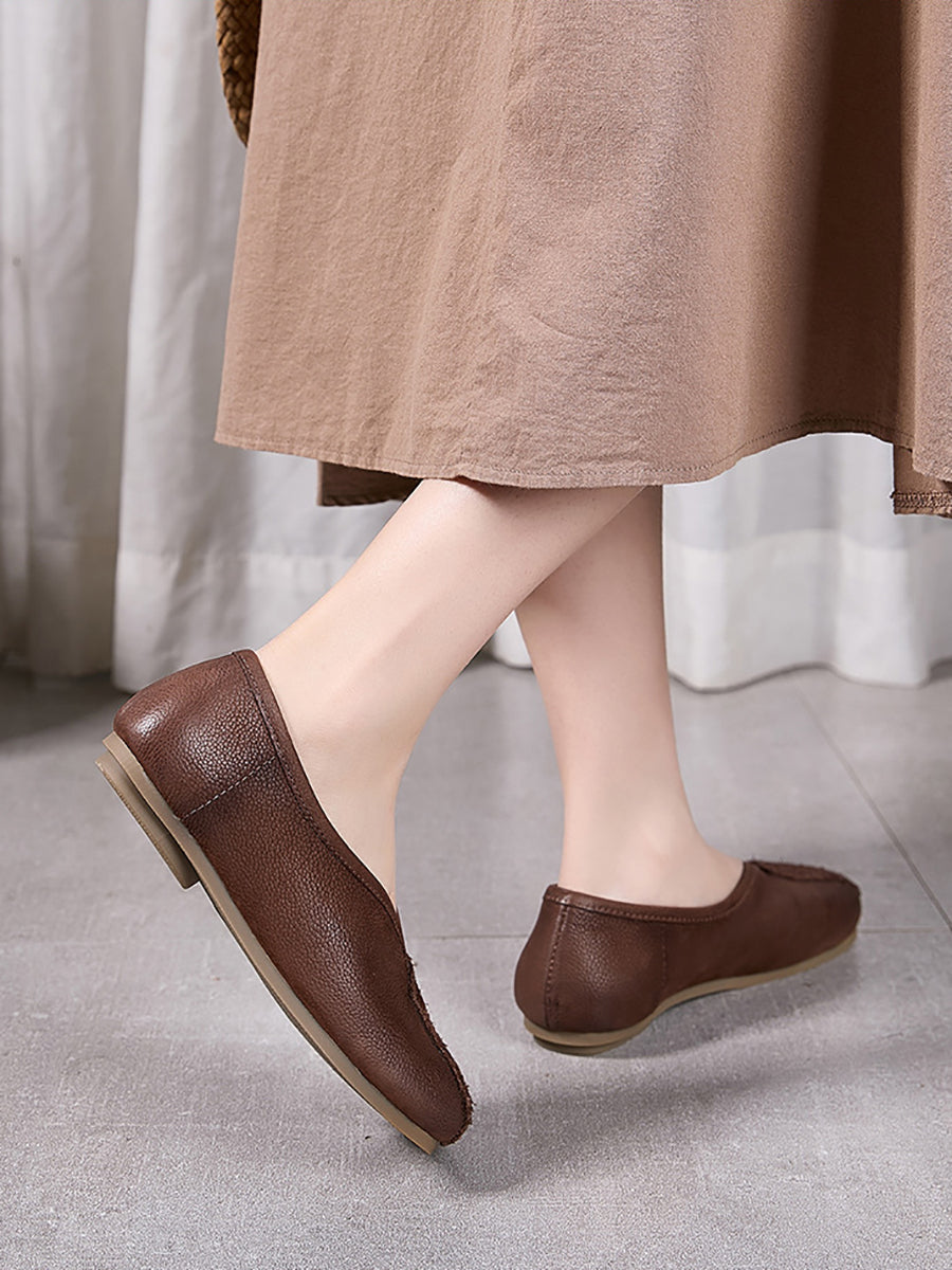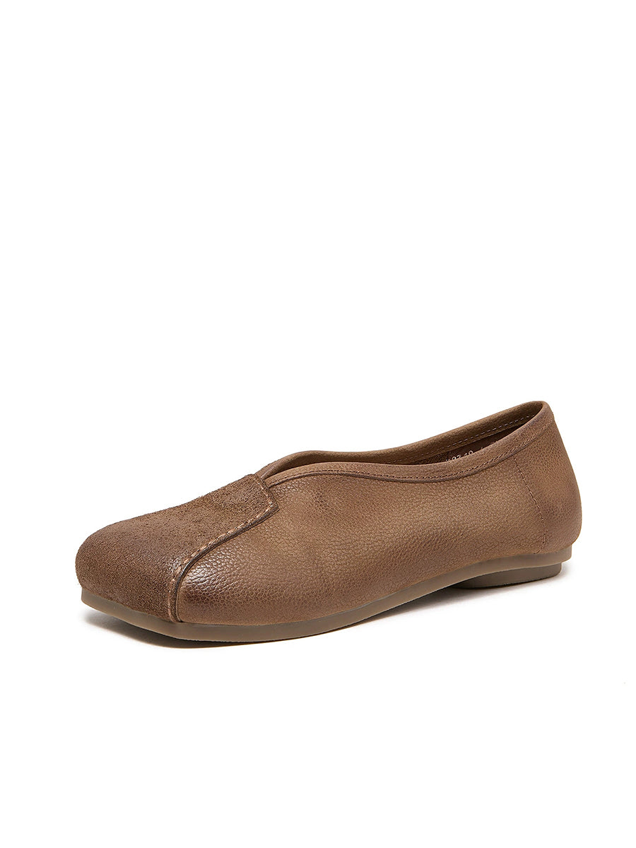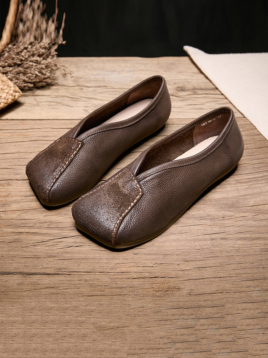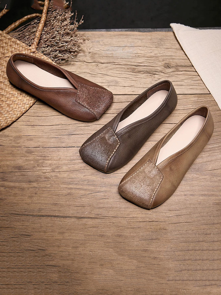 Women Spring Genuine Leather Square Toe Shoes