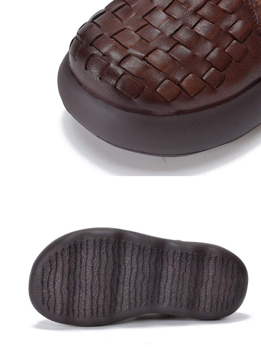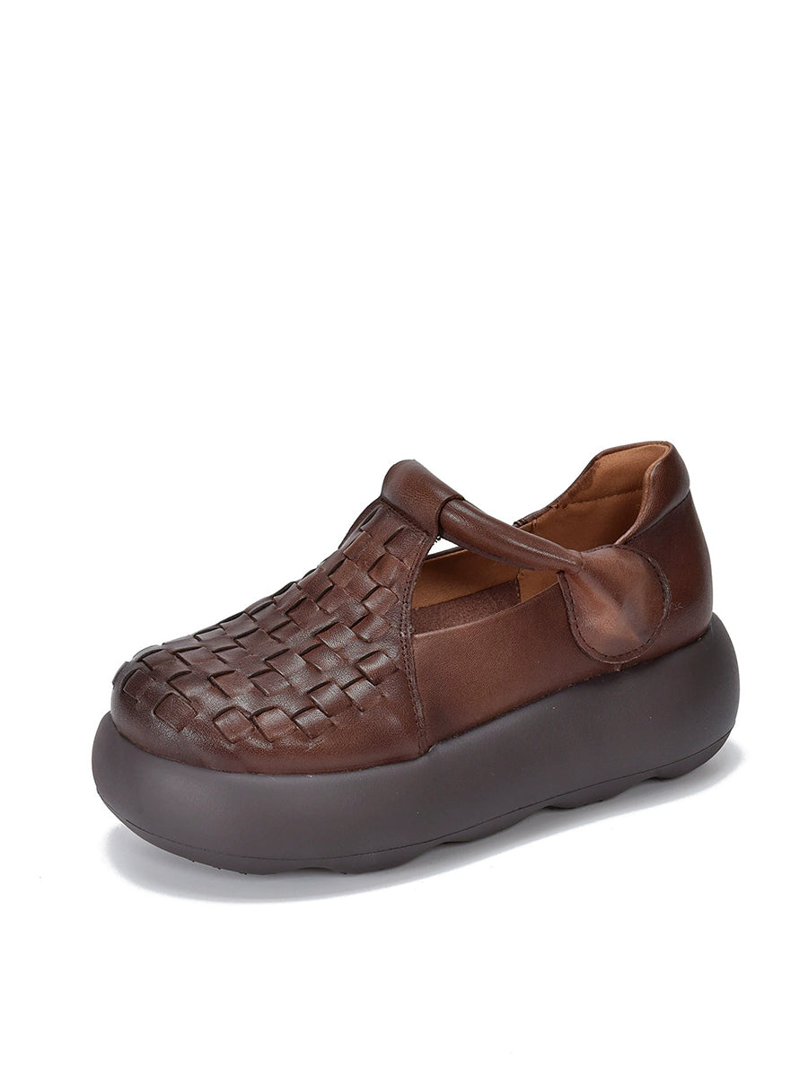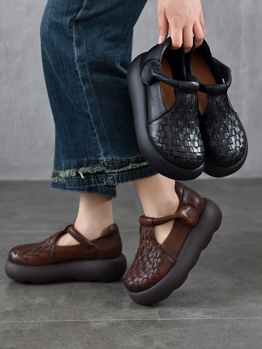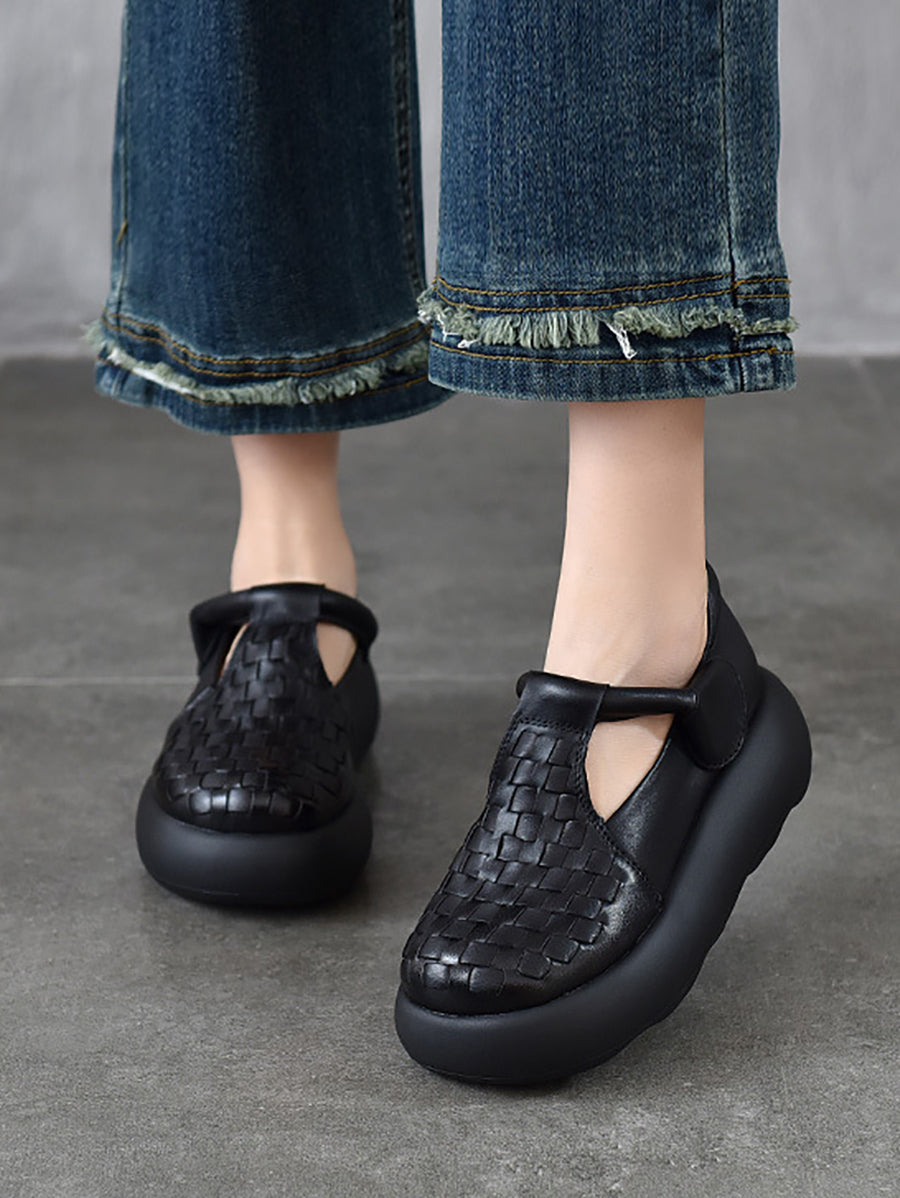 Women Summer Genuine Leather Weave Platform Shoes