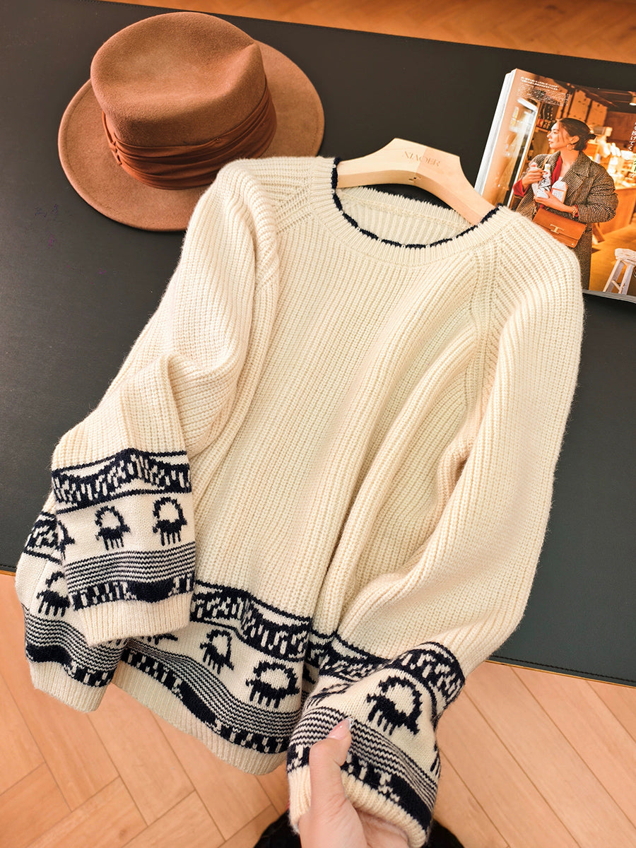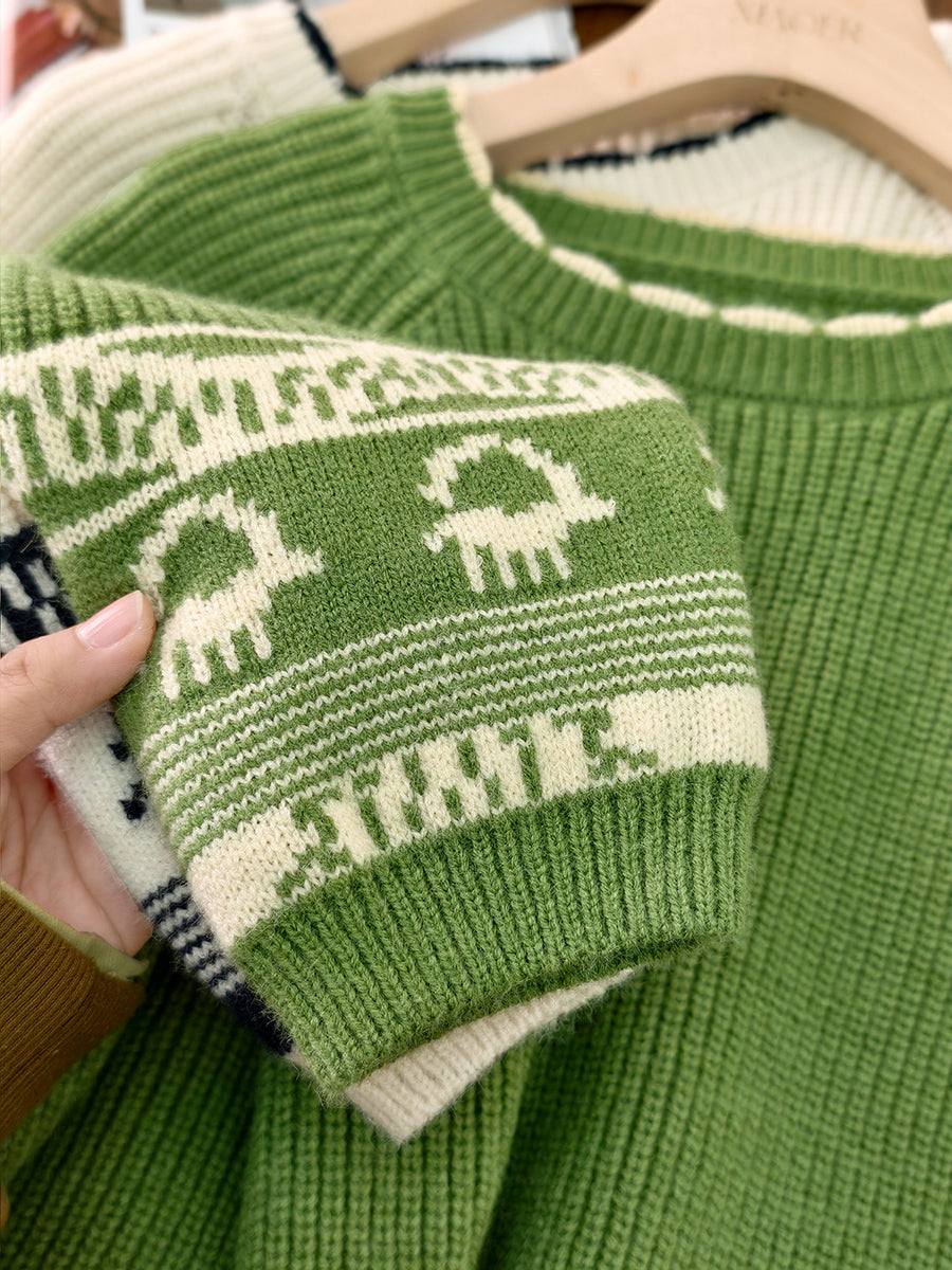 Women Autumn Cartoon Knitted O-Neck Sweater