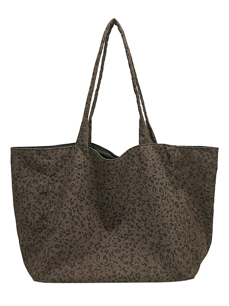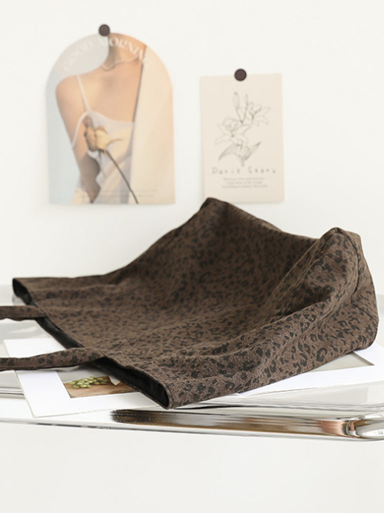 Women Vintage Leopard Print Dual-side Shoulder Bag