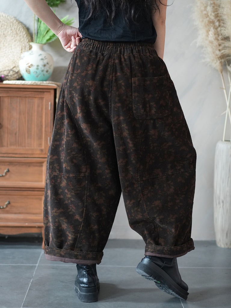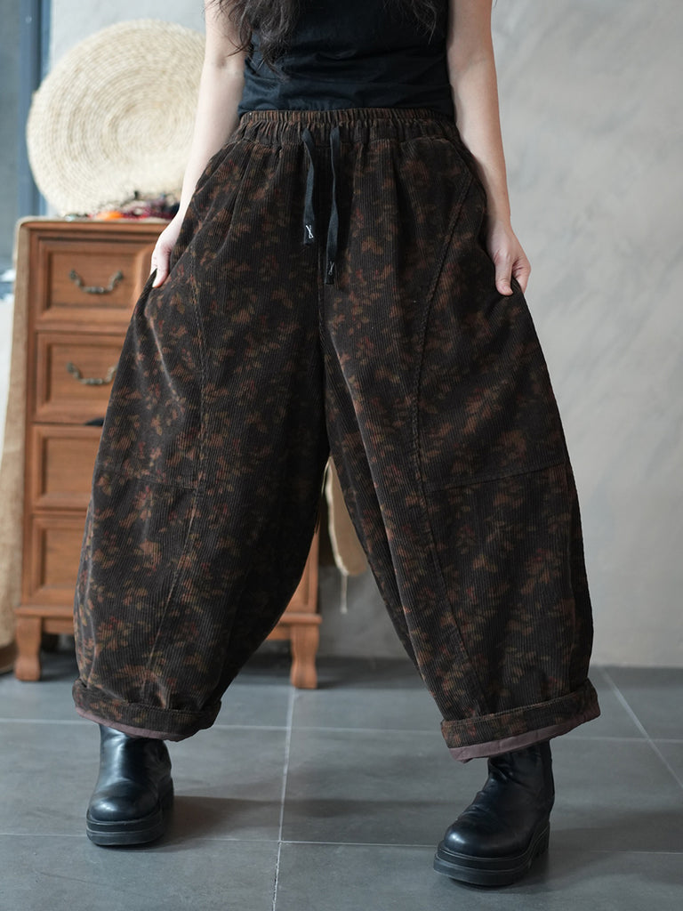 Women Winter Retro Flower Corduroy Harem Pants