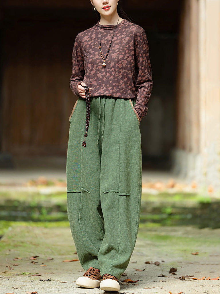 Plus Size Women Winter Retro Solid Spliced Padded Harem Pants