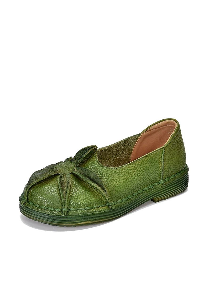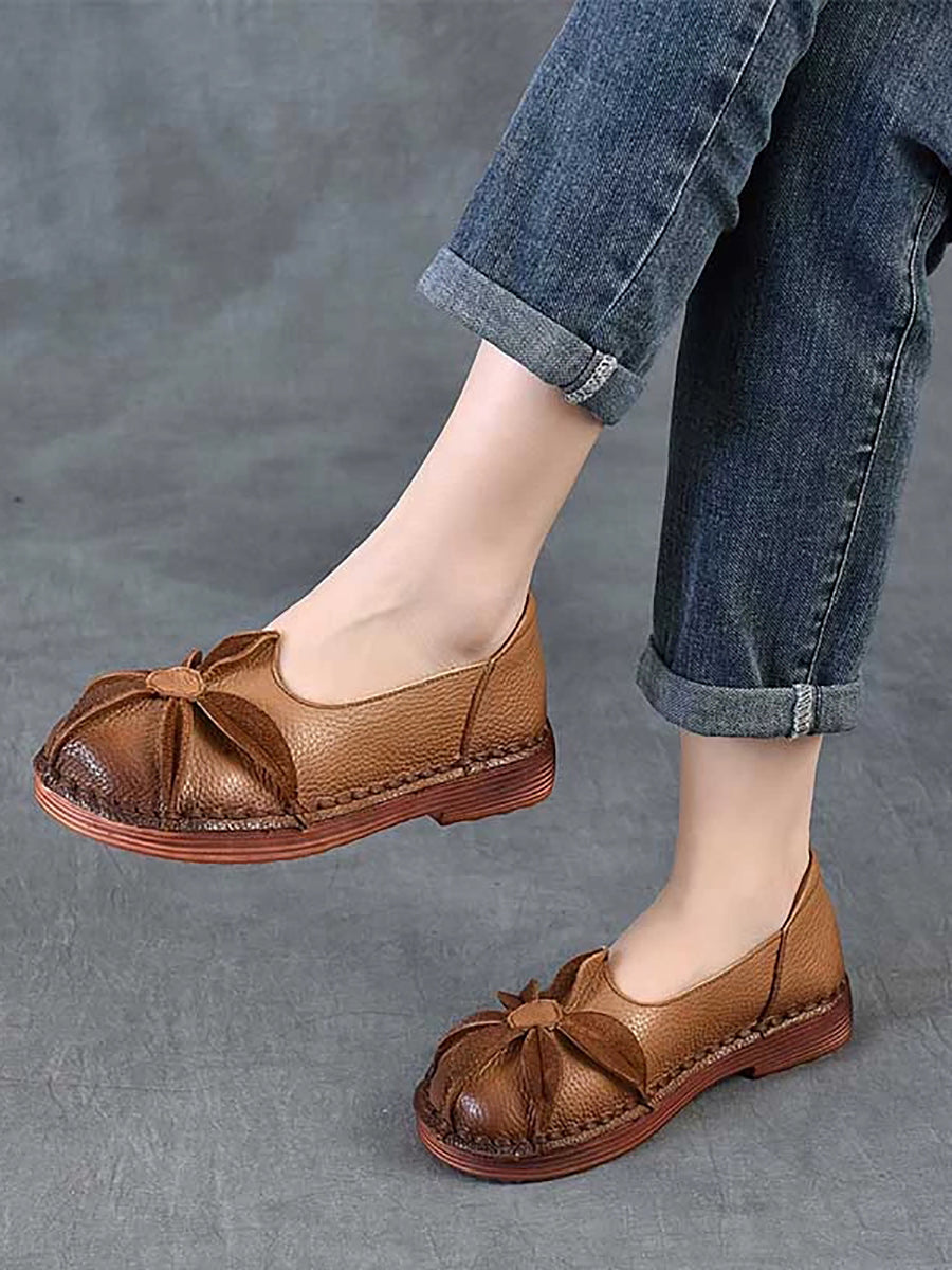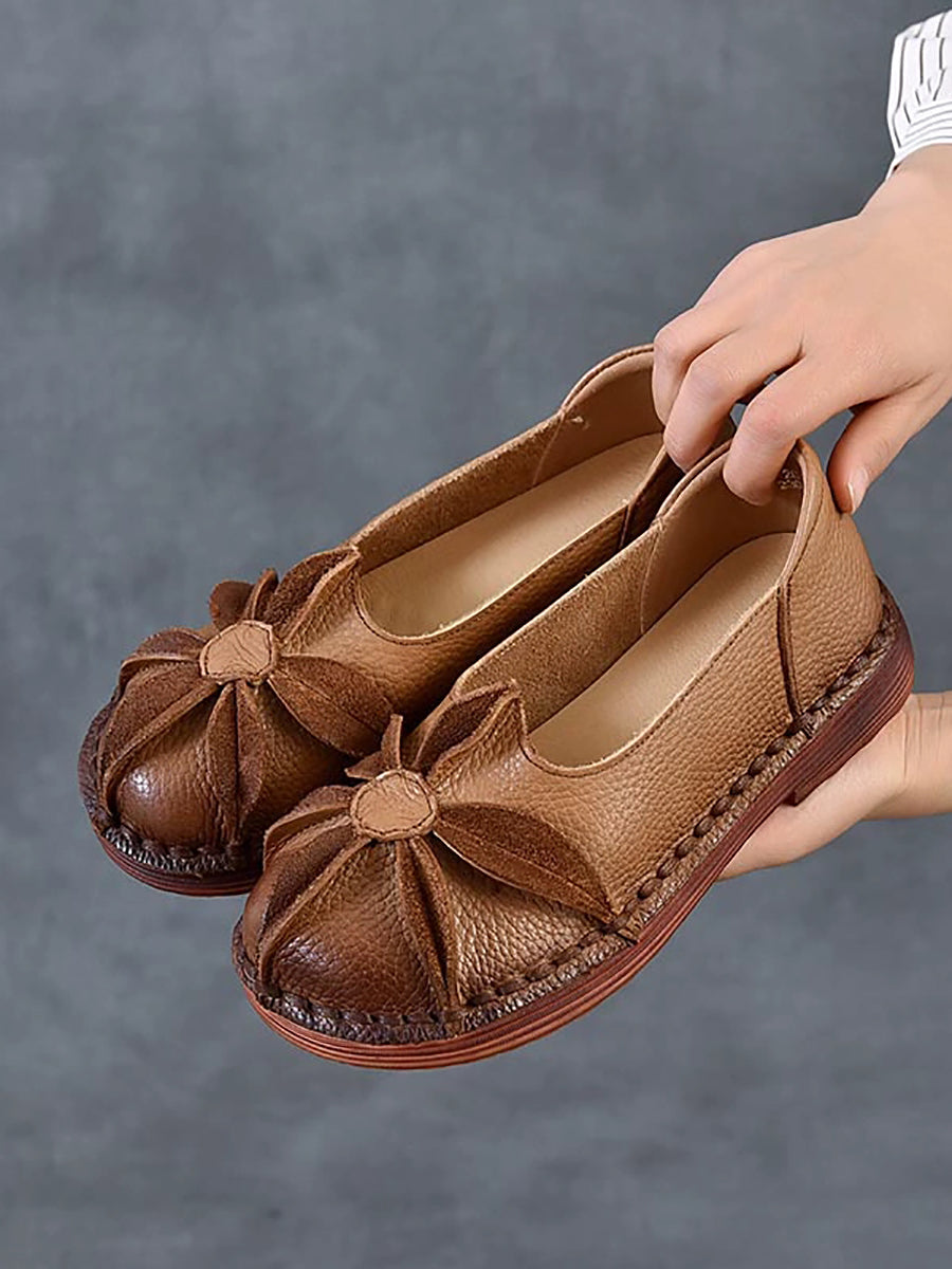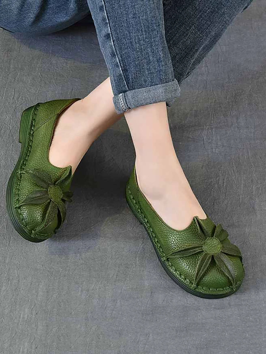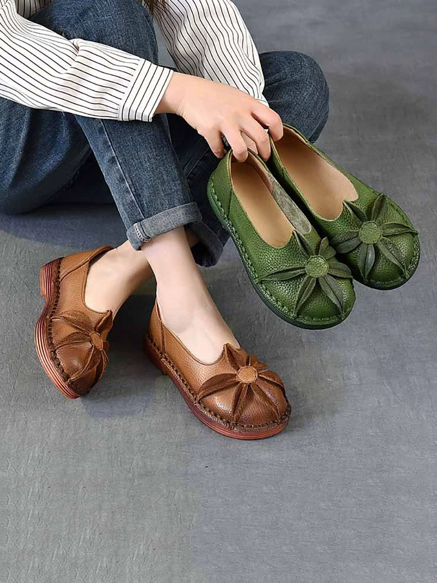 Women Vintage Genuine Leather Flower Low Heel Shoes
