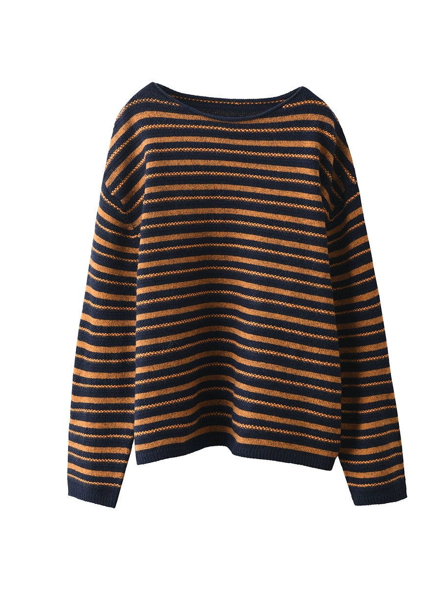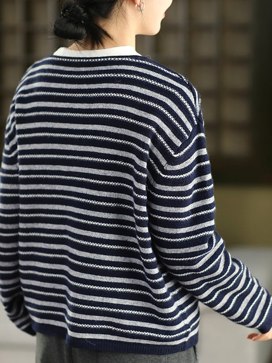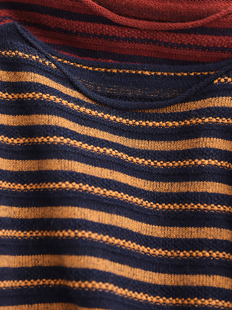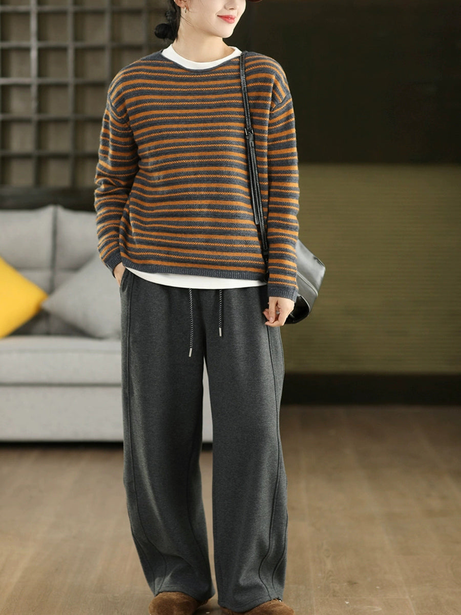 Women Autumn Vintage Stripe Knitted O-Neck Sweater
