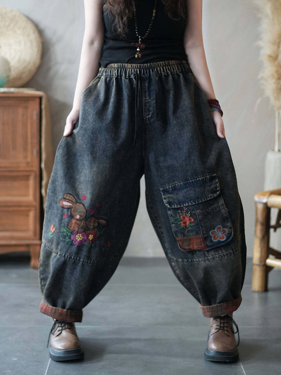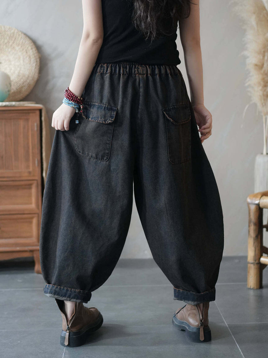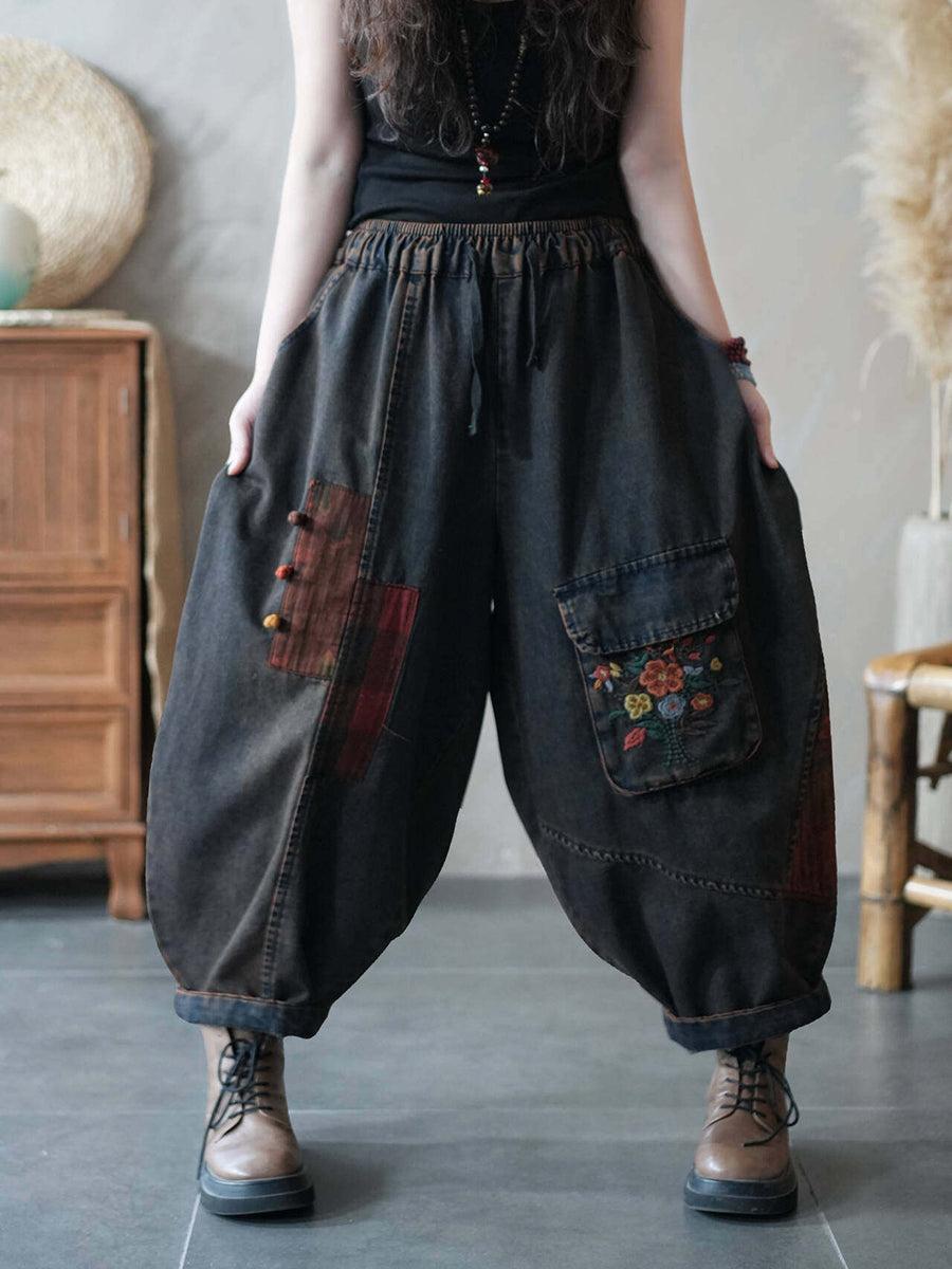 Women Summer Patchwock Denim Harem Pants