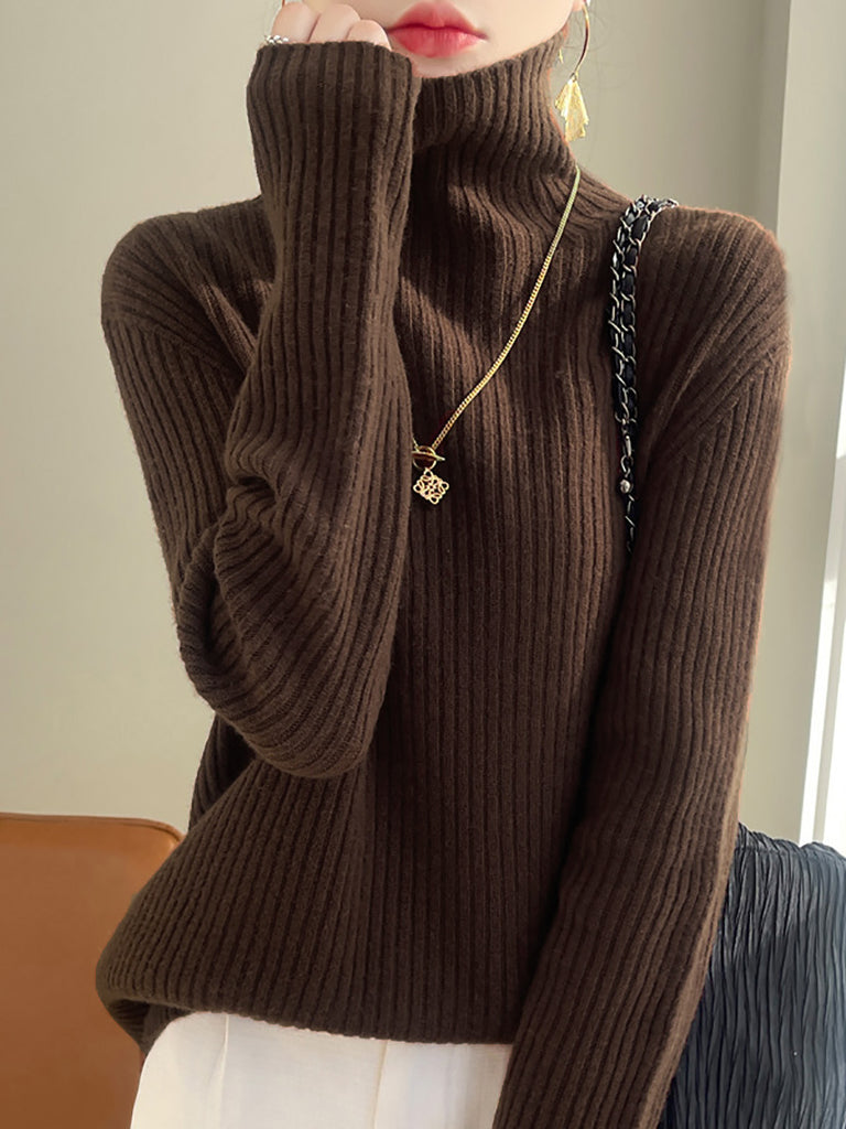Women Autumn Casual Solid Turtleneck Wool Knit Sweater
