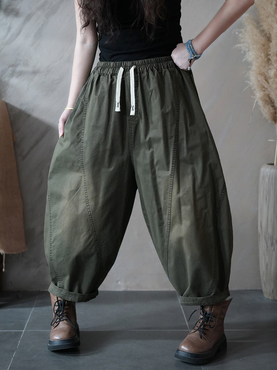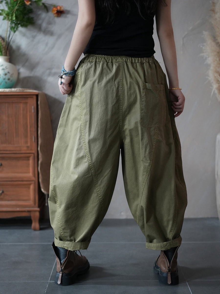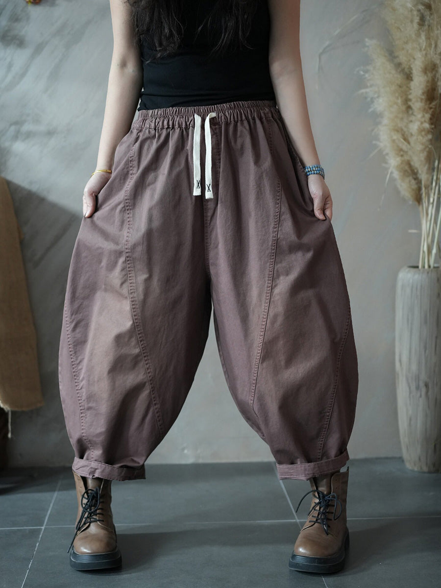 Women Spring Retro Pure Color Harem Pants