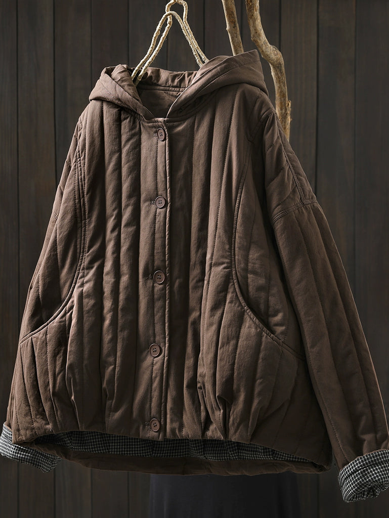 Women Winter Casual Pure Color Padded Hooded Coat