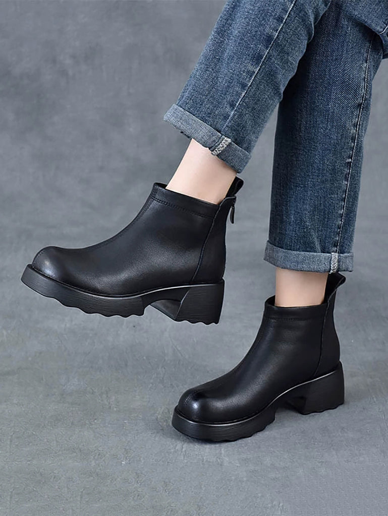 Women Winter Genuine Leather Mid-Heel Ankle Boots
