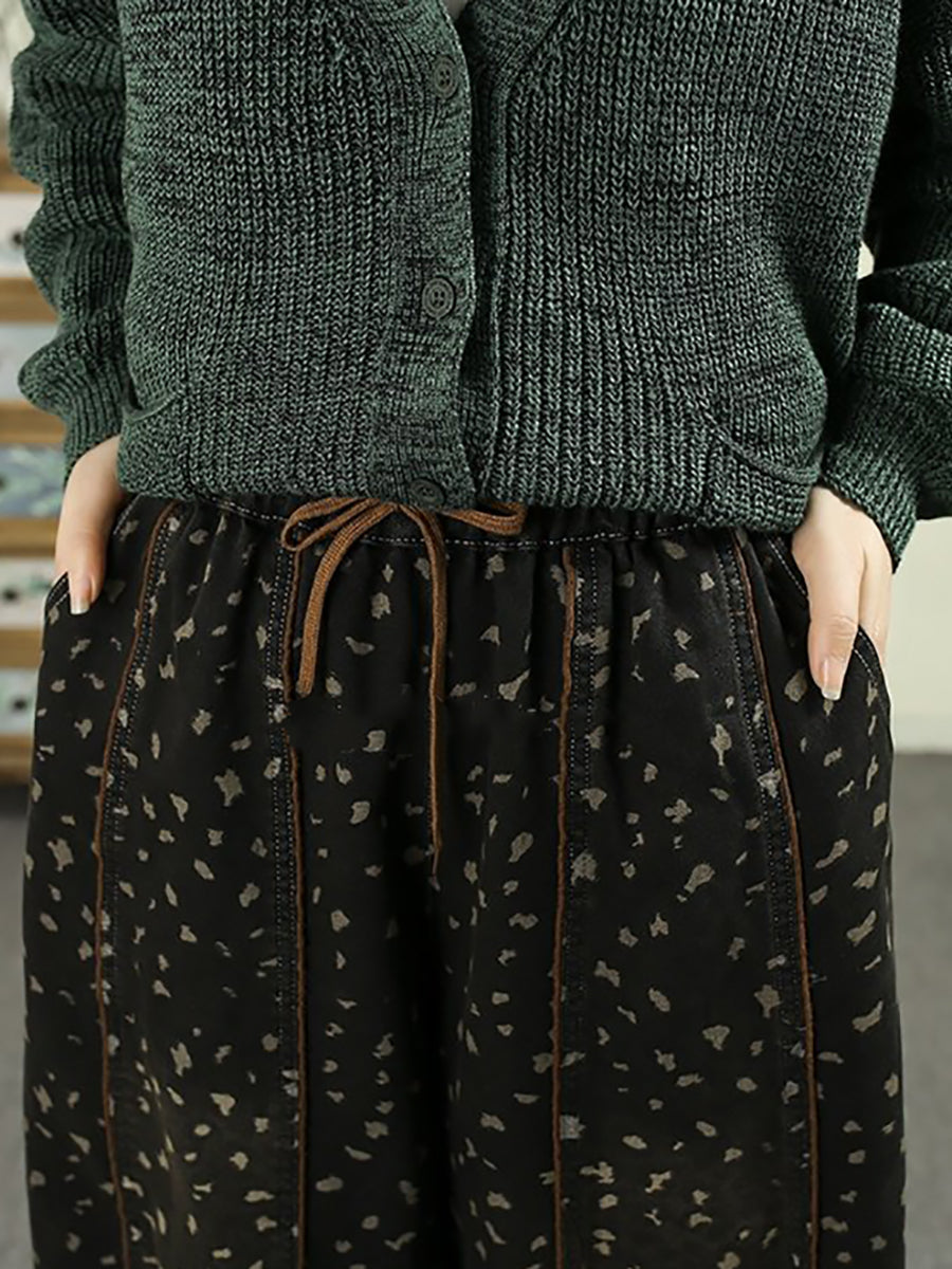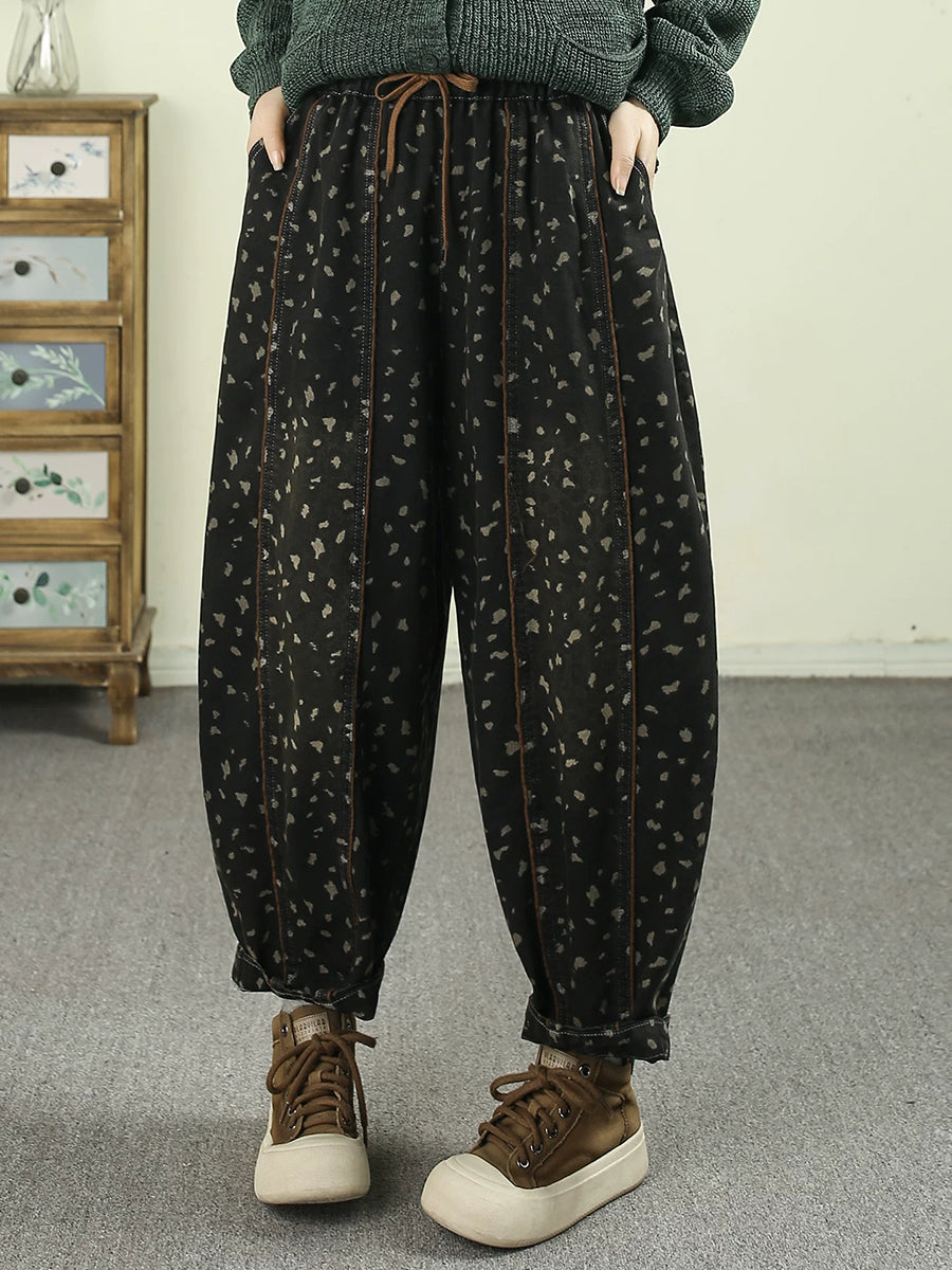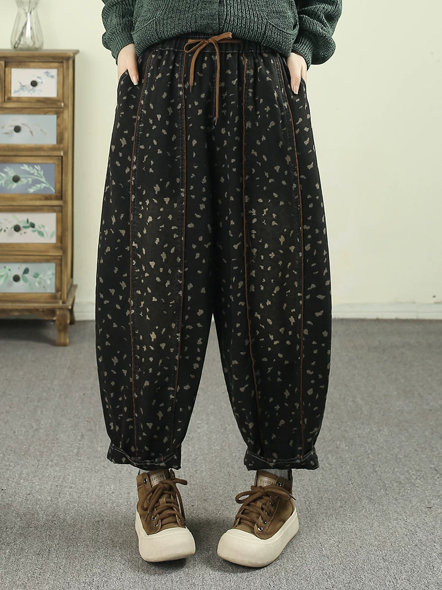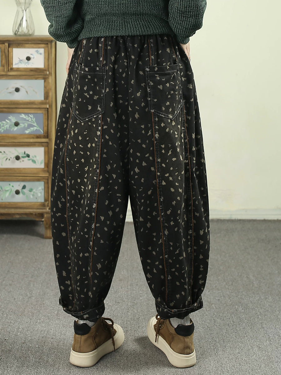 Women Spring Vintage Denim Leopard Harem Pants