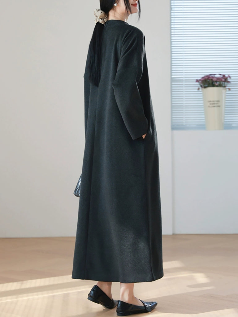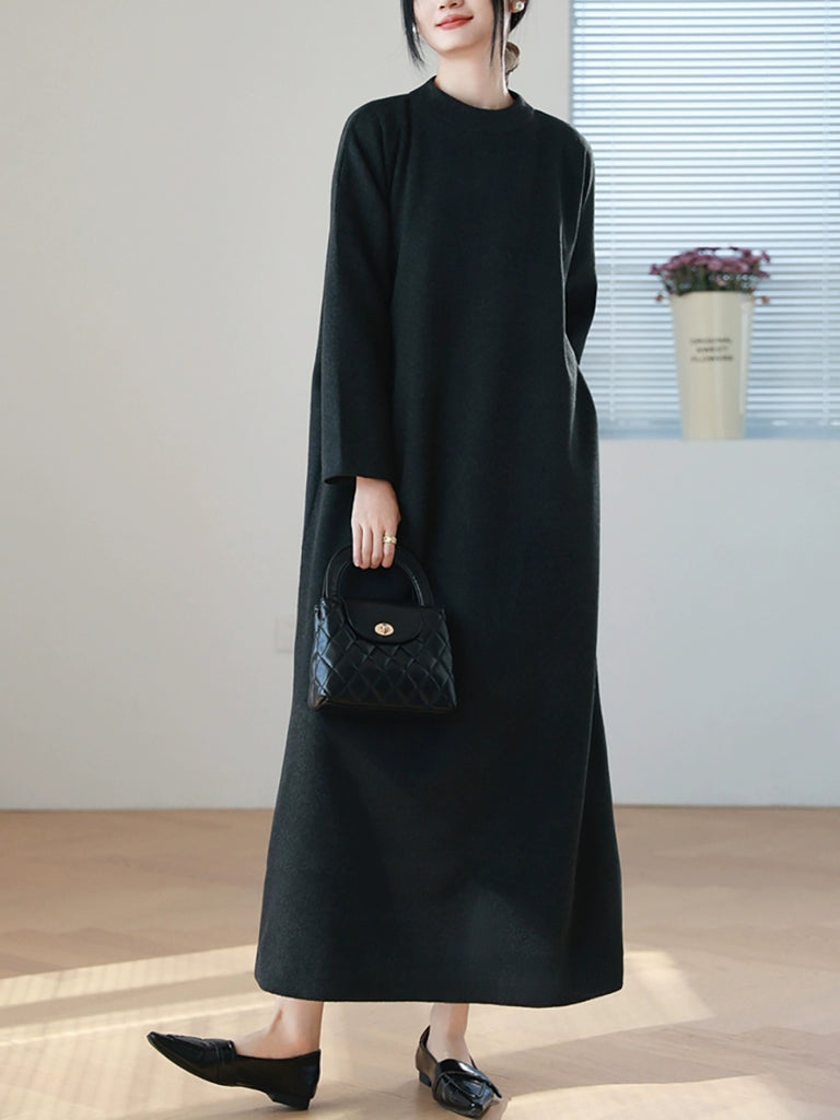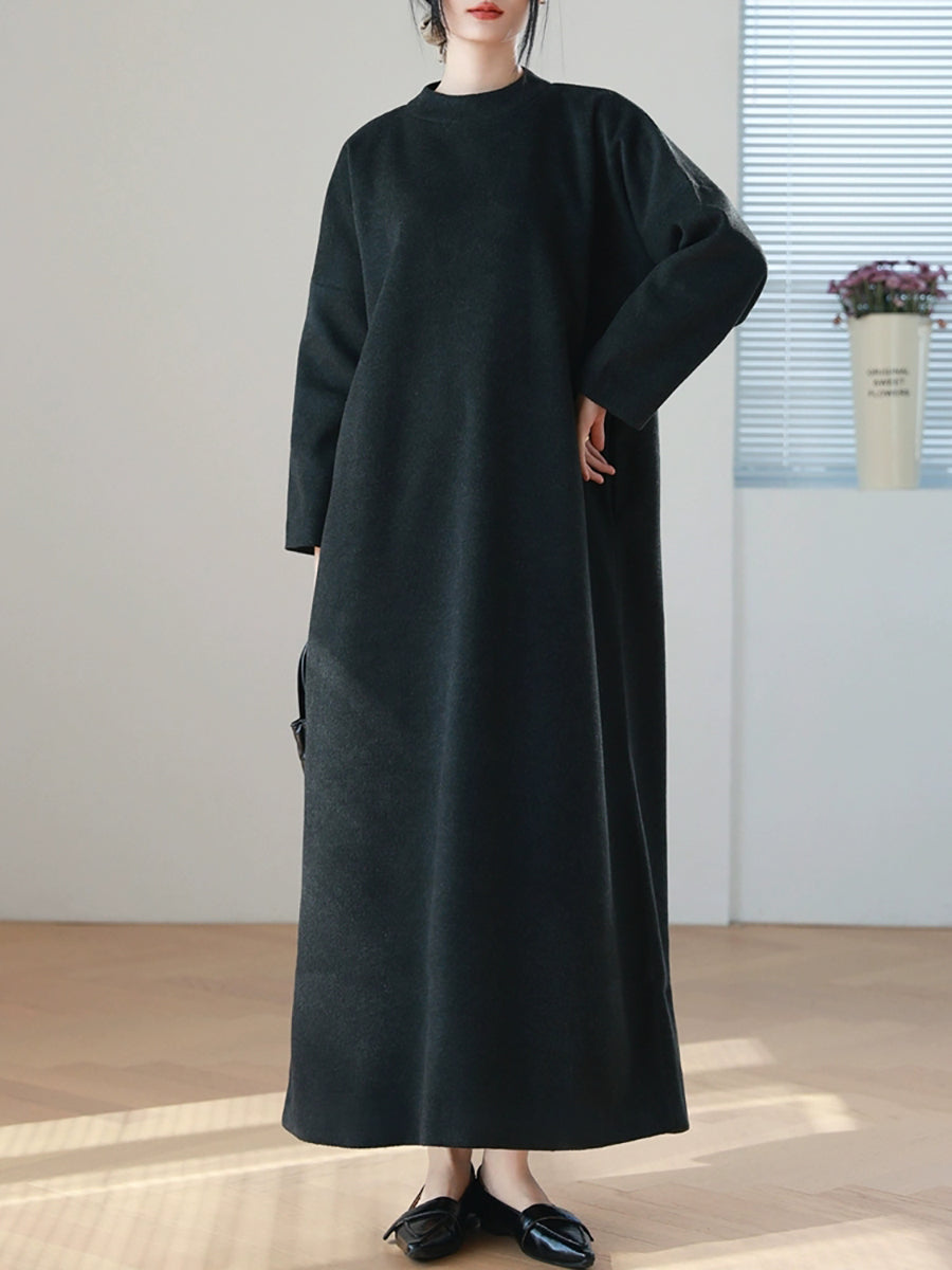 Women Autumn Pure Color O-Neck Long Dress