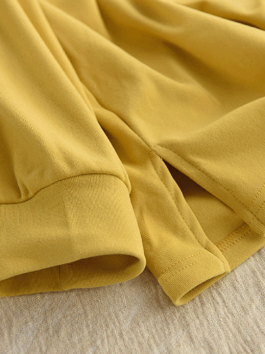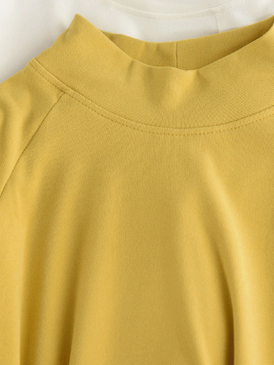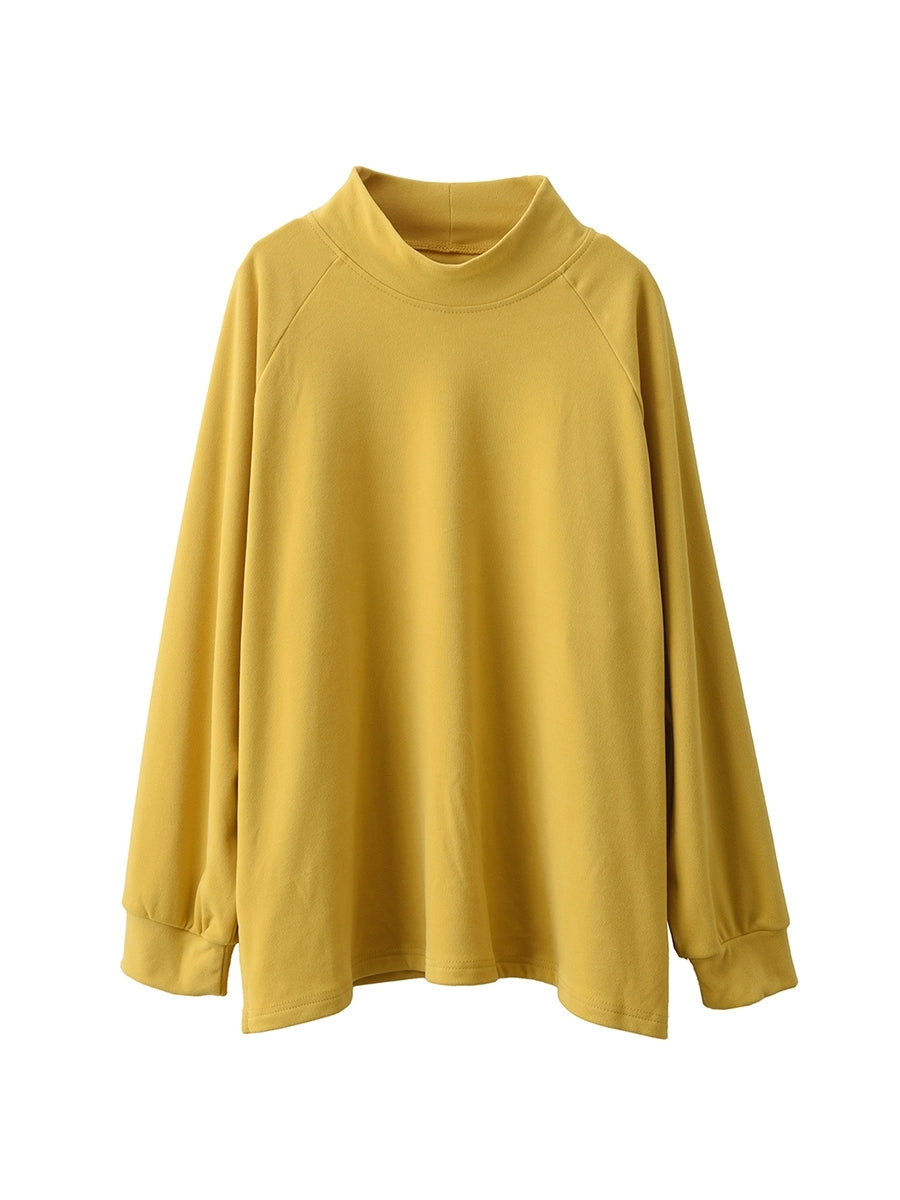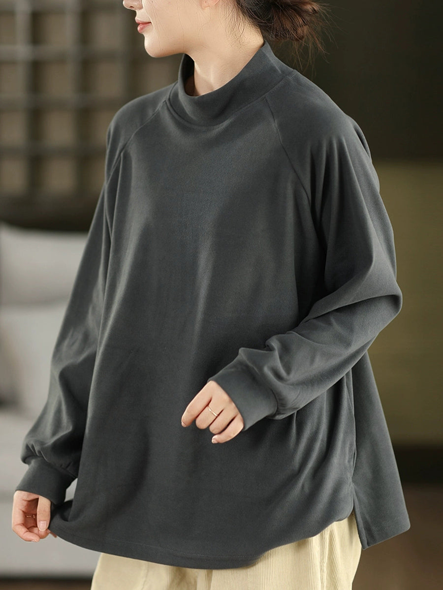 Women Winter Artsy Pure Color Half-Turtleneck 100%Cotton Blouse